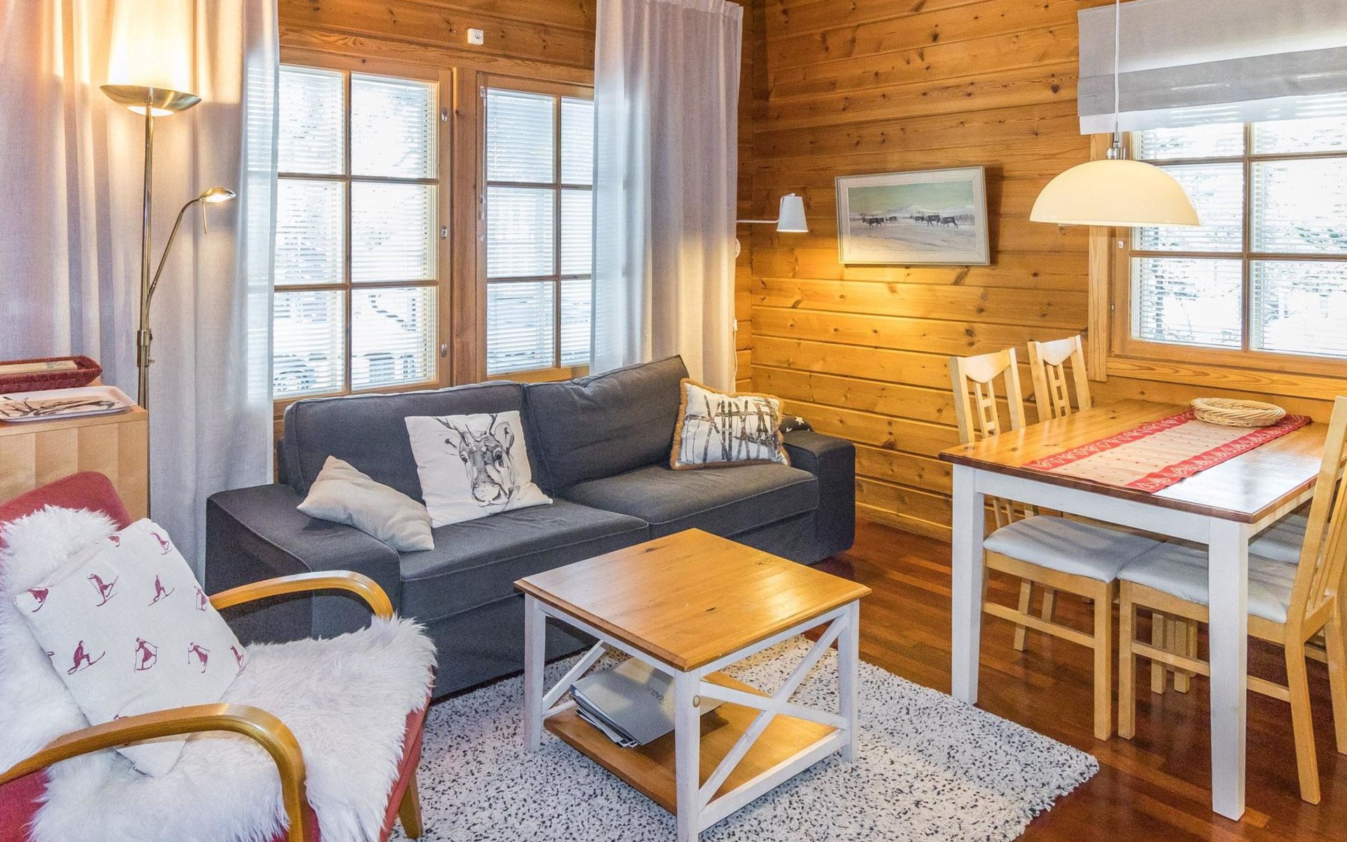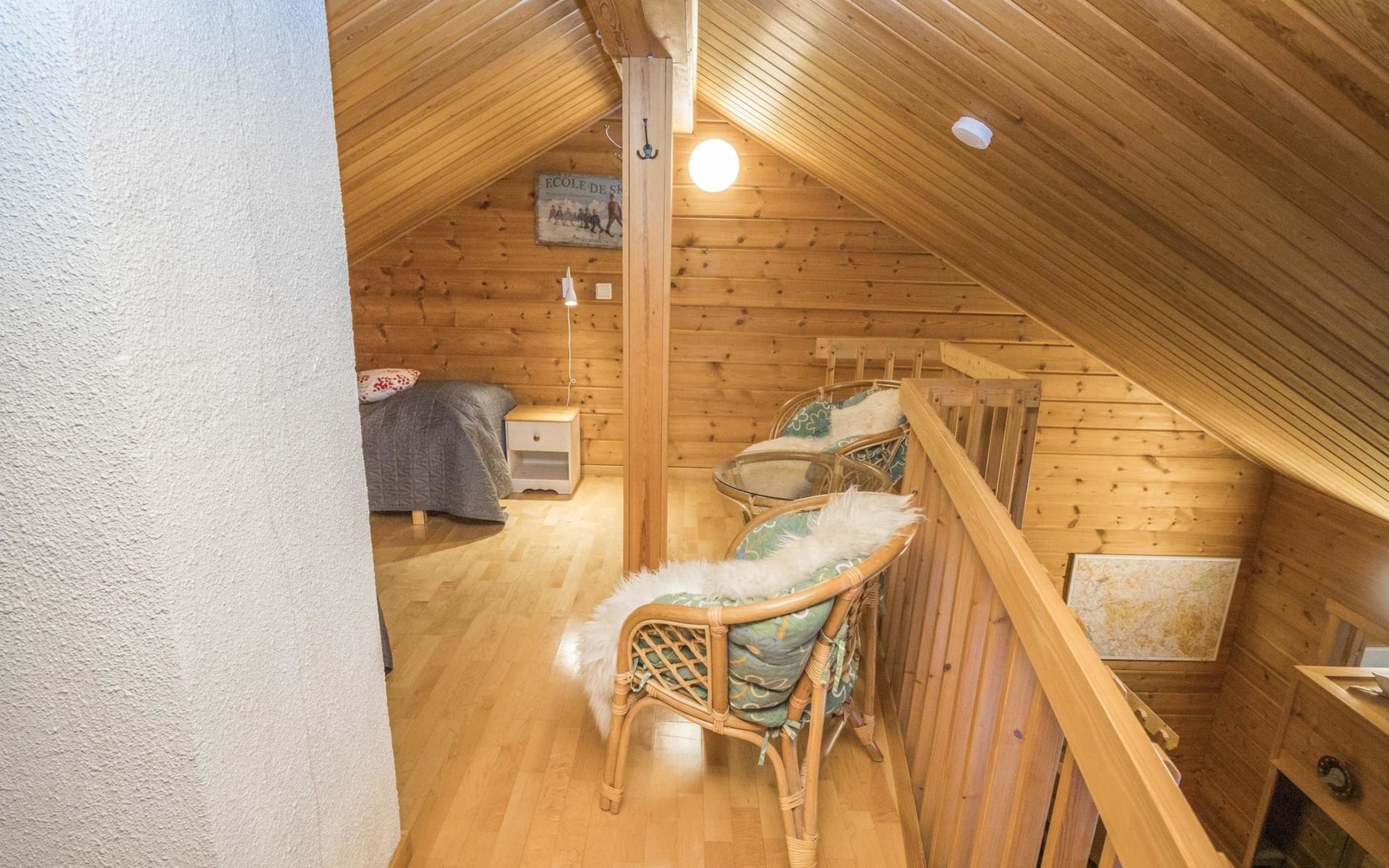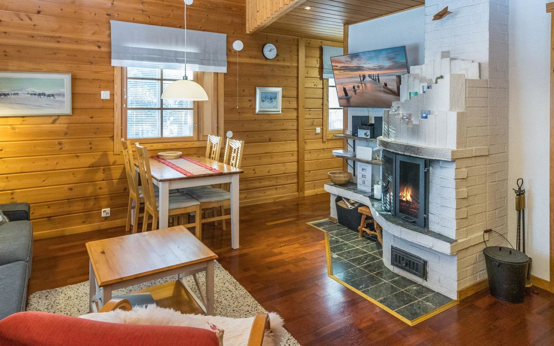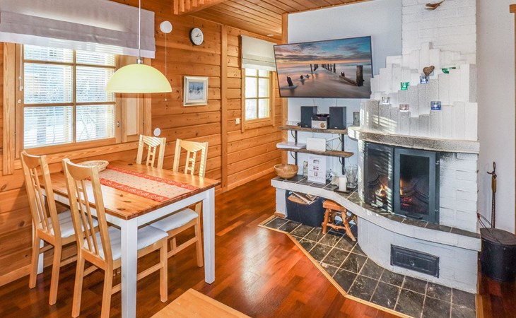The 42-square-meter apartment has a kitchen/living room, a bedroom, a loft, a bathroom, a sauna, a toilet and a terrace. There is a ski storage room with a lubrication table in the storage.