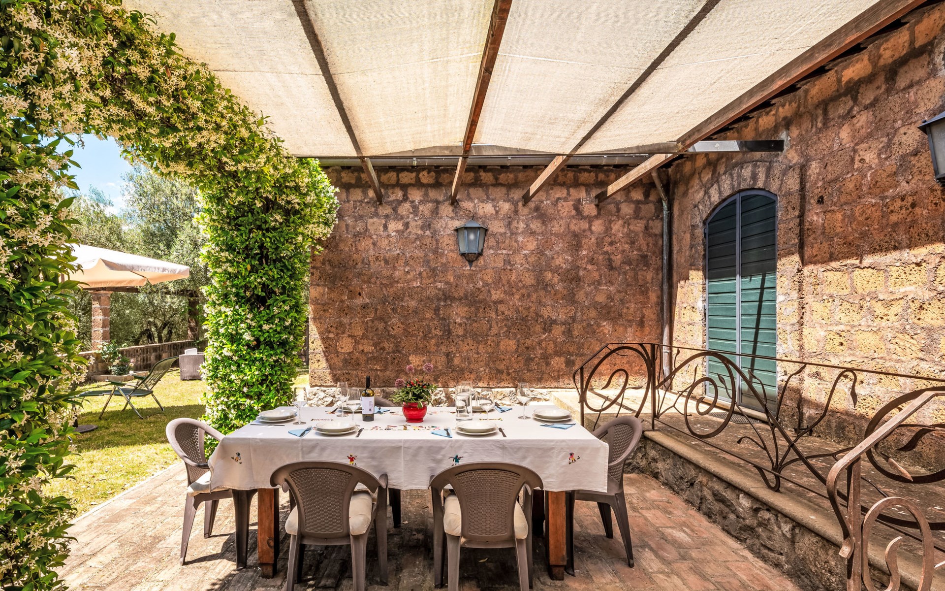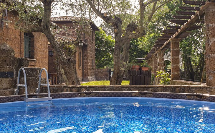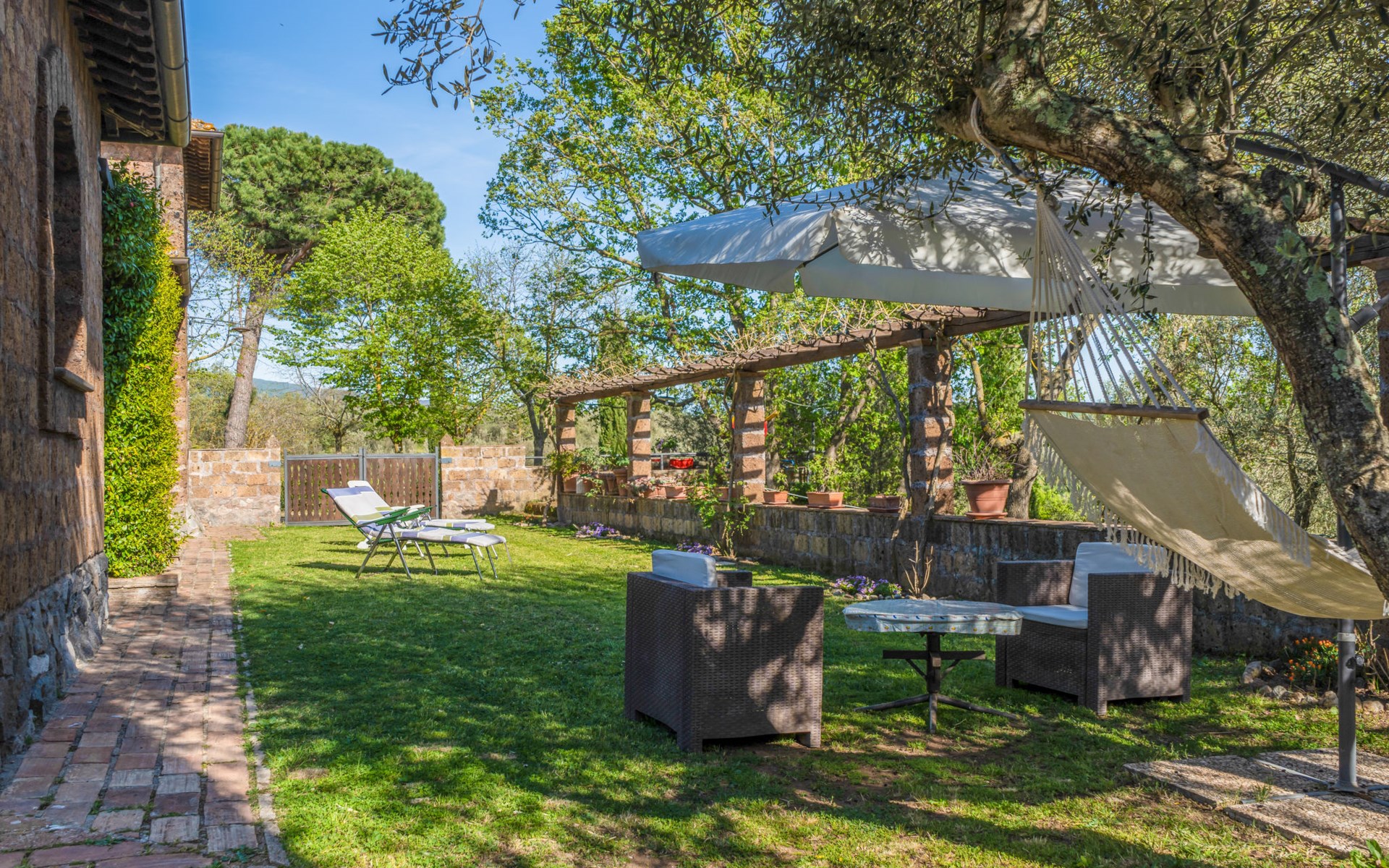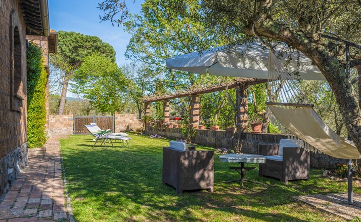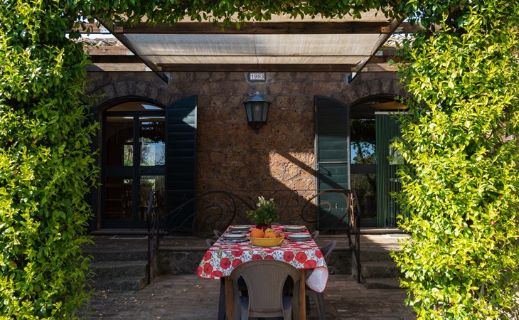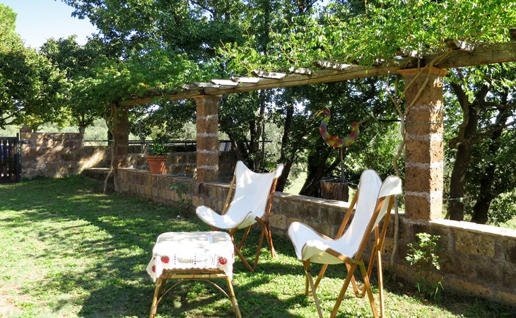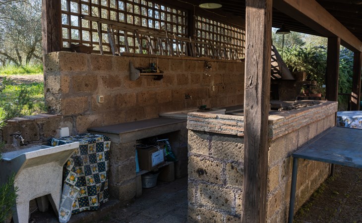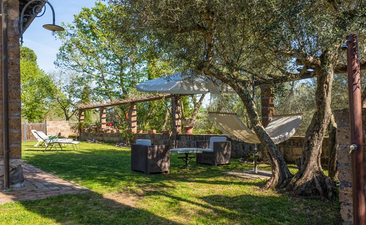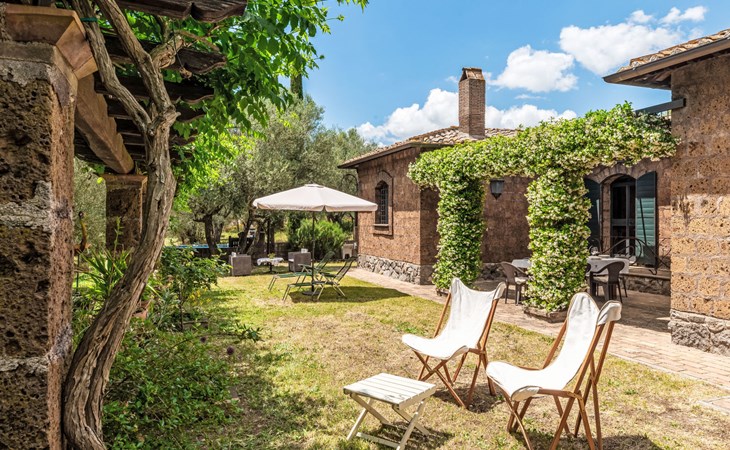 Gemütlicher, freistehender, komfortabler Landsitz "Casale Di Befania", umgeben von Bäumen und Feldern. 5 km vom Zentrum von Vetralla, alleinstehende Lage, 35 km vom Meer, 15 km vom See. Zur Mitbenutzung: Grundstück 3 ha. Zur Alleinbenutzung: Garten 700 m2 (eingezäunt), Aufstellpool rund (3,66 m Durchmesser, 100 - 100 cm tief, saisonale Verfügbarkeit: 01.Jun. - 01.Okt.). Aussendusche, Gartenmöbel, Grillhaus. Im Hause: Massage (extra). Zufahrt (100 m Naturweg). Parkplatz auf dem Grundstück. Lebensmittelgeschäft 5 km, Supermarkt 5 km, Restaurant 5 km, Bushaltestelle 3 km, Thermalbad "Terme dei Papi" 17 km, See Bracciano/Bolsena 35 km. Nahe gelegene Sehenswürdigkeiten: Viterbo 18 km, Sutri 20 km, Tarquinia 28 km. Bitte beachten: Fahrzeug empfohlen. Der Besitzer akzeptiert keine Jugendgruppen. Das Leitungswasser hat keine Trinkwasserqualität.