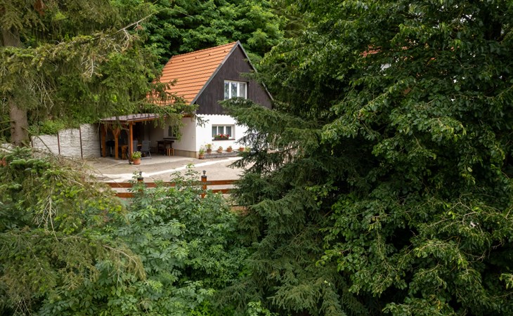 Kleines, freistehendes Haus auf 2 Stockwerken. Ruhige Lage auf einem Hügel. Zur Alleinbenutzung: Naturgarten, Biotop. Pergola, Terrasse, Gartenmöbel, Grill, Parkplatz beim Haus, öffentliche Parkplätze. Einkaufsgeschäft 3 km, Supermarkt 14 km, Restaurant 3 km, Bushaltestelle "Dolní Zimoř" 200 m, Bahnstation "Liběchov" 6 km. Tennis 50 m. Nahe gelegene Sehenswürdigkeiten: Bezděz 30 km, Kokořín 8 km, Želízy 3 km, Vidim 8 km, Tupadly Slavín 6 km, Vrátenská hora 20 km. Bekannte Seen in der Umgebung sind gut erreichbar: Máchovo jezero 30 km, Želízy 3 km, Harasov 7 km. Wandergebiete: Kokořínsko 12 km, Zahrádky 30 km, Mělník 13 km.