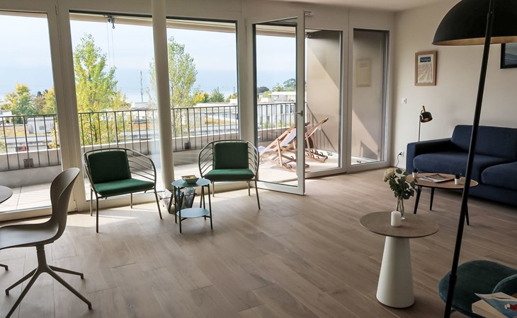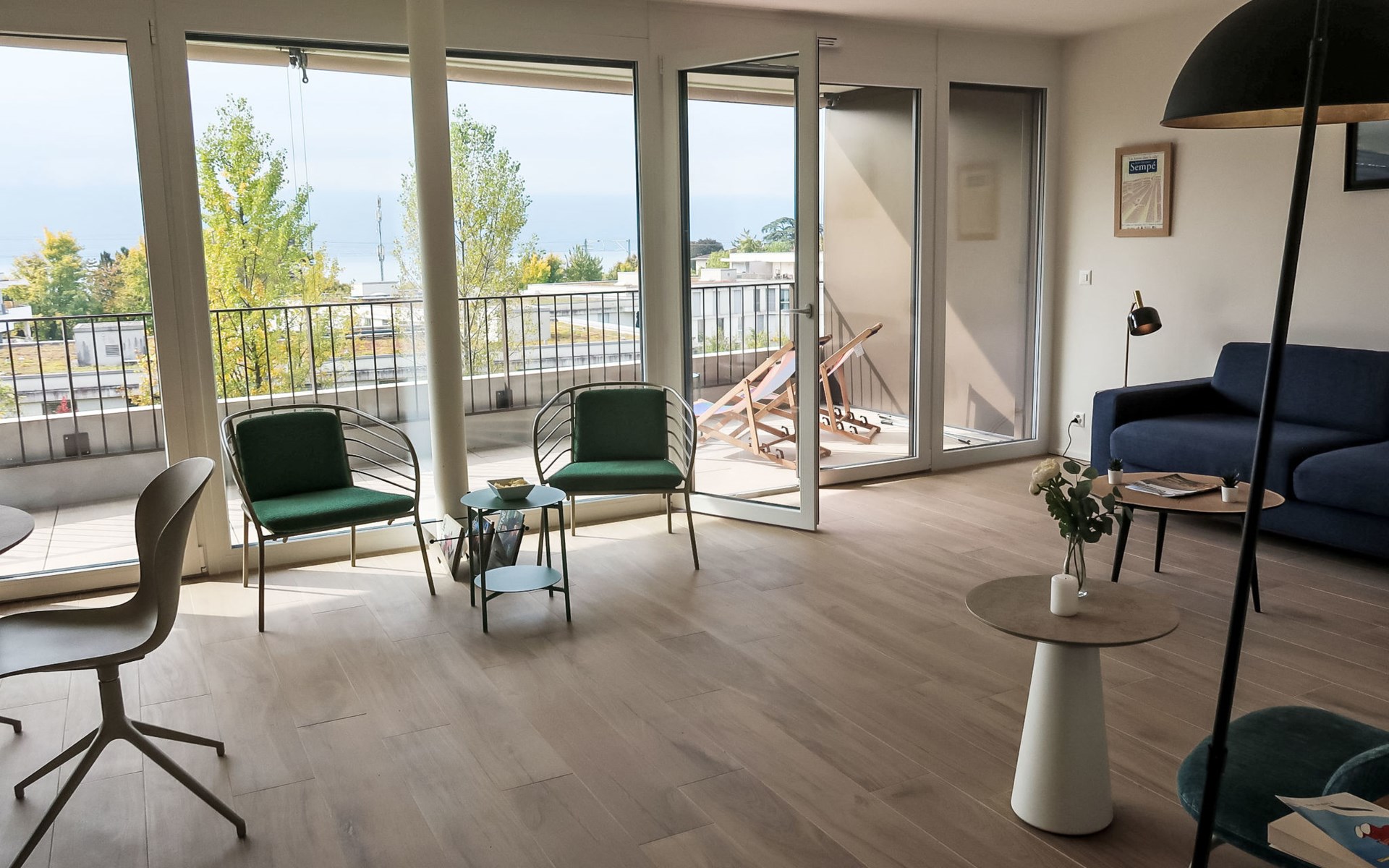 La Tour-de-Peilz 5 km von Montreux: Moderne Residenz "Les Oréades". Exzellente Lage: Absolut zentral und dennoch ruhig. Zur Mitbenutzung: Kinderspielplatz. Im Hause: Fahrstuhl, Einstellraum für Fahrräder, Zentralheizung. Gemeinschaftsgarage. Supermarkt 1.6 km, Einkaufszentrum 3.5 km, Restaurant 2 km, Bushaltestelle "Gregnolet" 230 m, Bahnstation "Burier" 650 m, Hallenbad 1.5 km, Badesee "Plage de Maladaire" 700 m. Golfplatz (18 Loch) 16 km, Tennis 800 m. Nahe gelegene Sehenswürdigkeiten: Montreux 5.5 km, Chaplins World 5.3 km, Musée Olympique, Lausanne 27 km. Bekannte Seen in der Umgebung sind gut erreichbar: Lac Léman.