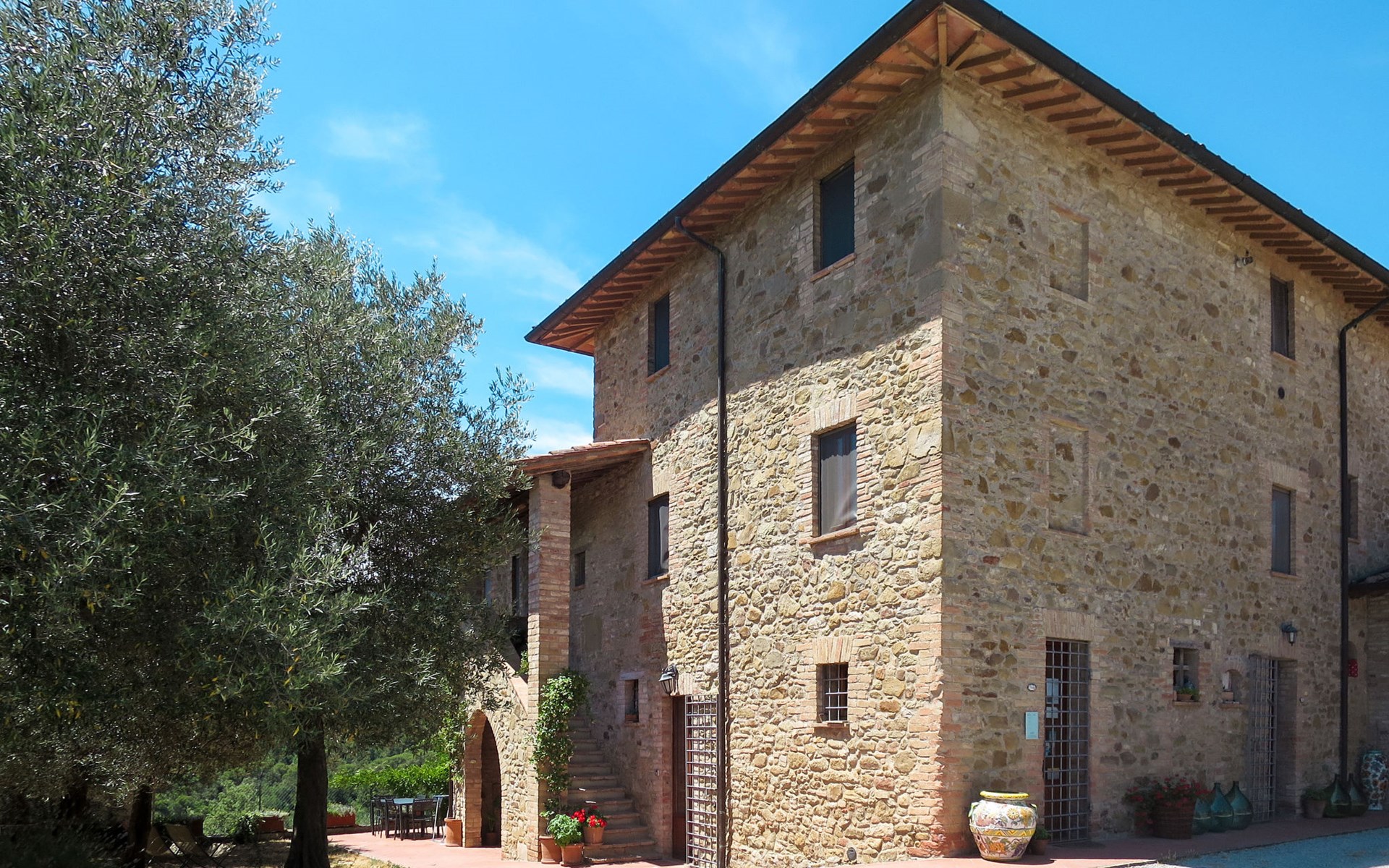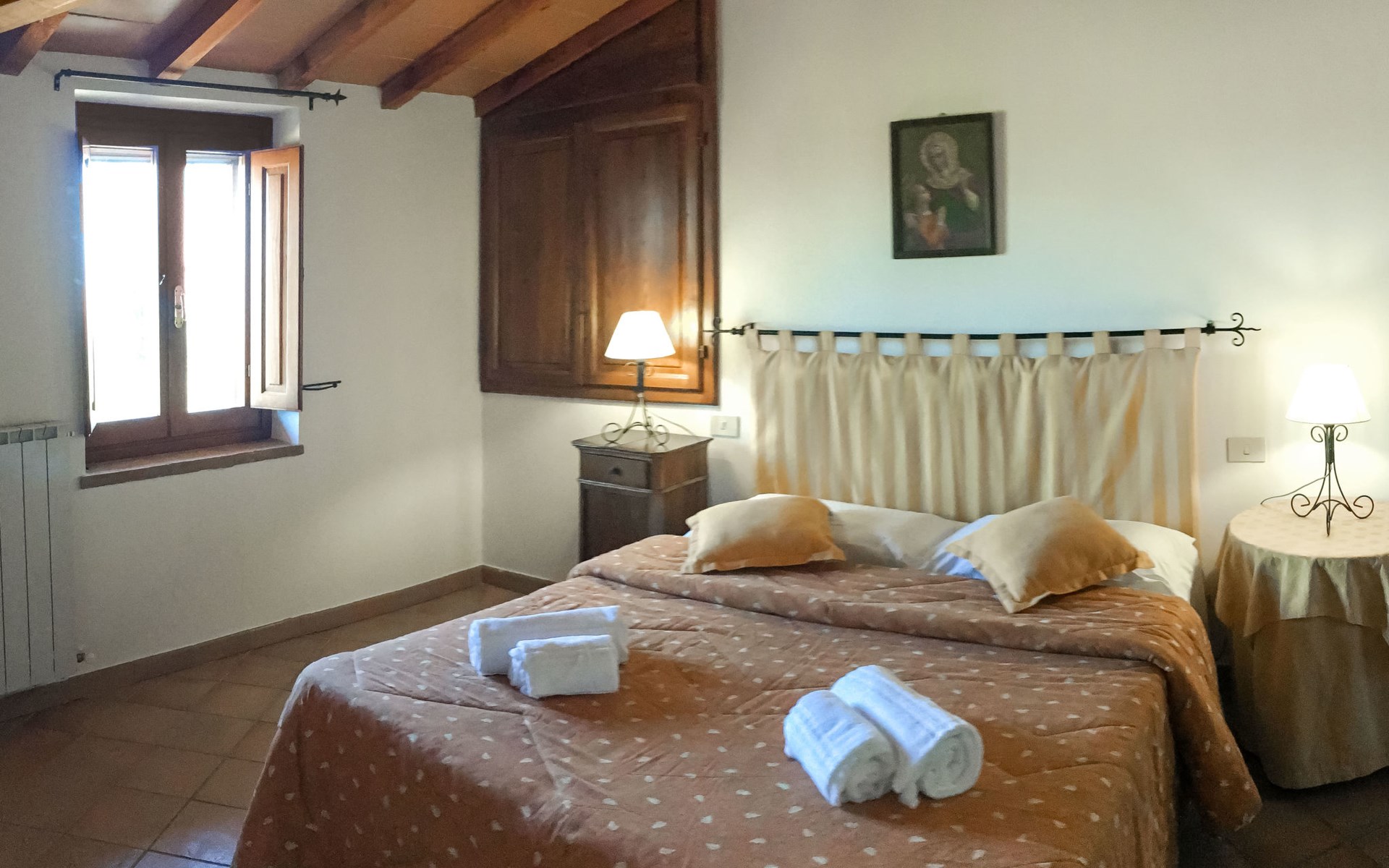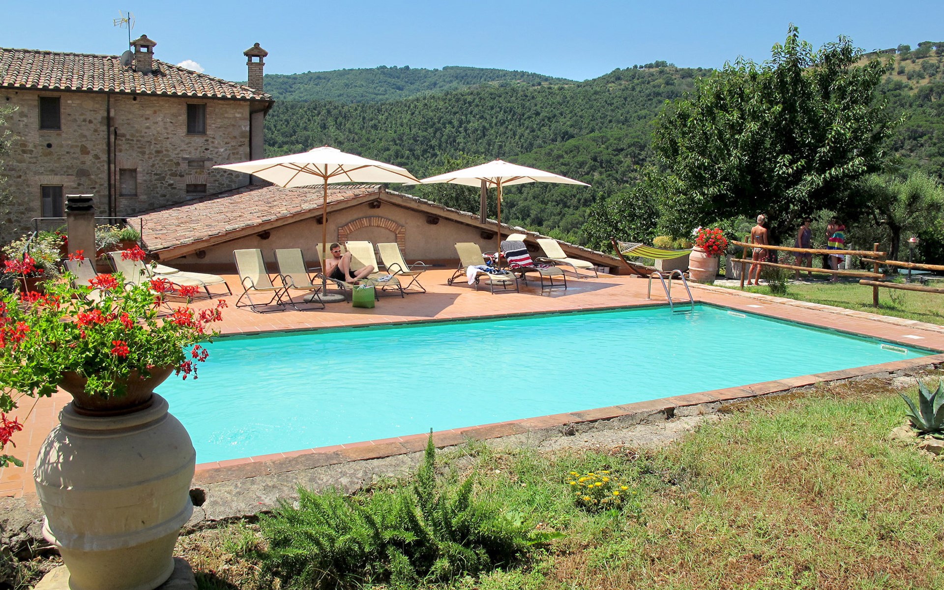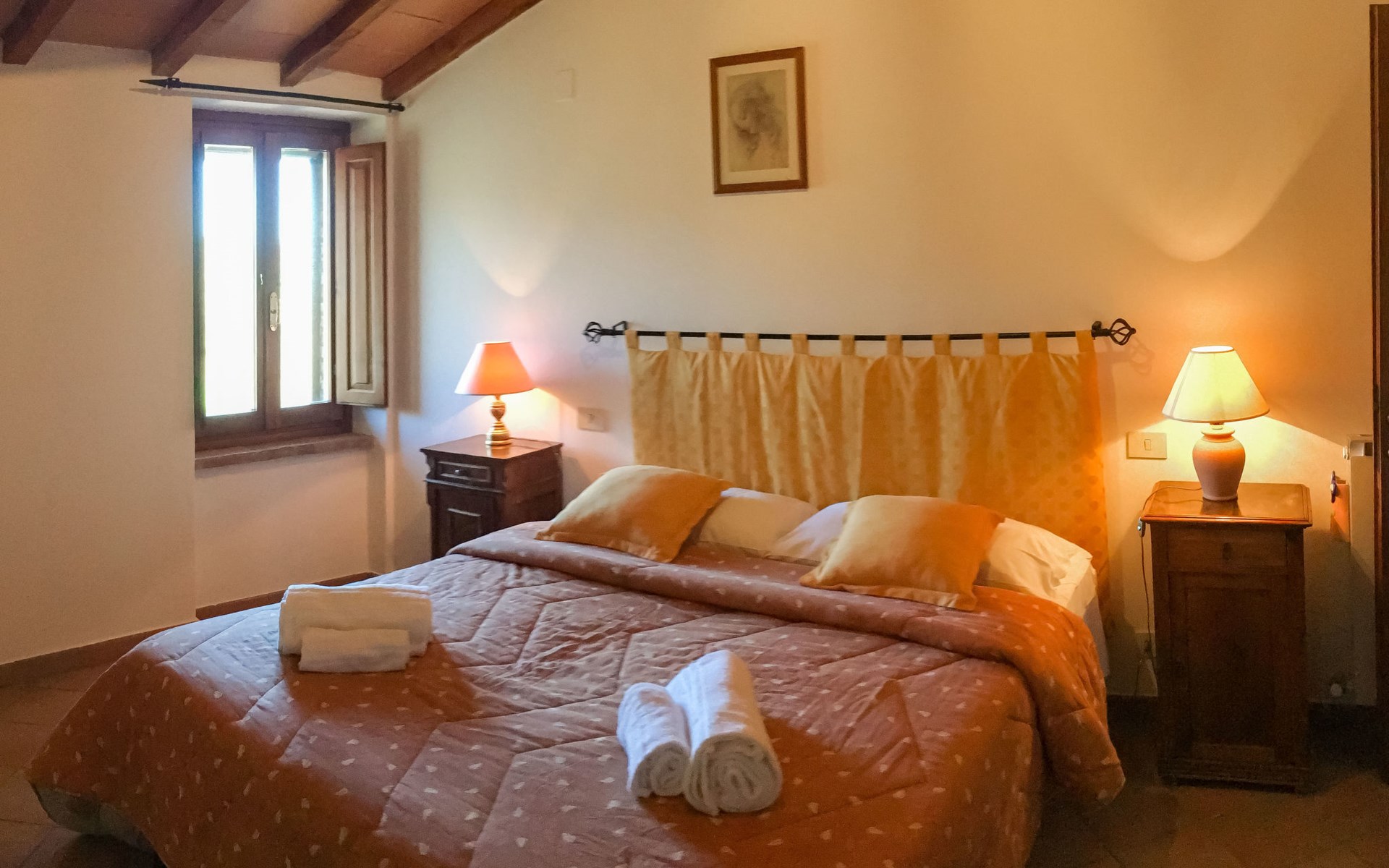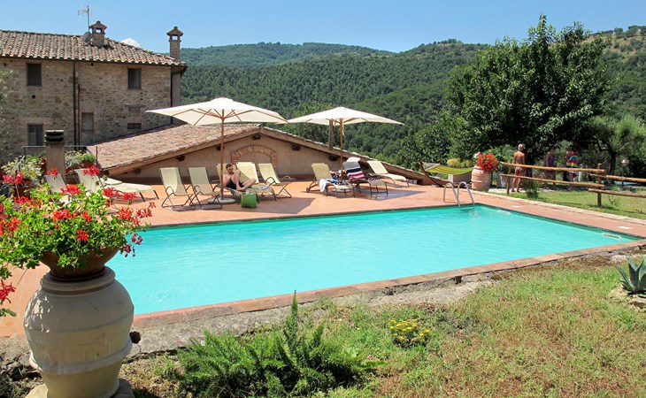 Rustikaler, komfortabler Landsitz "La Collina Fiorita", 400 m.ü.M., umgeben von Bäumen und Feldern. 12 km vom Zentrum von Tavernelle di Panicale, 18 km vom Zentrum von Perugia, auf einem Hügel, 32 km vom See, im Grünen. Zur Alleinbenutzung: Grundstück 5 ha, Garten 2 ha (eingezäunt), Wiese, Schwimmbad (10 x 5 m, saisonale Verfügbarkeit: 16.Mai. - 26.Sep.). Tischtennis, Sitzplatz, Gartenmöbel, Grill. Im Hause: Wireless LAN, Billard, Tischfussball, Waschmaschine (zur Mitbenutzung, extra). Brötchenservice. Zufahrt (100 m Naturweg). Parkplatz auf dem Grundstück. Einkaufsgeschäft 4 km, Bushaltestelle 2.5 km, Bahnstation "Chiusi" 33 km, Grasstrand "Castiglione del Lago" 32 km, Thermalbad "Chianciano" 45 km, Badesee "Trasimeno" 17 km. Nahe gelegene Sehenswürdigkeiten: Città Della Pieve 25 km, Todi 33 km, Cetona 40 km, San Casciano Dei Bagni 44 km, Assisi 45 km, Cortona 47 km. Bitte beachten: Fahrzeug empfohlen. Der Besitzer akzeptiert keine Jugendgruppen. Der Besitzer wohnt auf dem gleichen Grundstück.