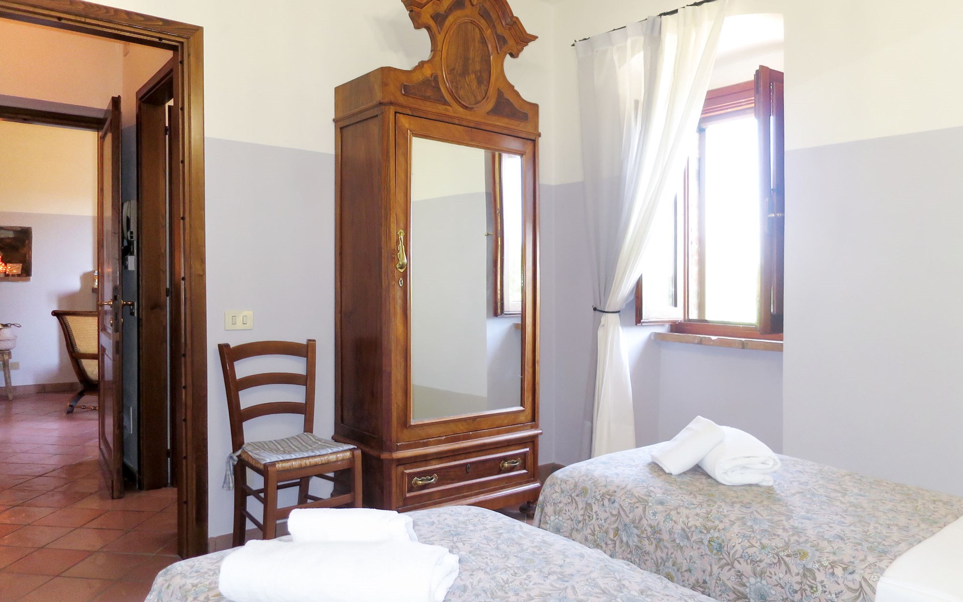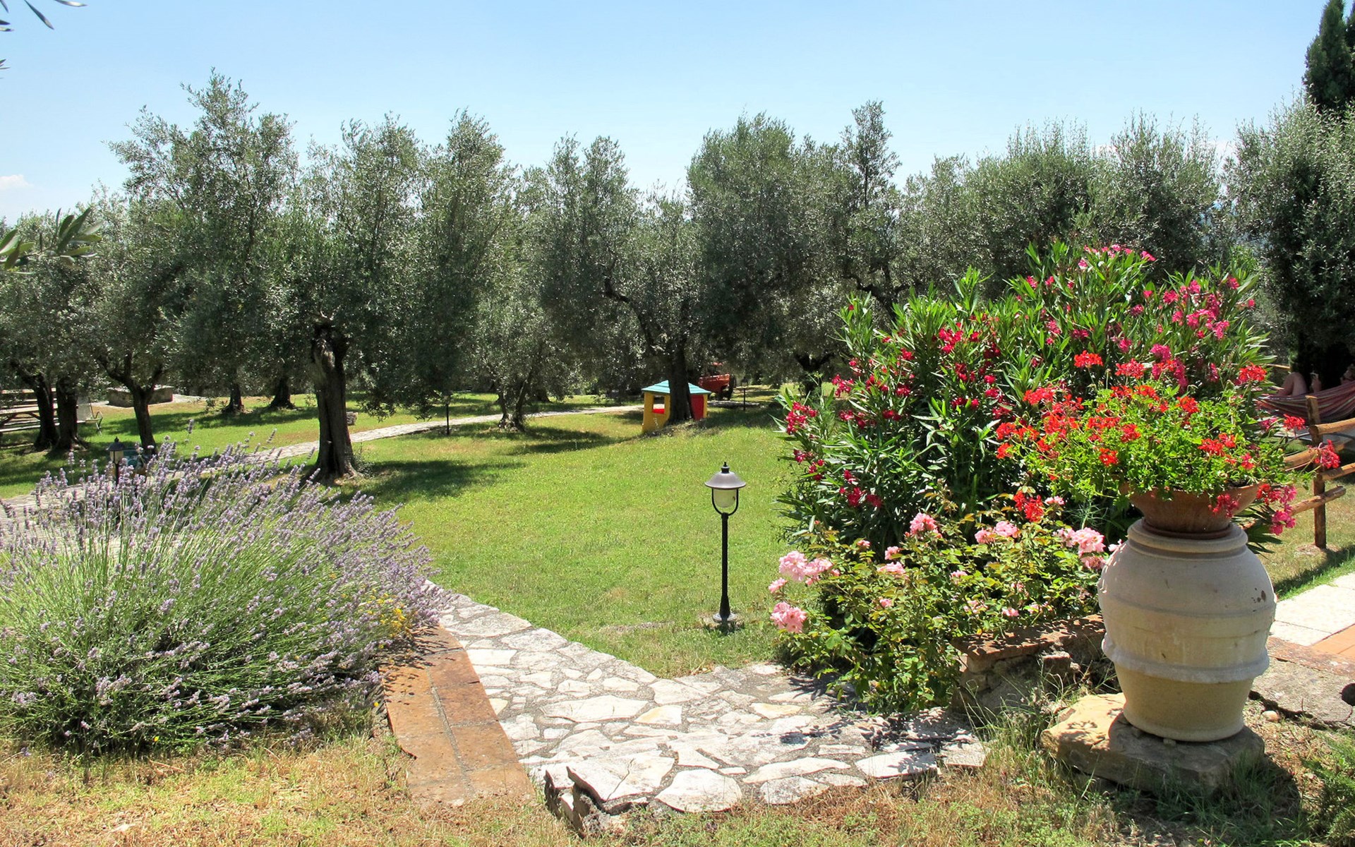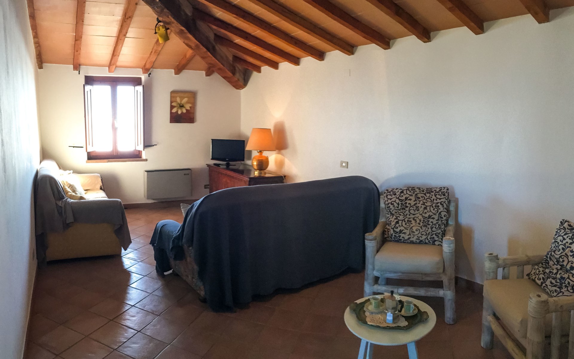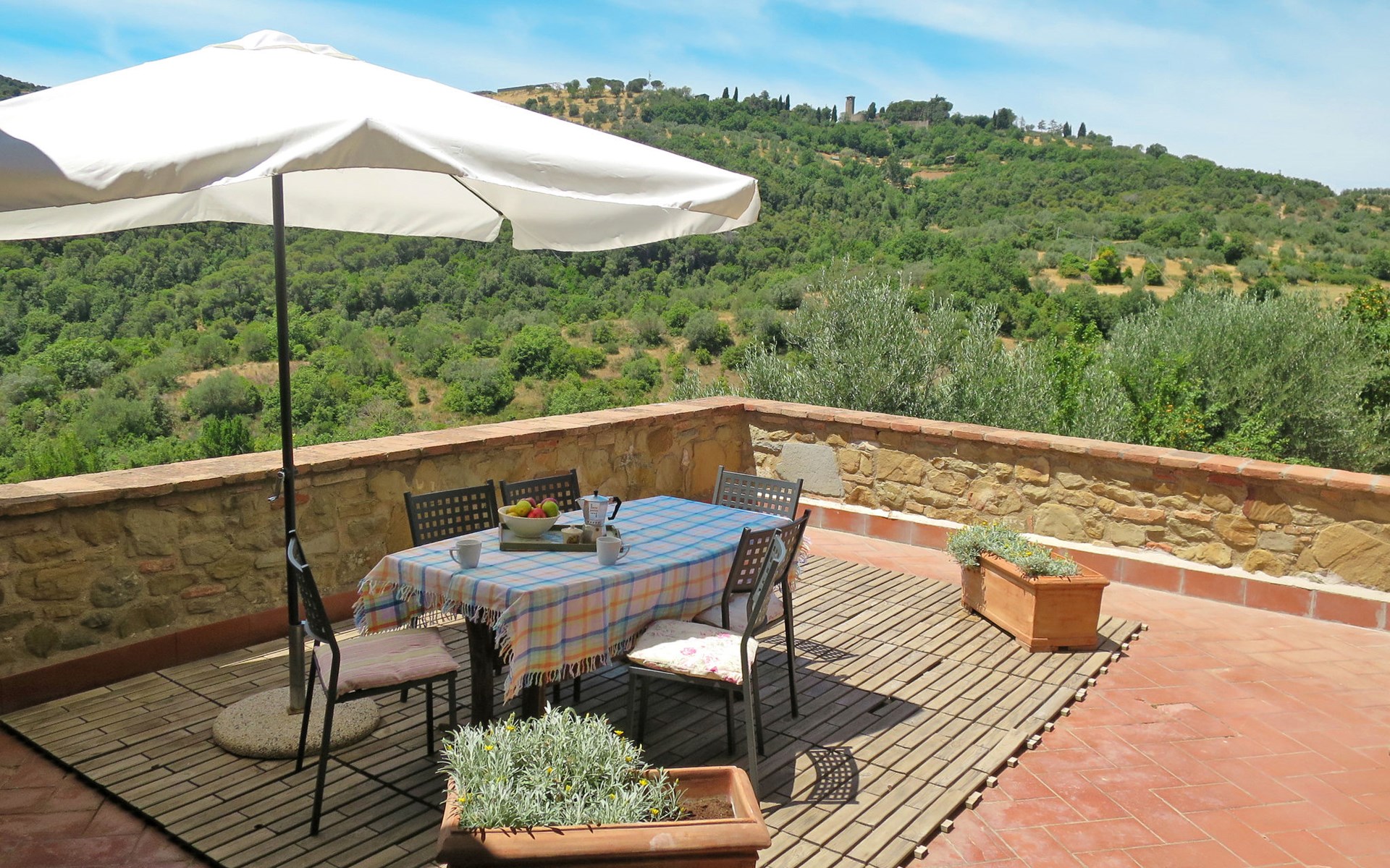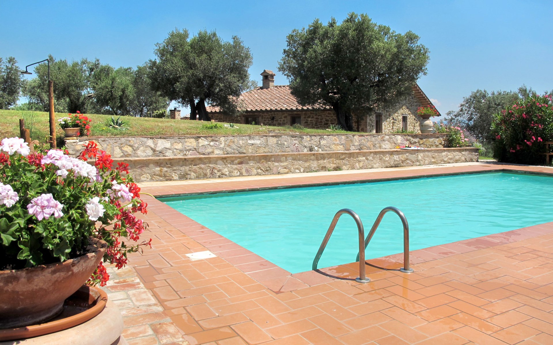 Rustikaler, komfortabler Landsitz "La Collina Fiorita", 400 m.ü.M., umgeben von Bäumen und Feldern. 12 km vom Zentrum von Tavernelle di Panicale, 18 km vom Zentrum von Perugia, auf einem Hügel, 32 km vom See, im Grünen. Zur Alleinbenutzung: Grundstück 5 ha, Garten 2 ha (eingezäunt), Wiese, Schwimmbad (10 x 5 m, saisonale Verfügbarkeit: 16.Mai. - 26.Sep.). Tischtennis, Sitzplatz, Gartenmöbel, Grill. Im Hause: Wireless LAN, Billard, Tischfussball, Waschmaschine (zur Mitbenutzung, extra). Brötchenservice. Zufahrt (100 m Naturweg). Parkplatz auf dem Grundstück. Einkaufsgeschäft 4 km, Bushaltestelle 2.5 km, Bahnstation "Chiusi" 33 km, Grasstrand "Castiglione del Lago" 32 km, Thermalbad "Chianciano" 45 km, Badesee "Trasimeno" 17 km. Nahe gelegene Sehenswürdigkeiten: Città Della Pieve 25 km, Todi 33 km, Cetona 40 km, San Casciano Dei Bagni 44 km, Assisi 45 km, Cortona 47 km. Bitte beachten: Fahrzeug empfohlen. Der Besitzer akzeptiert keine Jugendgruppen. Der Besitzer wohnt auf dem gleichen Grundstück.