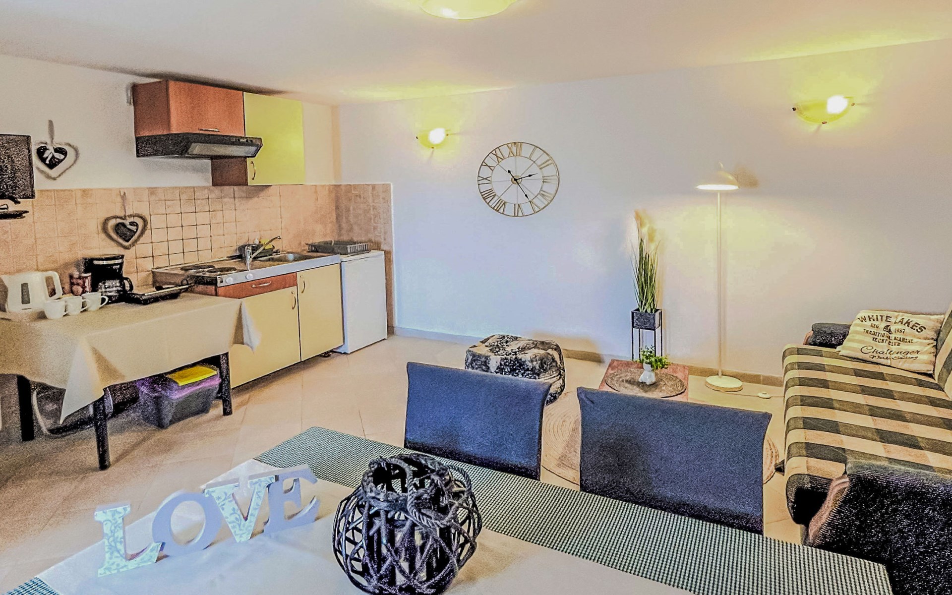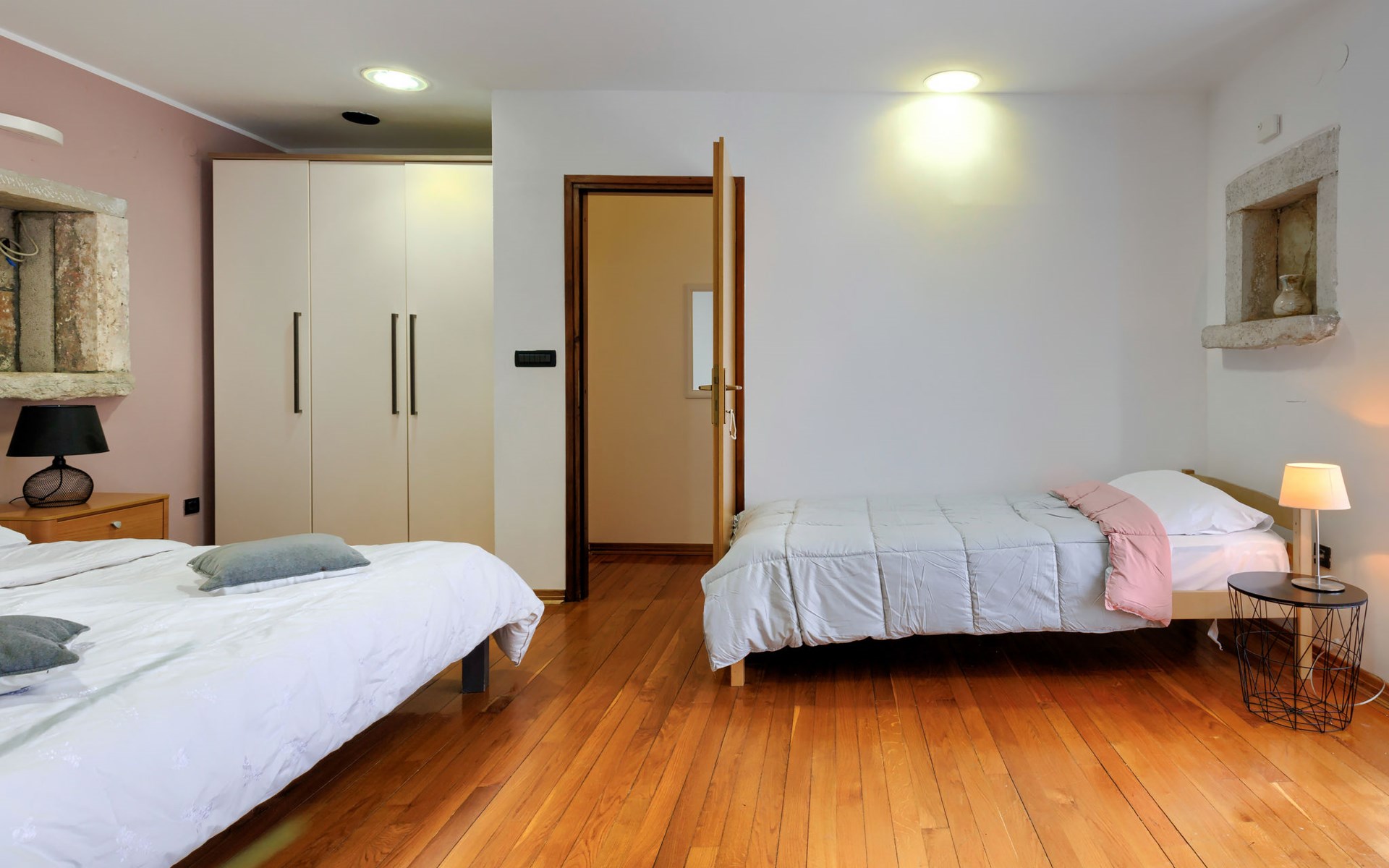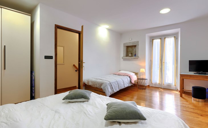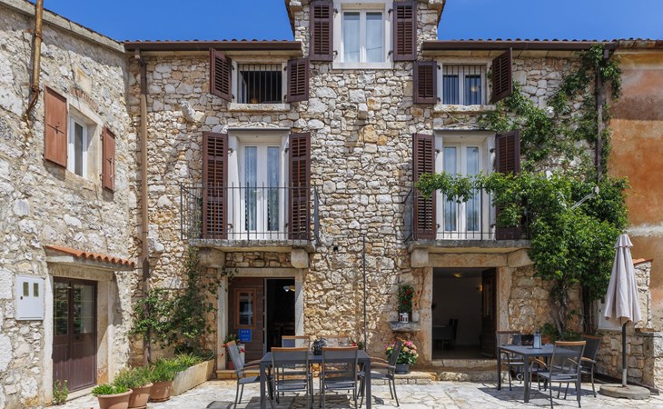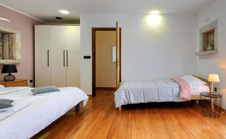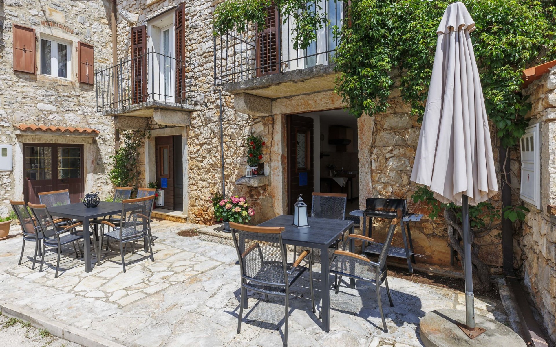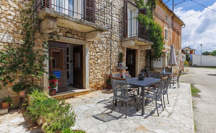 Reihenhaus "Erika", auf 3 Stockwerken. Im Weiler Kukci, 3 km vom Zentrum von Poreč, 16 km vom Zentrum von Novigrad, 3 km vom Meer, 3 km vom Strand, in einer Sackgasse. Zur Mitbenutzung: Terrasse (30 m2), Gartenmöbel, Grill. Im Hause: Internetzugang. Parkplatz beim Haus. Einkaufsgeschäft 70 m, Supermarkt 3 km, Restaurant 3 km, Bushaltestelle 1.4 km, Felsstrand 3 km.