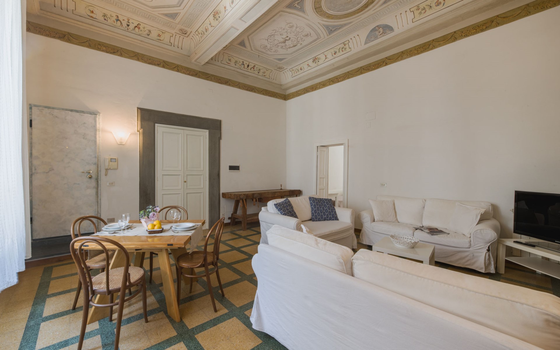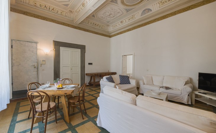 Camaiore: Historisches Appartementhaus auf 3 Stockwerken. Zentrale, belebte Lage im Villenviertel, exzellente Lage: Absolut zentral und dennoch ruhig, im Herzen der Stadt, verkehrsberuhigte Zone, 9 km vom Meer, 9 km vom Strand, in einer Fussgängerzone. Im Hause: Fahrstuhl, Einstellraum für Fahrräder. Öffentliche Parkplätze auf der Strasse. Gebührenpflichtige Kurzparkzone. Lebensmittelgeschäft, Supermarkt 300 m, Restaurant, Bar 200 m, Bäckerei 300 m, Fußgängerzone 10 m, Fahrradverleih 500 m, Bushaltestelle 1 km, Bahnstation "Camaiore Lido Capezzano" 6 km, Sandstrand "Lido di Camaiore" 9 km, Strandbad 9 km. Sporthafen 8 km, Golfplatz (18 Loch) 8 km, Surfschule 9 km, Segelschule 10 km, Wanderwege ab Haus 2 km. Nahe gelegene Sehenswürdigkeiten: Firenze 100 km, Lucca 30 km, Pisa 30 km, Forte dei Marmi 14 km, Pietrasanta 8 km, Cinque Terre 90 km. Wandergebiete: Sentieri Alpi Apuane 8 km. Bitte beachten: autofreie Ferienanlage. Taxi kann nicht bis zum Haus fahren. Der Besitzer wohnt im selben Haus.