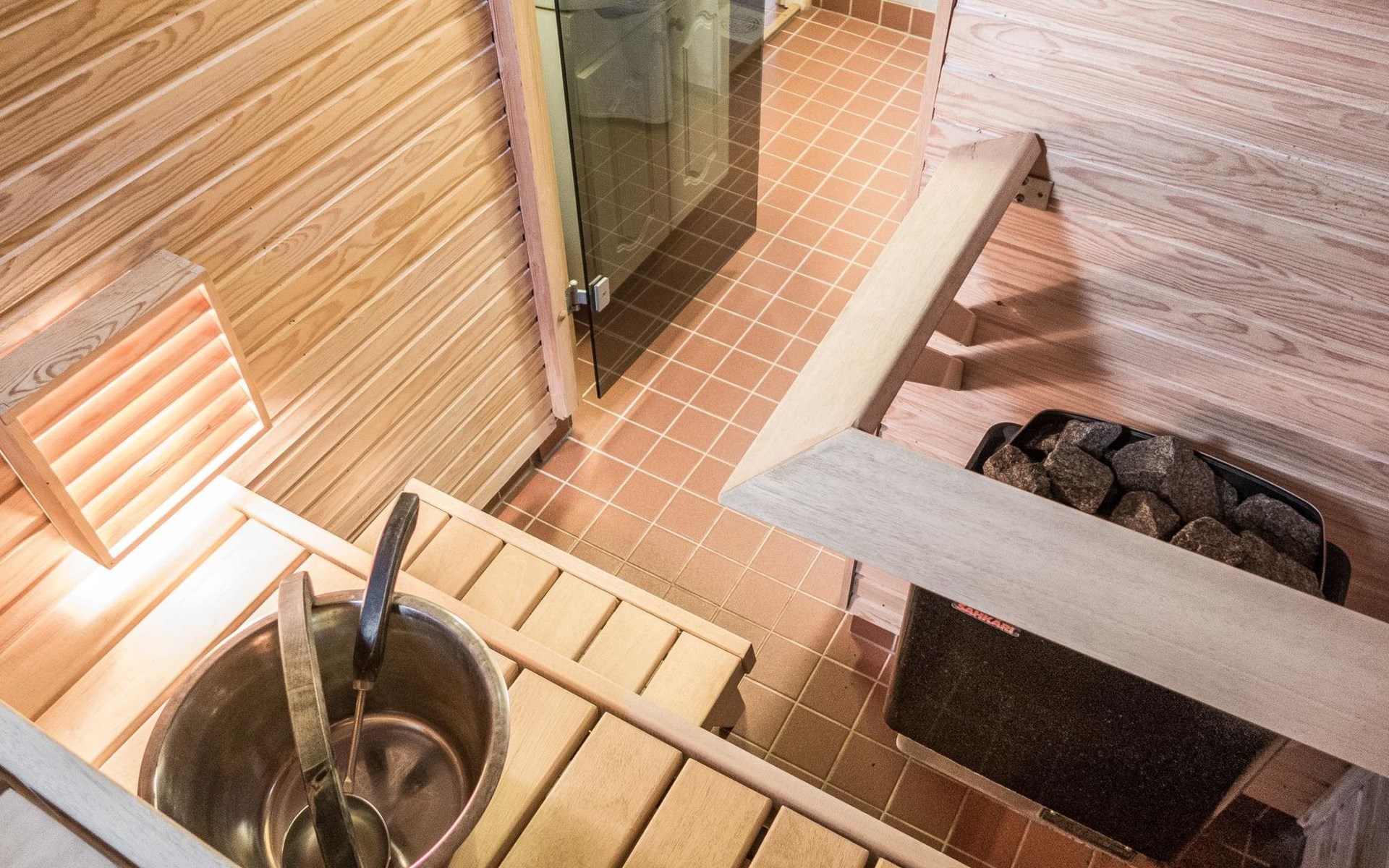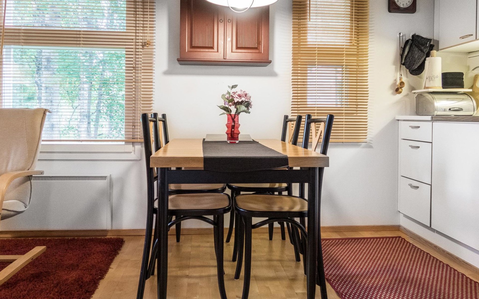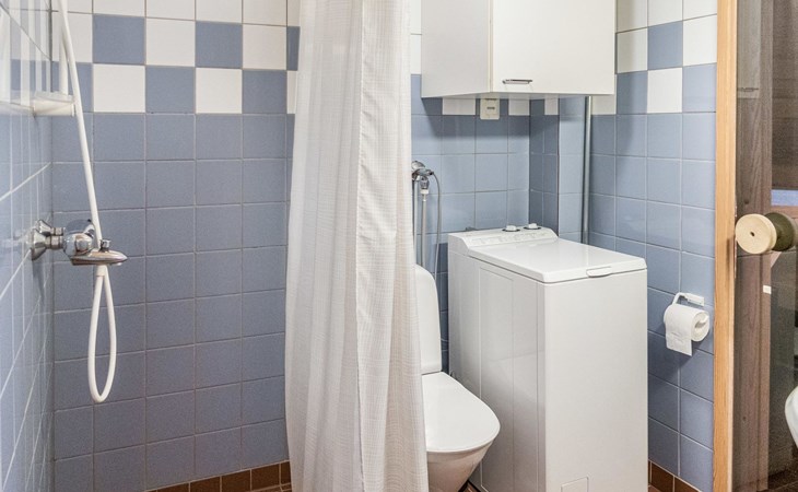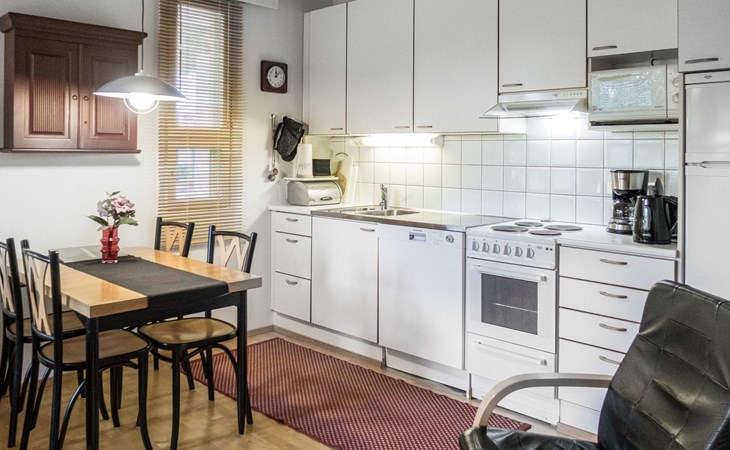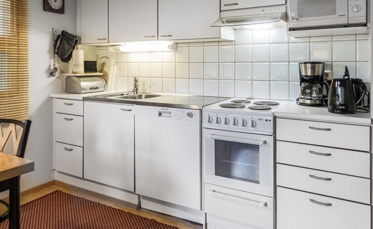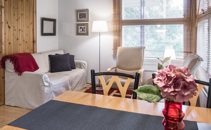 Living area: 36 m² + loft, kitchen/living room, dinning for 4 persons, bedroom with double bed. Open loft with two separate beds + 1 mattress (for child). Sauna (electric), shower/wc.