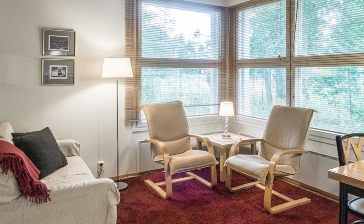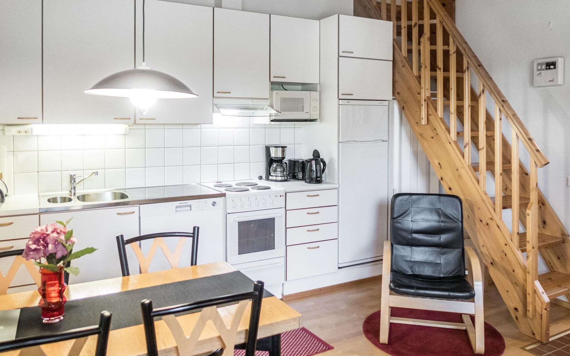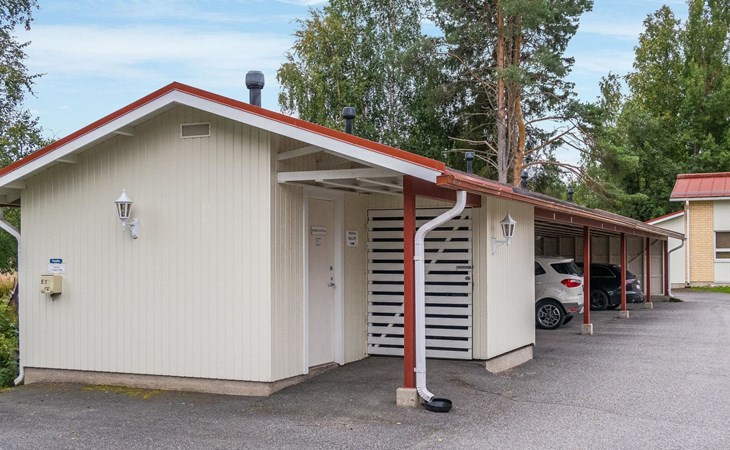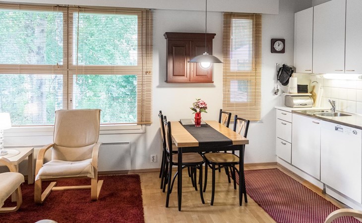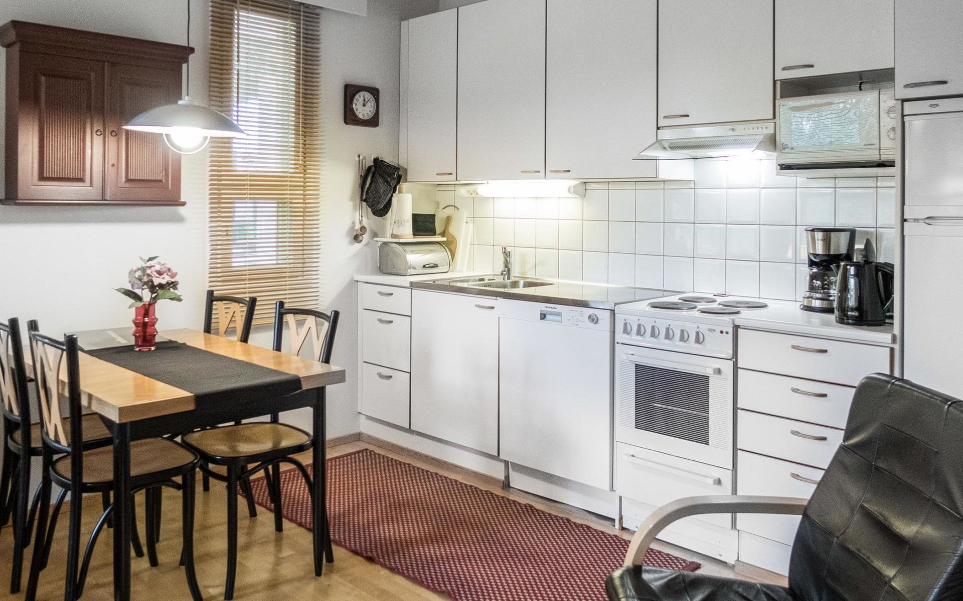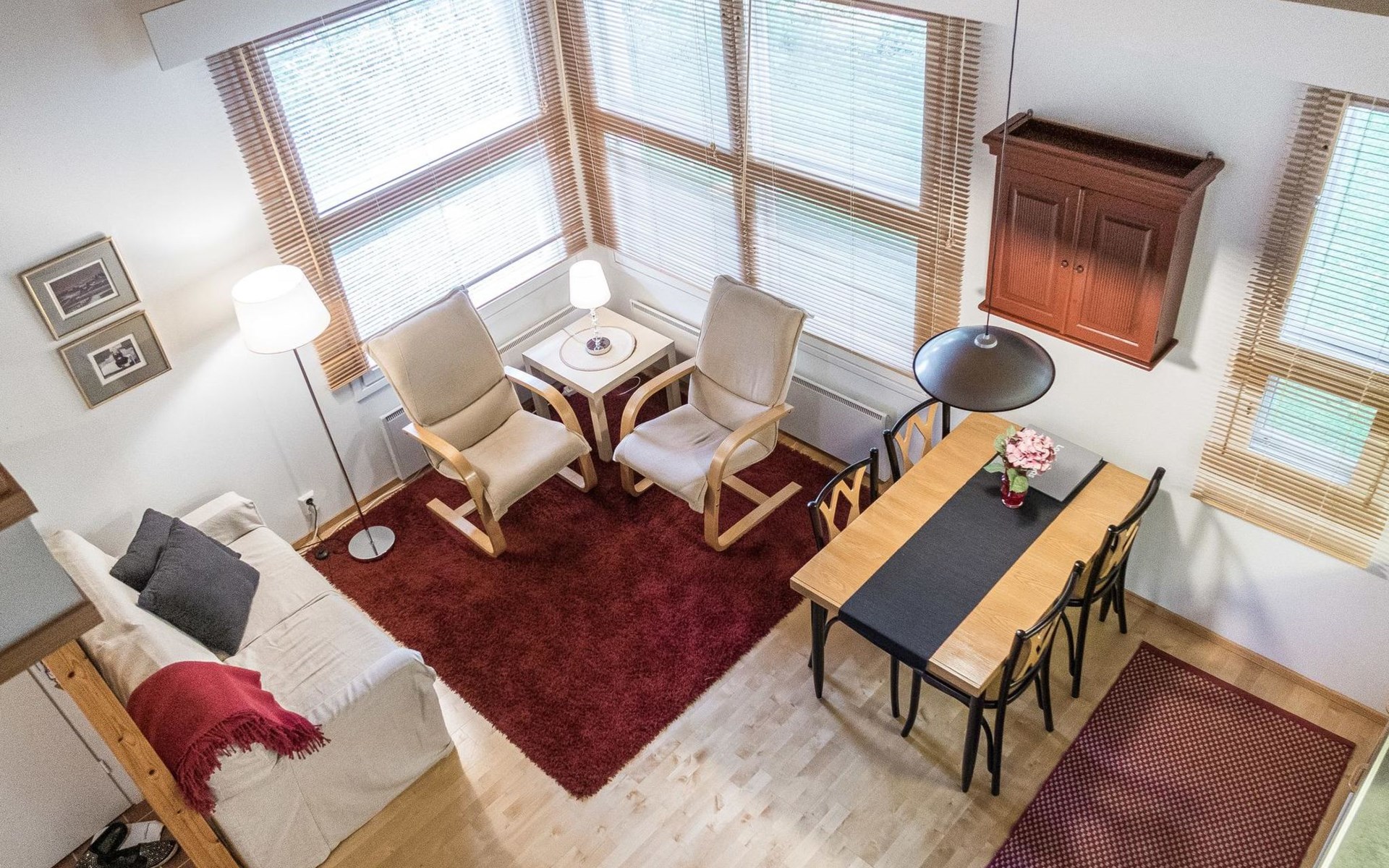 Living area: 36 m² + loft, kitchen/living room, dinning for 4 persons, bedroom with double bed. Open loft with two separate beds + 1 mattress (for child). Sauna (electric), shower/wc.