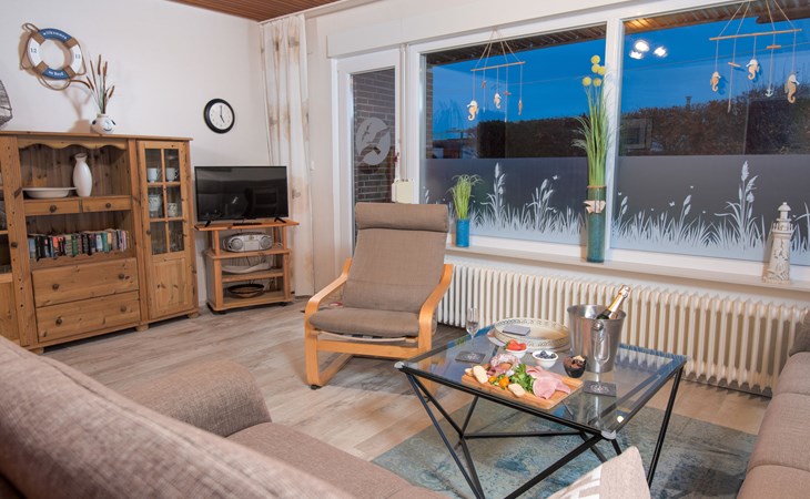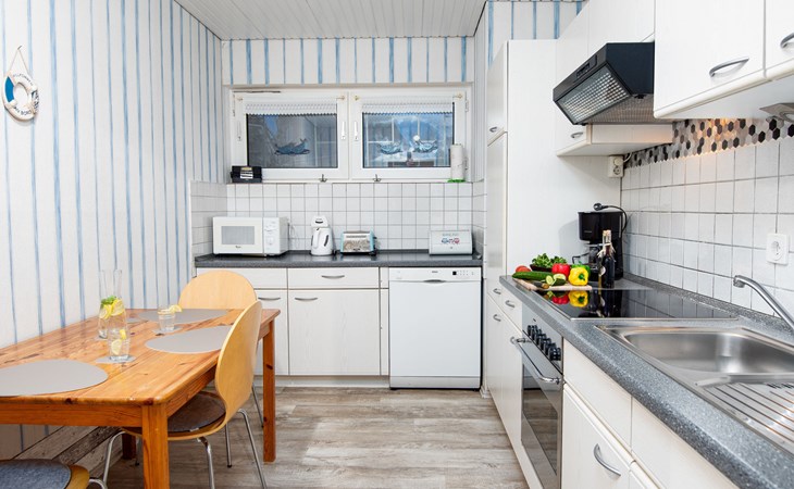 Reihenhaus "Albatross". Im Ort, 500 m vom Meer, 700 m vom Strand. Zur Alleinbenutzung: Garten. Im Hause: Zentralheizung. Parkplatz beim Haus. Supermarkt 1 km, Restaurant, Bäckerei, Café 600 m, Bushaltestelle 600 m, Bahnstation "Norddeich" 2.5 km, Fähre 2.5 km, Sandstrand 700 m, Freibad 14 km, Hallenbad. Golfplatz (18 Loch) 8 km, Surfschule 700 m, Tennis 2.7 km, Tennishalle 2.7 km.