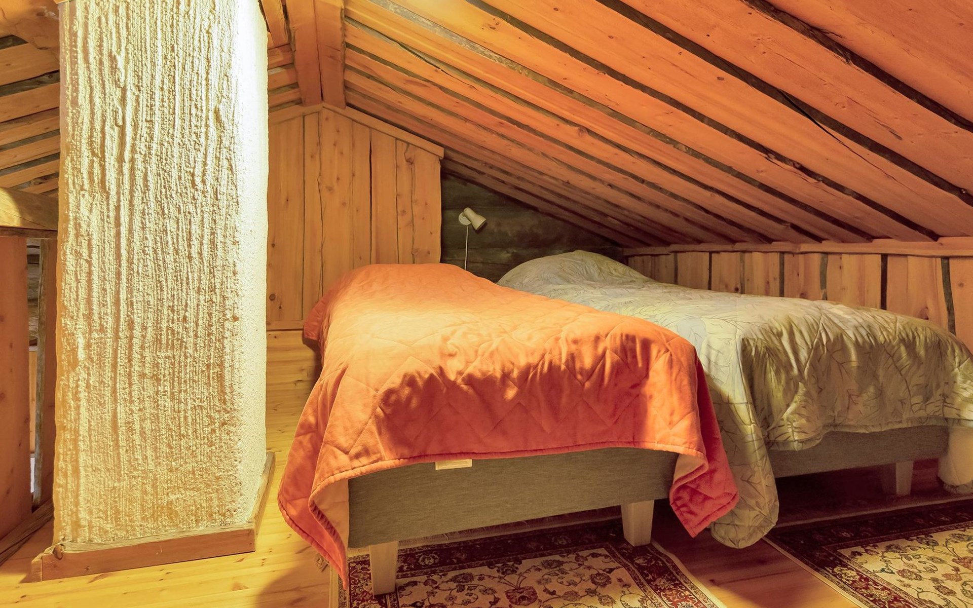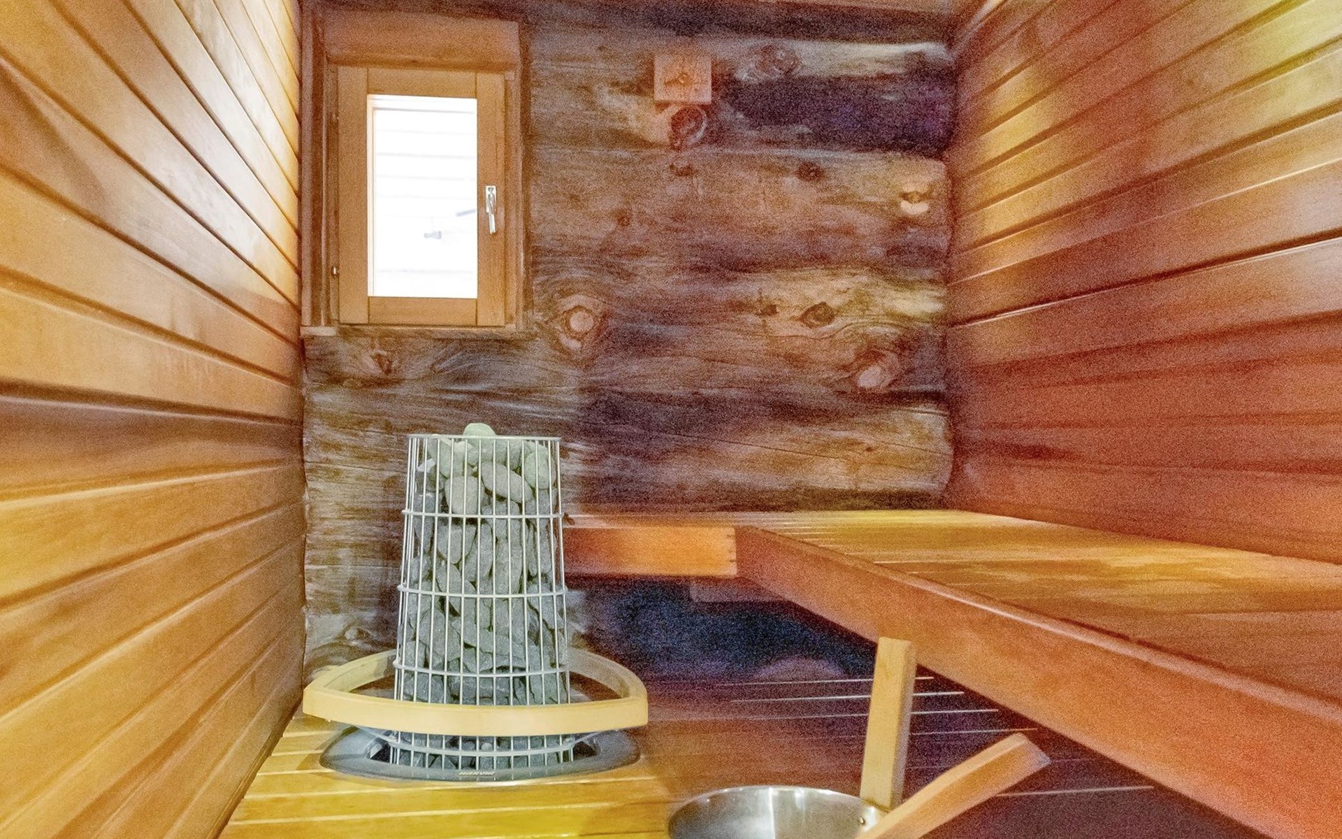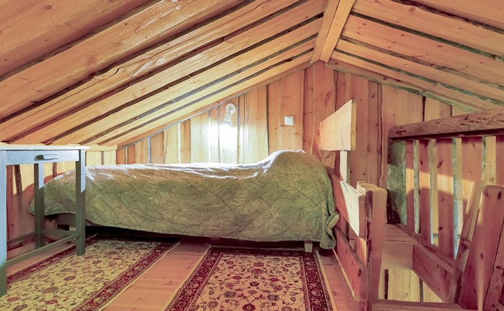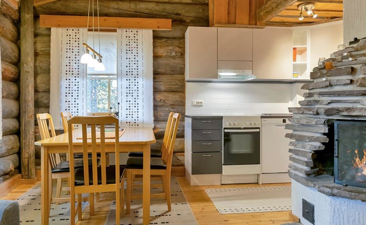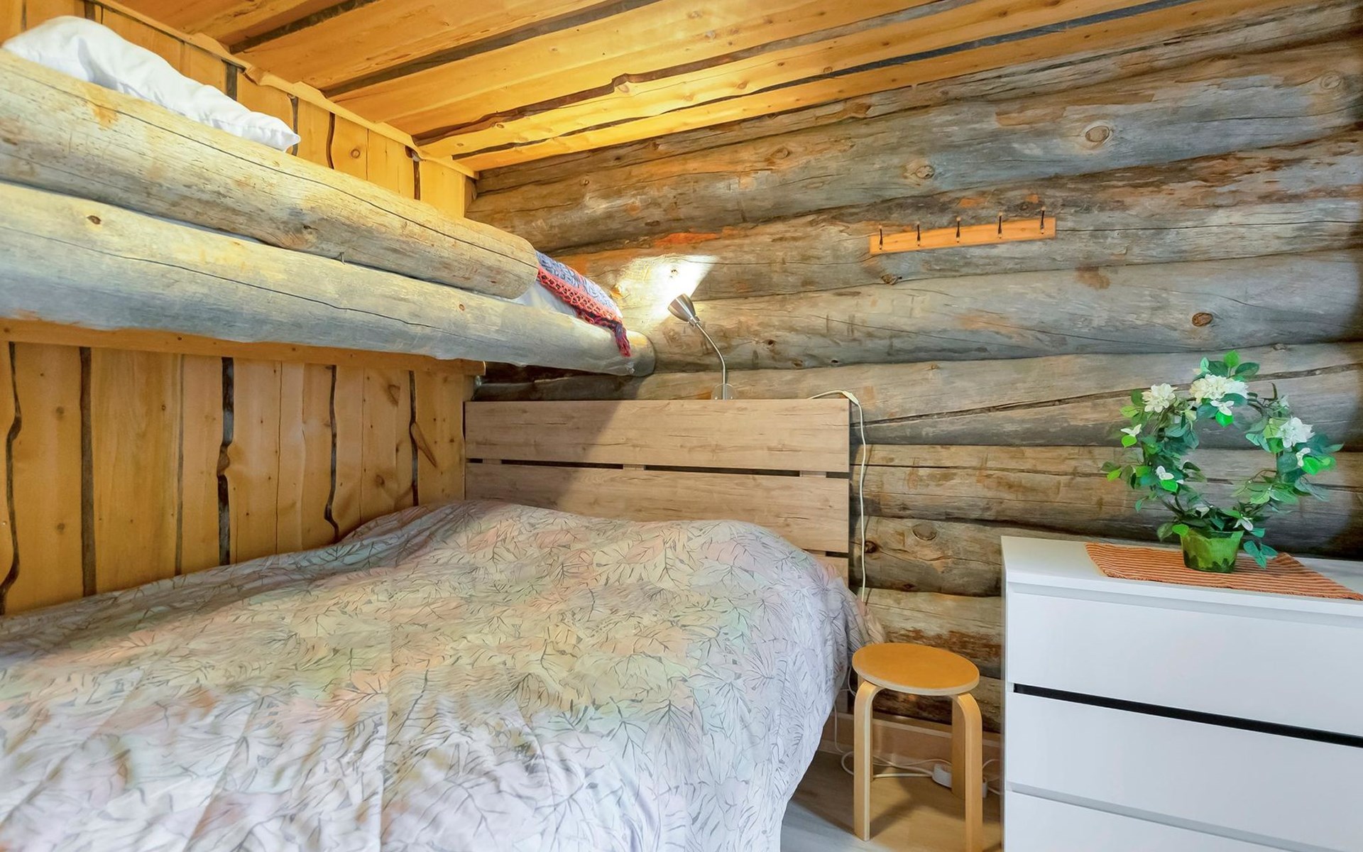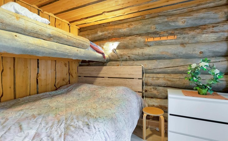 45 km north of Kemijärvi, located in Pyhätunturi Ski resort. Silverlog row house apartment built in 1990. Open concept living room kitchen, small bedroom with 2 beds ( 2x80 cm), sleeping loft (to which steep stairs) with 3 beds, renovated washroom and sauna (elec. stove).