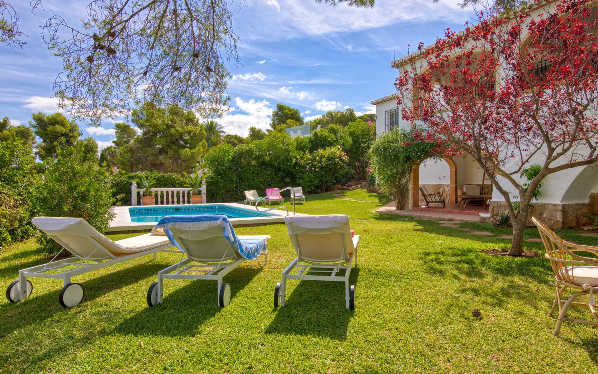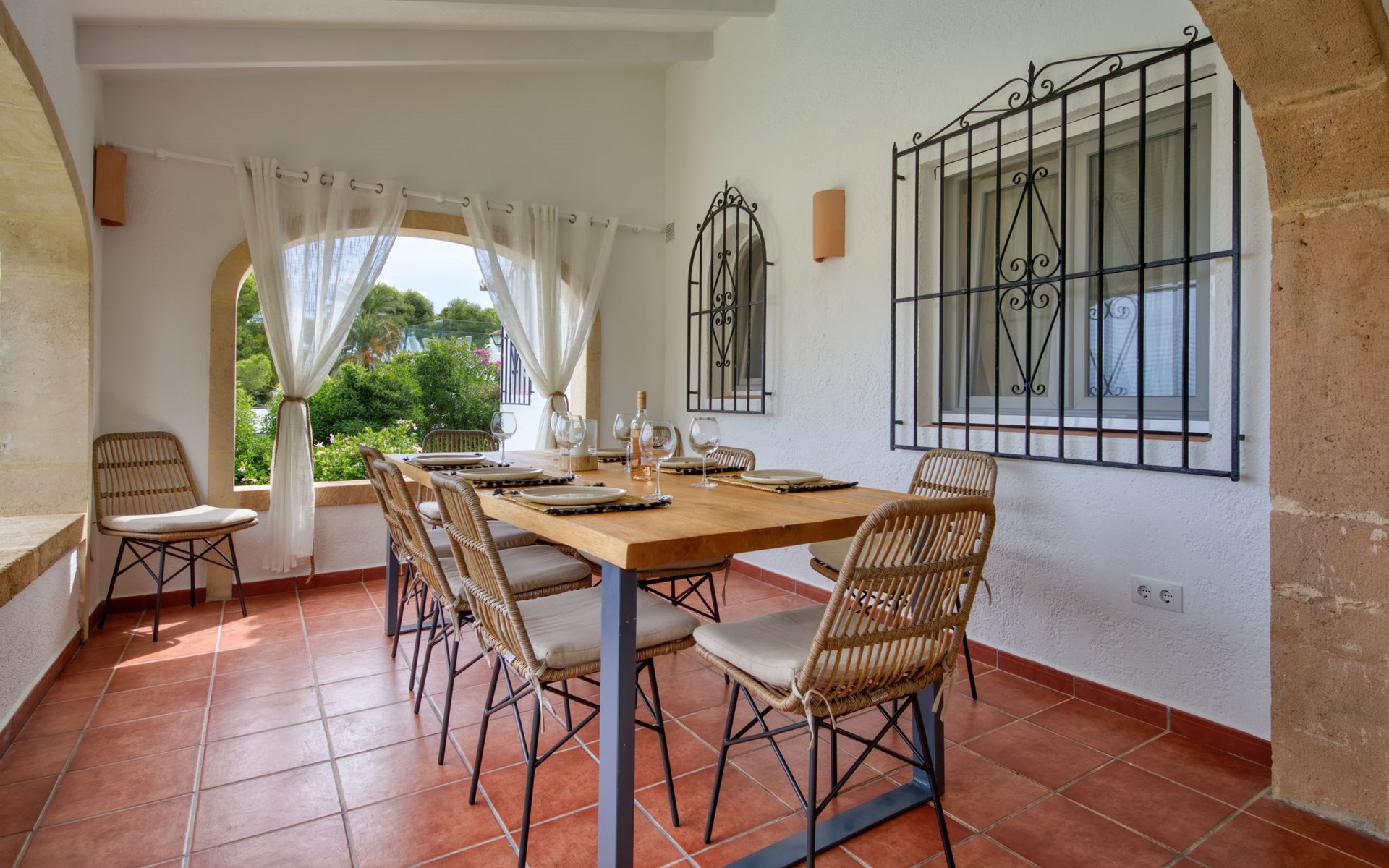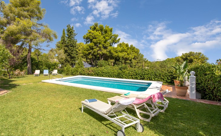 Sehr grosse, sehr schöne, sehr komfortable Villa "Louise", auf 2 Stockwerken. Ruhige, sonnige Lage, 3.5 km vom Meer, 3.5 km vom Strand. Zur Alleinbenutzung: grosser, schöner, gepflegter Garten mit Pflanzen und Bäumen, Schwimmbad (10 x 5 m, 110 - 210 cm tief, saisonale Verfügbarkeit: 01.Jan. - 31.Dez.) mit Innentreppe. Aussendusche, Pergola (30 m2), Terrasse, Gartenmöbel. Im Hause: Zentralheizung. Parkplatz (überdacht) auf dem Grundstück. Einkaufsgeschäft 1.8 km, Supermarkt 1.8 km, Restaurant 1.8 km, Bushaltestelle 3.5 km, Sandstrand "El Arenal" 3.5 km, Steinstrand "La Granadella" 6 km. Golfplatz (9 Loch) 8 km, Surfschule 3.5 km, Segelschule 3.5 km, Tennis 3.5 km. Bitte beachten: Fahrzeug empfohlen. Geeignet für Familien. Der Besitzer akzeptiert keine Jugendgruppen.