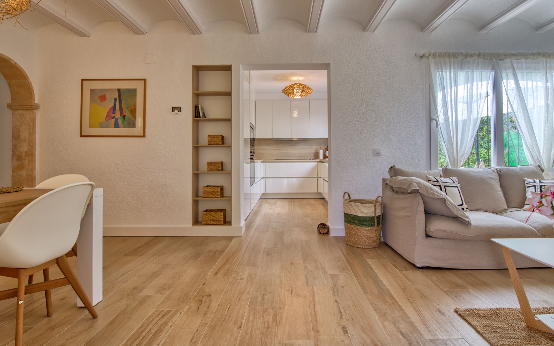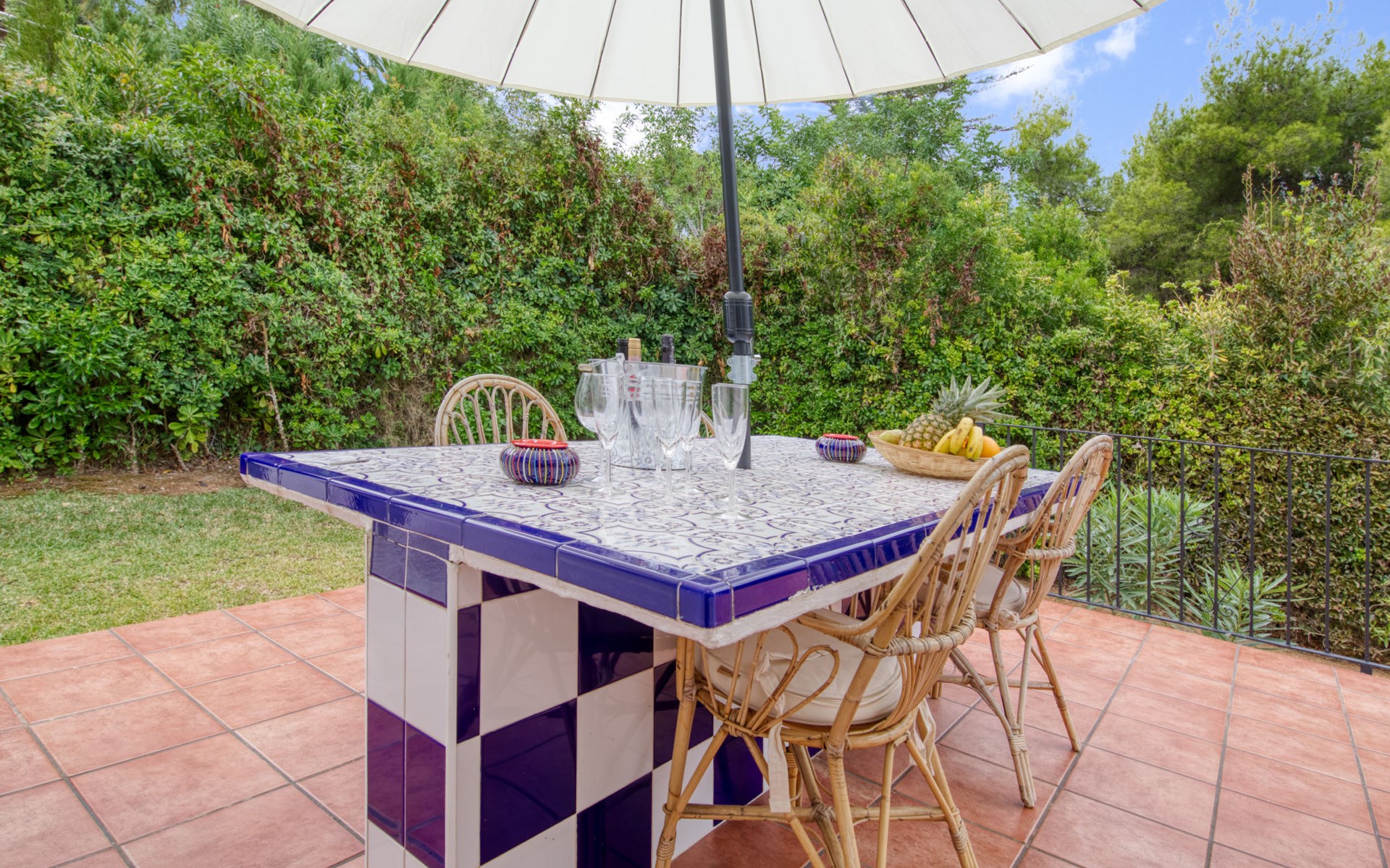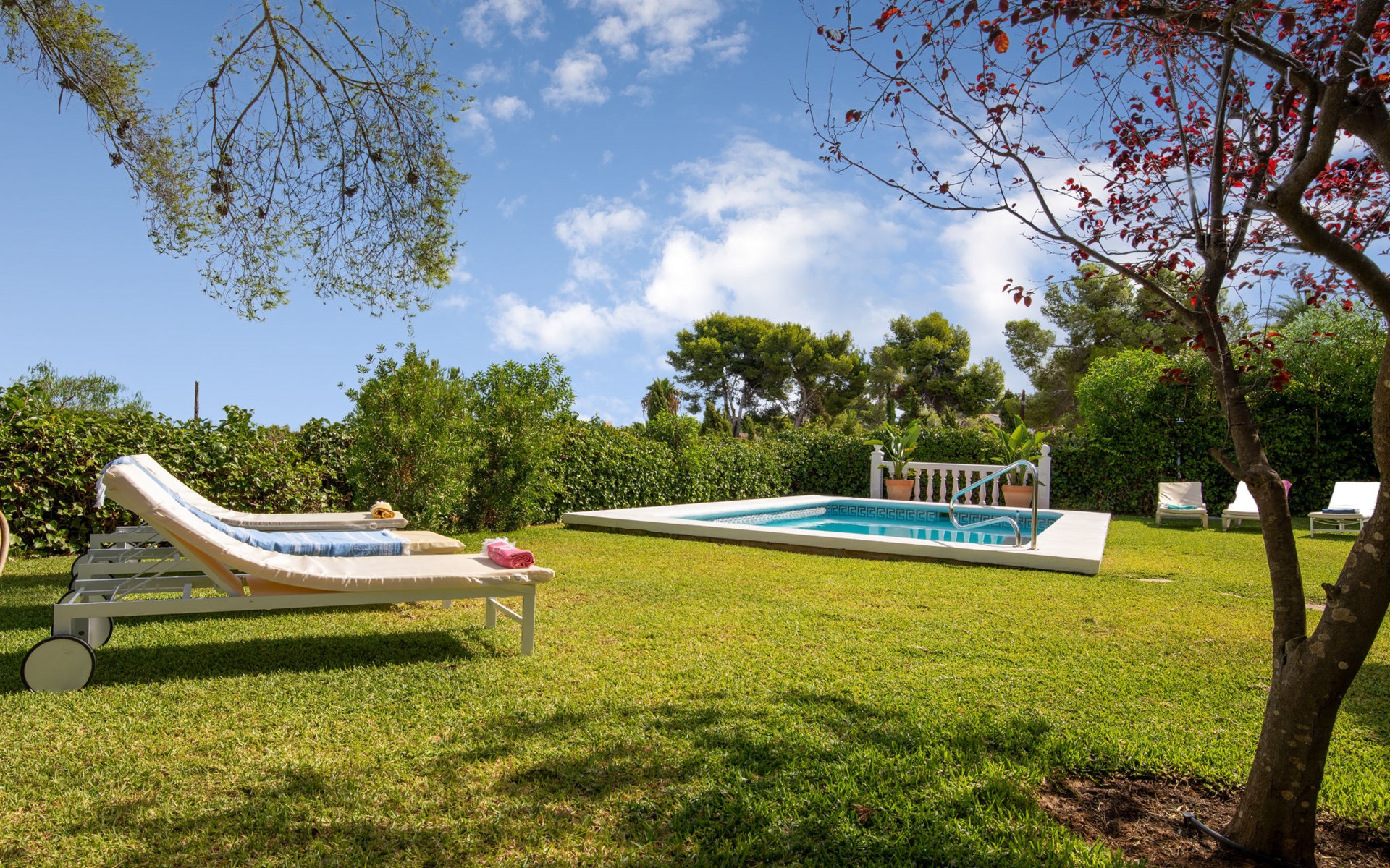 Sehr grosse, sehr schöne, sehr komfortable Villa "Louise", auf 2 Stockwerken. Ruhige, sonnige Lage, 3.5 km vom Meer, 3.5 km vom Strand. Zur Alleinbenutzung: grosser, schöner, gepflegter Garten mit Pflanzen und Bäumen, Schwimmbad (10 x 5 m, 110 - 210 cm tief, saisonale Verfügbarkeit: 01.Jan. - 31.Dez.) mit Innentreppe. Aussendusche, Pergola (30 m2), Terrasse, Gartenmöbel. Im Hause: Zentralheizung. Parkplatz (überdacht) auf dem Grundstück. Einkaufsgeschäft 1.8 km, Supermarkt 1.8 km, Restaurant 1.8 km, Bushaltestelle 3.5 km, Sandstrand "El Arenal" 3.5 km, Steinstrand "La Granadella" 6 km. Golfplatz (9 Loch) 8 km, Surfschule 3.5 km, Segelschule 3.5 km, Tennis 3.5 km. Bitte beachten: Fahrzeug empfohlen. Geeignet für Familien. Der Besitzer akzeptiert keine Jugendgruppen.