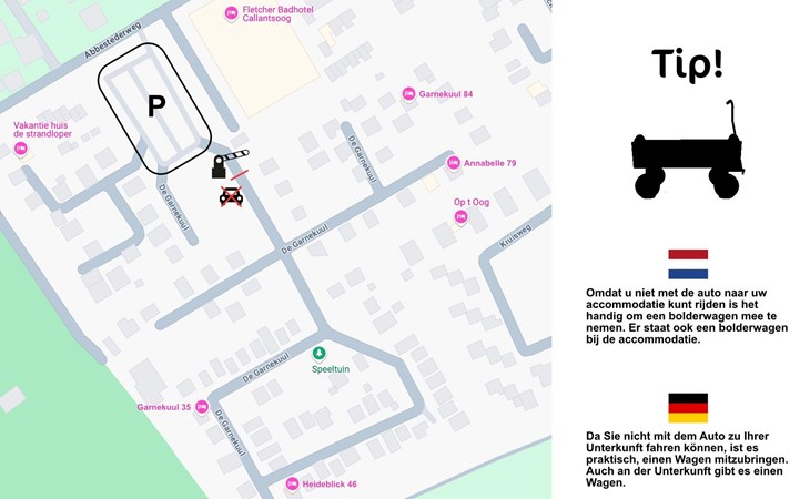Bitte beachten Sie: Sie können nicht direkt bei Ihrer Unterkunft parken, sondern müssen den allgemeinen Parkplatz am Eingang des Parks nutzen.