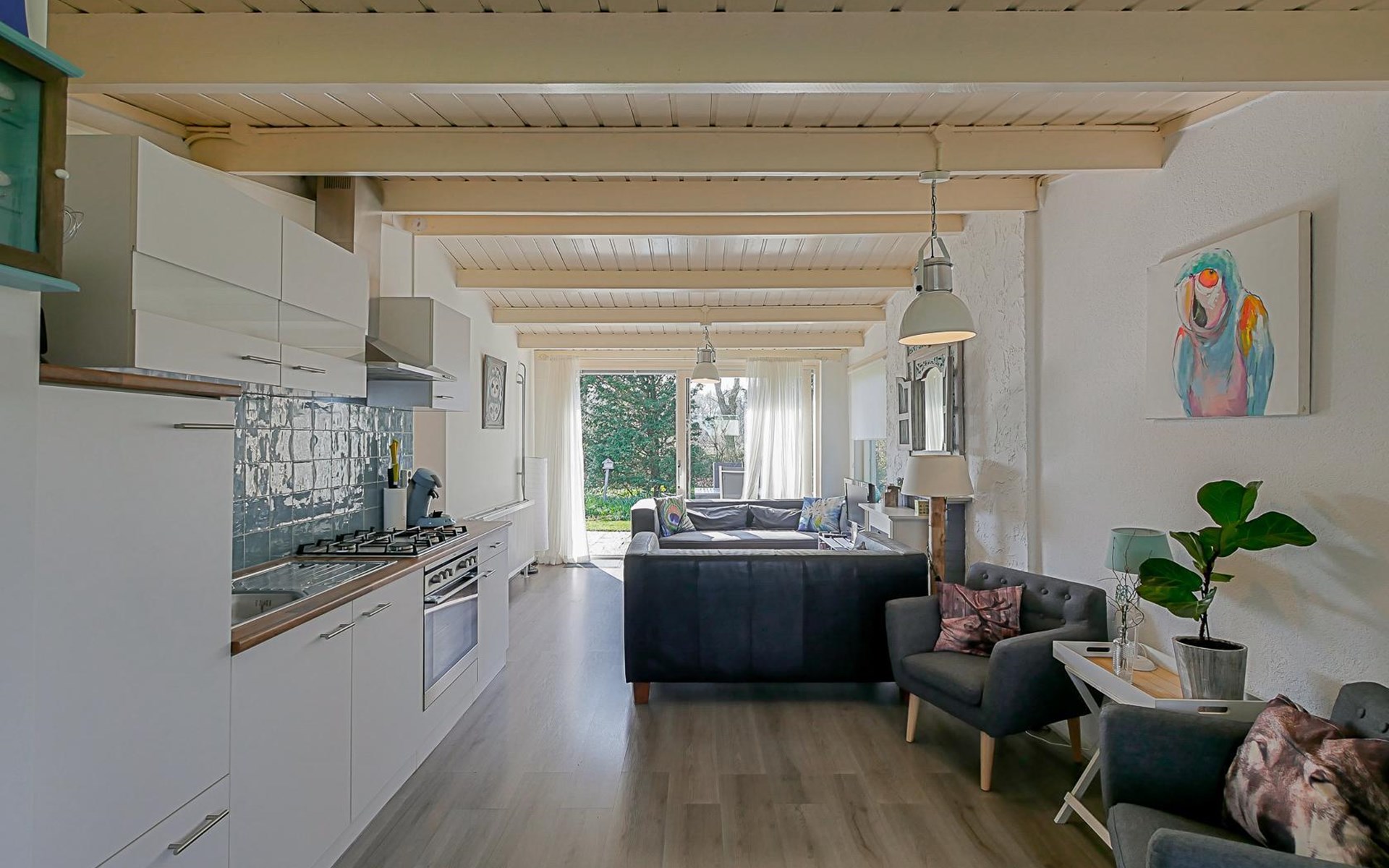 De ligging tov het dorp, strand, rondje met de hond, fantastische tuin!