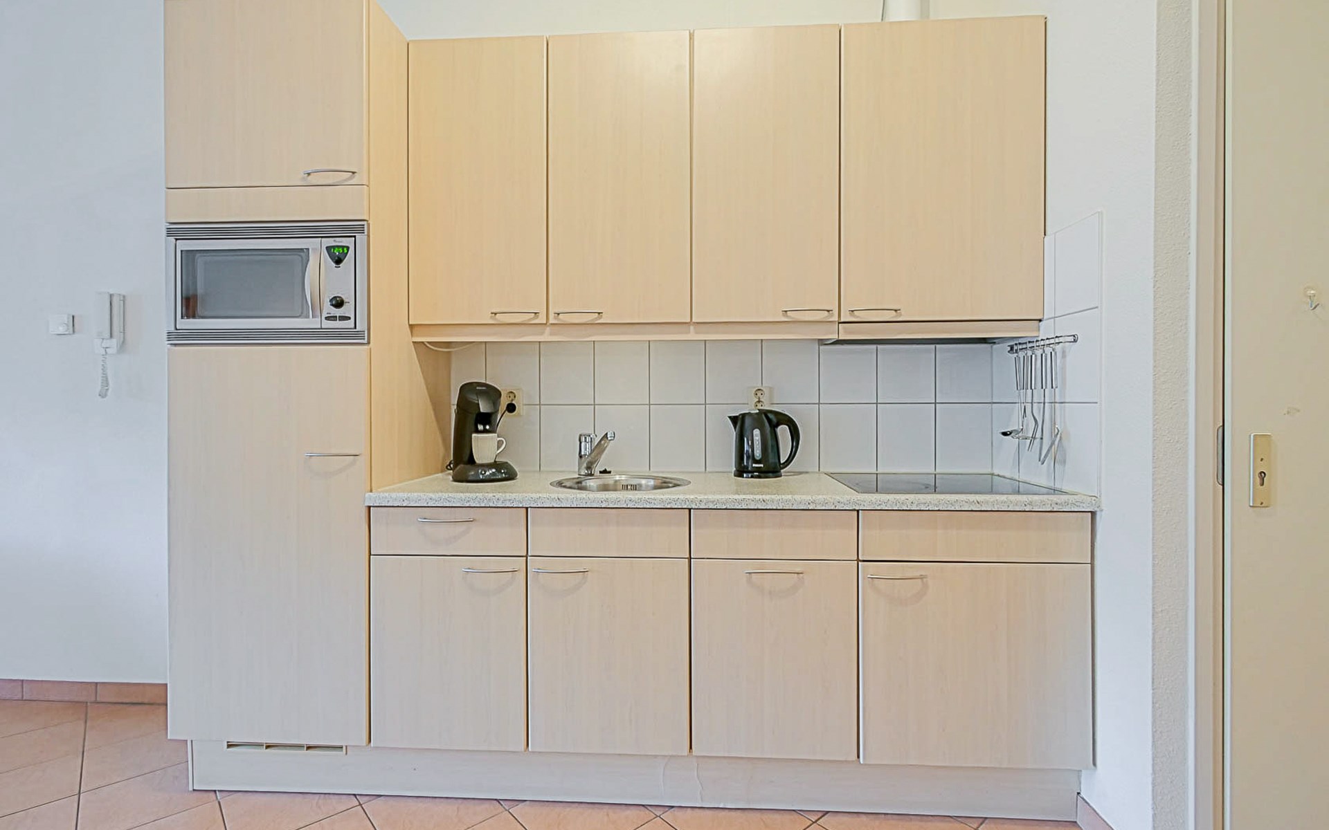 Eine schöne Wohnung mit einer guten Küchen Ausstattung (Kaffeepad Maschine und Filtermaschiene, Wasserkocher, Milchaufschäumer, Toaster).