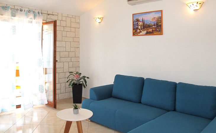 Dreifamilienhaus "Ružica". 10 km vom Zentrum von Omiš, 200 m vom Zentrum von Marušići, 130 m vom Meer, 130 m vom Strand, in einer Sackgasse. Zur Mitbenutzung: Grundstück 400 m2. Im Hause: Internetzugang. Parkplatz. Einkaufsgeschäft 200 m, Supermarkt 14 km, Bushaltestelle 150 m, Kieselstrand 130 m.