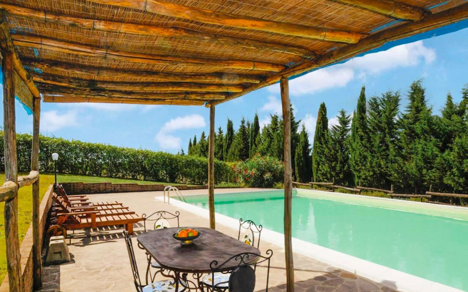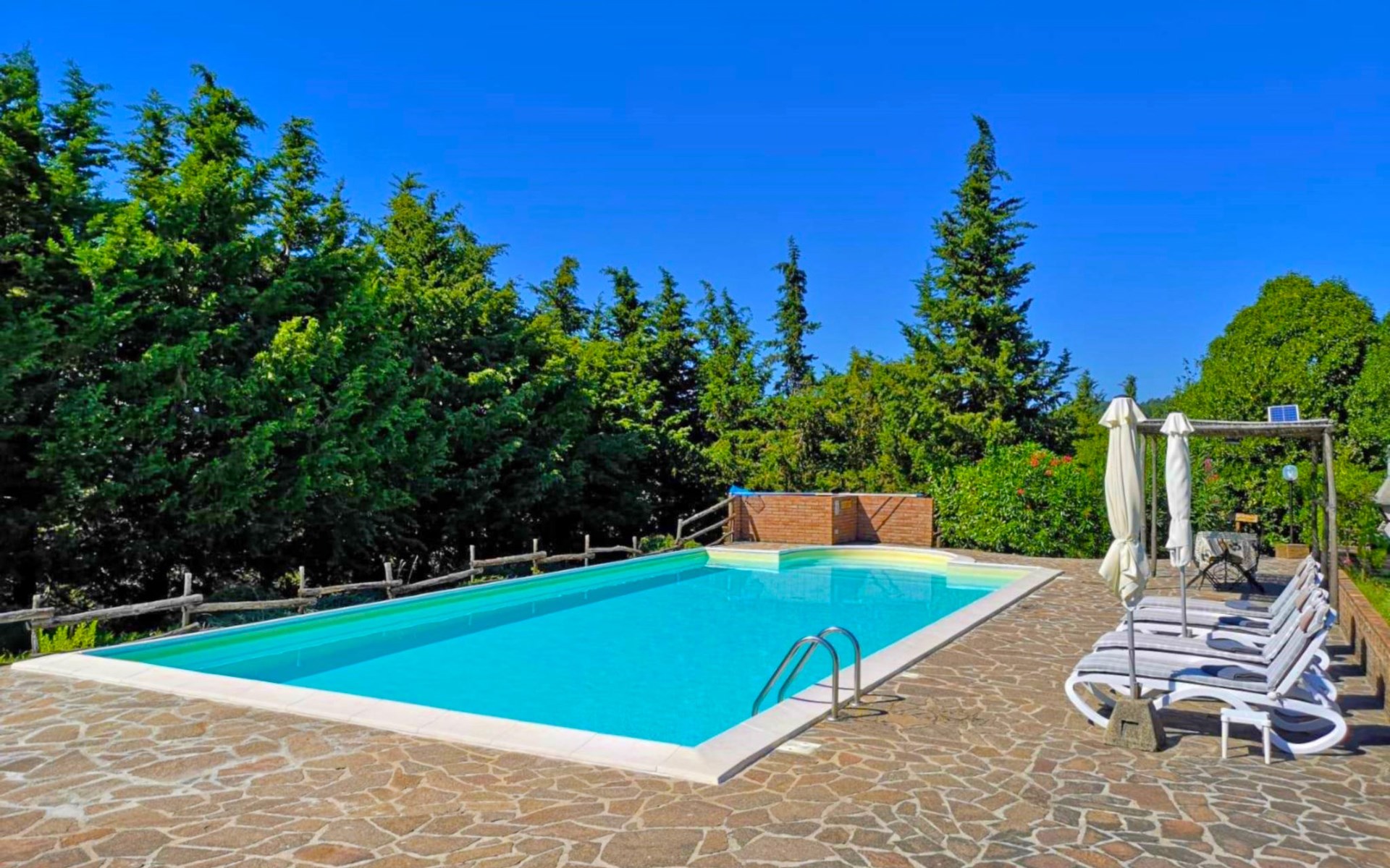 Auf einem Hügel gelegen, bietet dieses hübsche Haus seinen Gästen einen weiten Blick auf die grünen und bewaldeten Hügel der Umgebung. Freistehender Landsitz "Al Vento", 420 m.ü.M.. 9.9 km vom Zentrum von Monteverdi Marittimo, 22 km vom Zentrum von Pomarance, 46 km vom Zentrum von Volterra, sonnige Lage auf einem Hügel, 30 km vom Meer, im Grünen. Zur Alleinbenutzung: Garten 2'000 m2 (nicht eingezäunt), Schwimmbad (12 x 6 m, 150 cm tief, saisonale Verfügbarkeit: 04.Apr. - 23.Okt.). Aussendusche, Gartenmöbel, Grill. Im Hause: Zentralheizung, Heizung vor Ort zu zahlen, Heizung nur verfügbar von 01.Nov. - 04.Apr.. Parkplatz auf dem Grundstück. Einkaufsgeschäft 3 km, Supermarkt 3 km, Bushaltestelle 500 m, Bahnstation "Donoratico" 30 km, Sandstrand "San Vincenzo" 37 km, Thermalbad "Venturina Terme" 35 km. Nahe gelegene Sehenswürdigkeiten: Castagneto Carducci 25 km, Suvereto 26 km, Campiglia Marittima 37 km, Bolgheri 37 km, Follonica 45 km, Populonia 48 km.