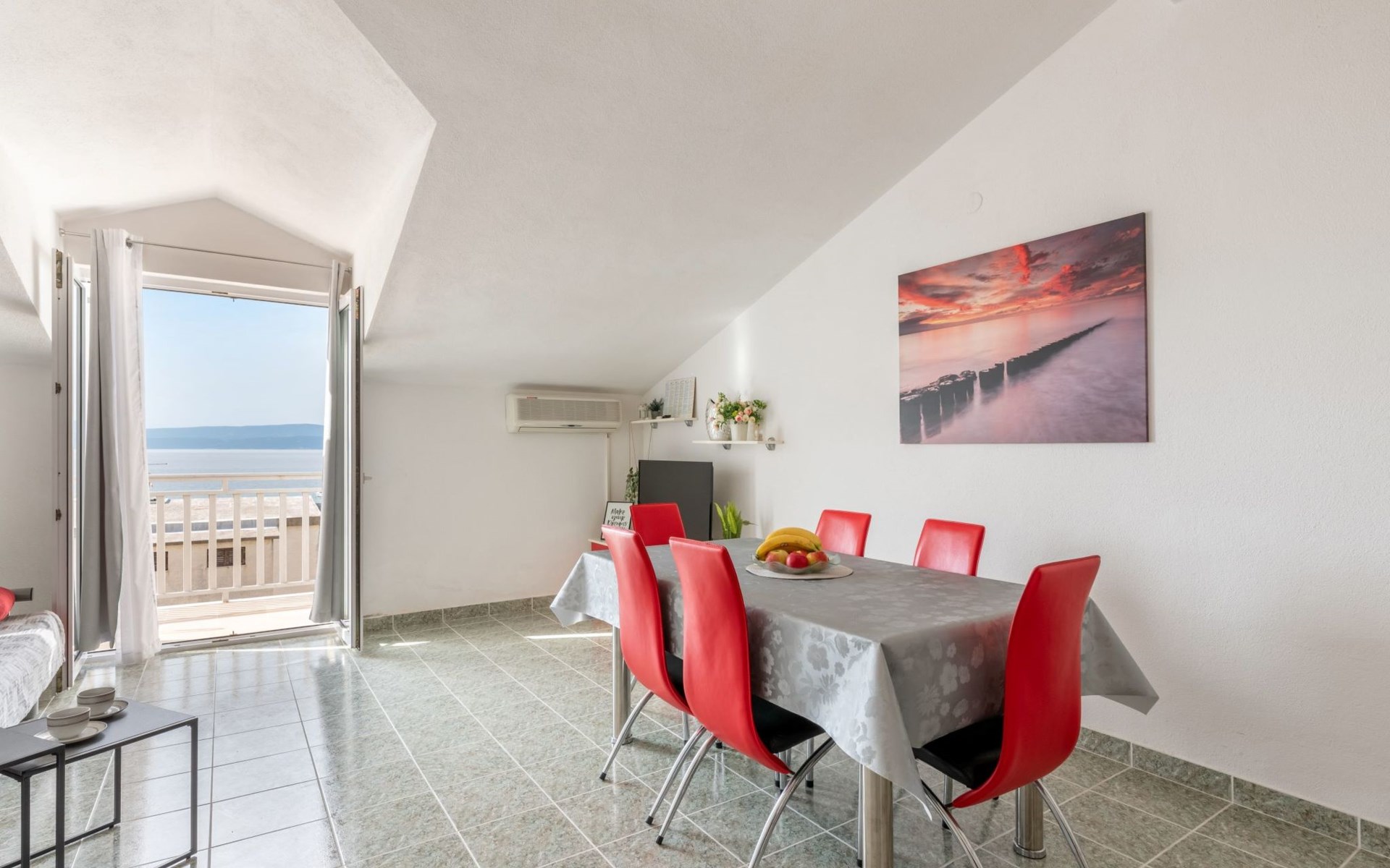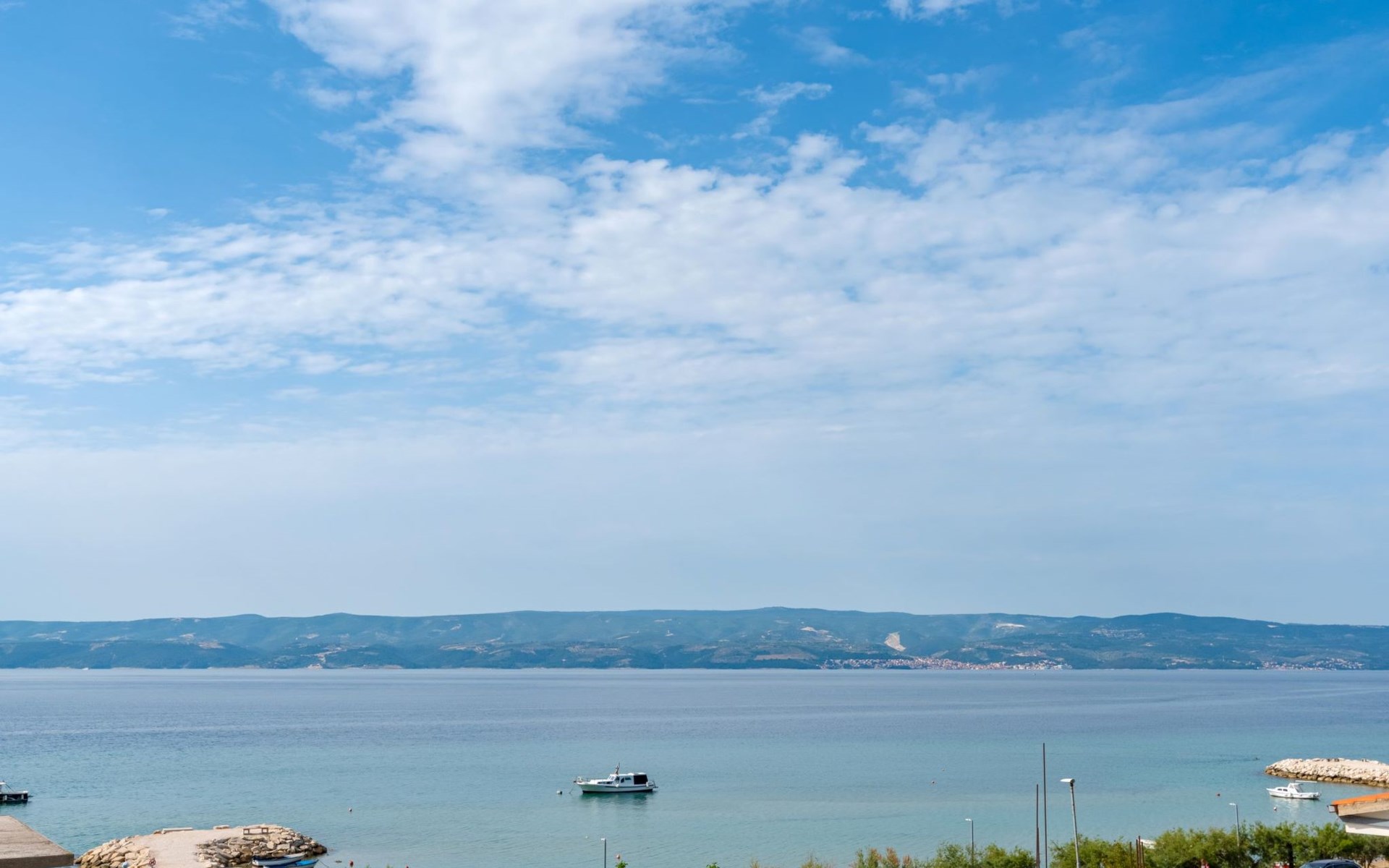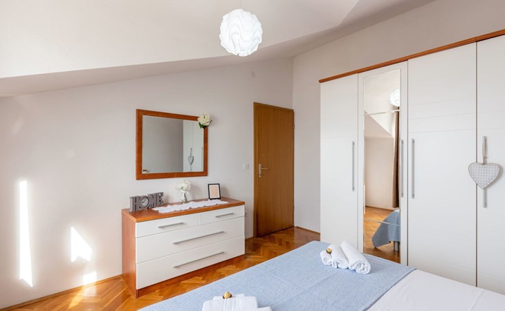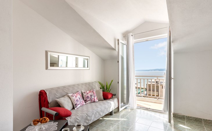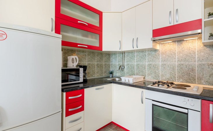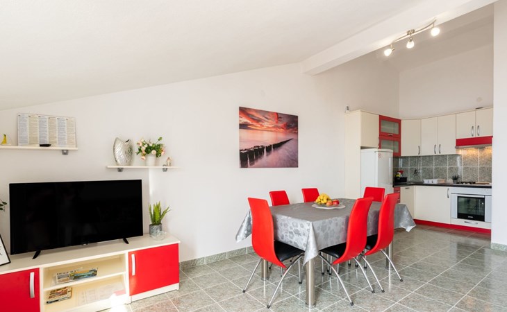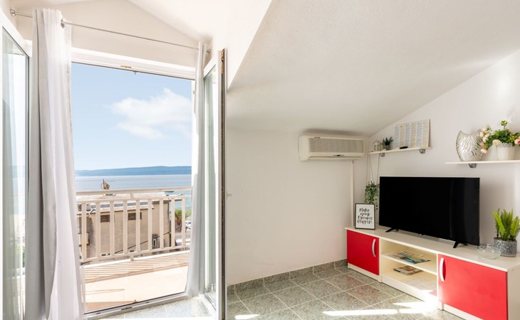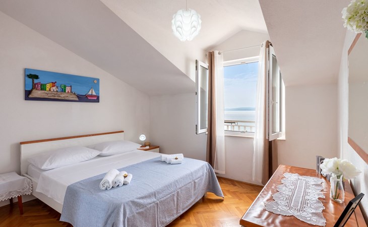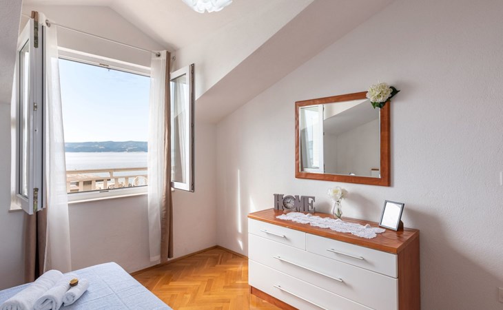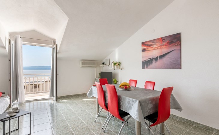 Duće 2 km von Omiš: Mehrfamilienhaus. Ruhige, sonnige Lage, 75 m vom Meer, 75 m vom Strand. Im Hause: Internetzugang. Parkplatz beim Haus auf dem Grundstück. Einkaufsgeschäft, Restaurant 200 m, Bushaltestelle 100 m, Sandstrand 75 m. Tennis 1 km.