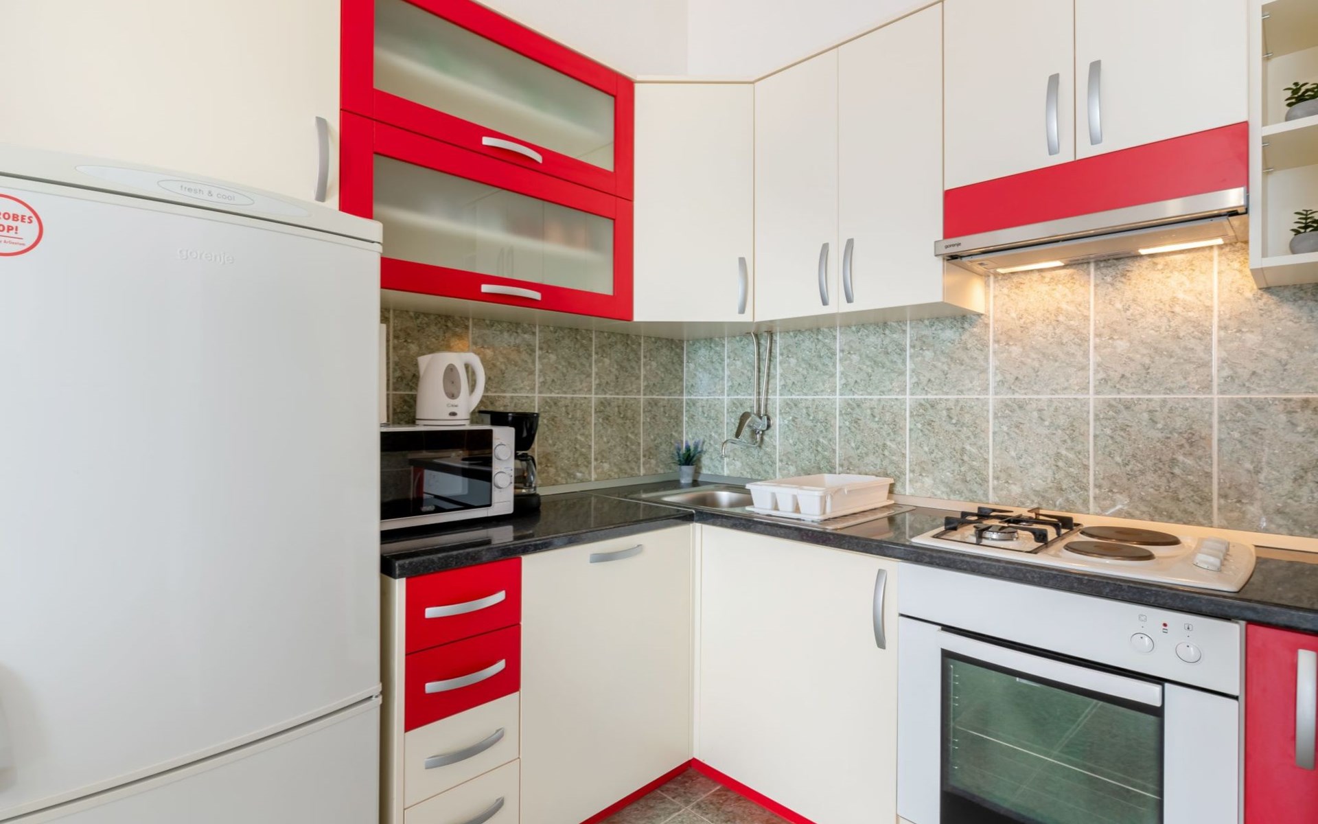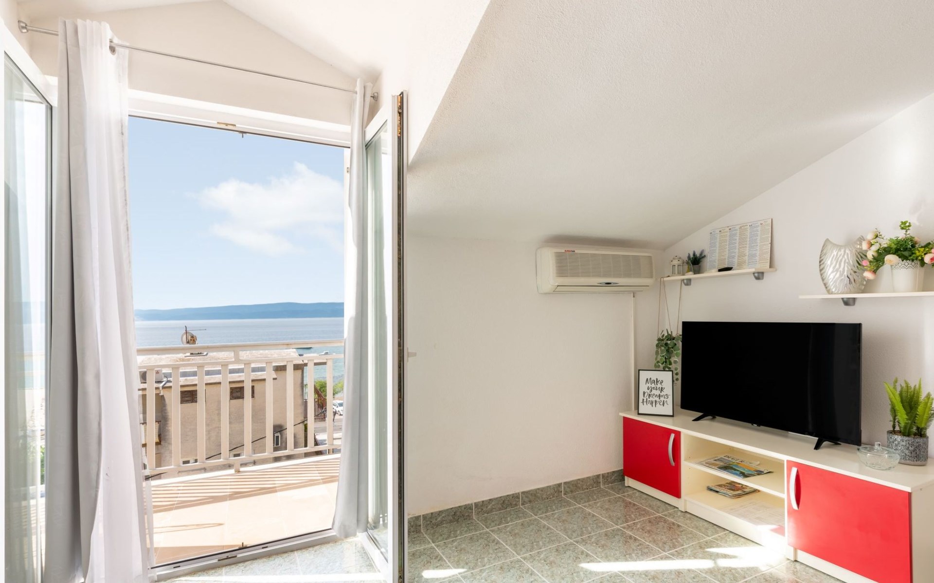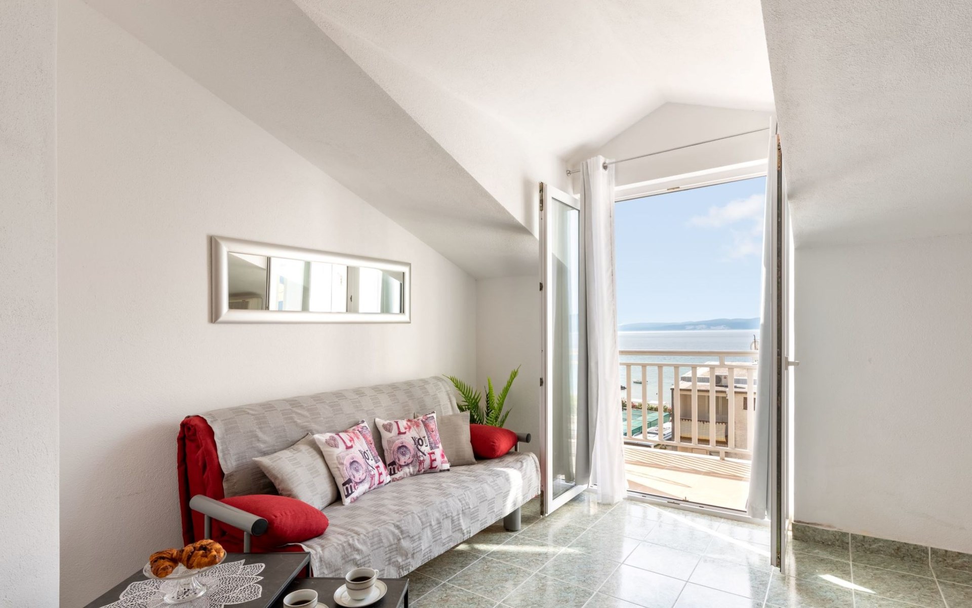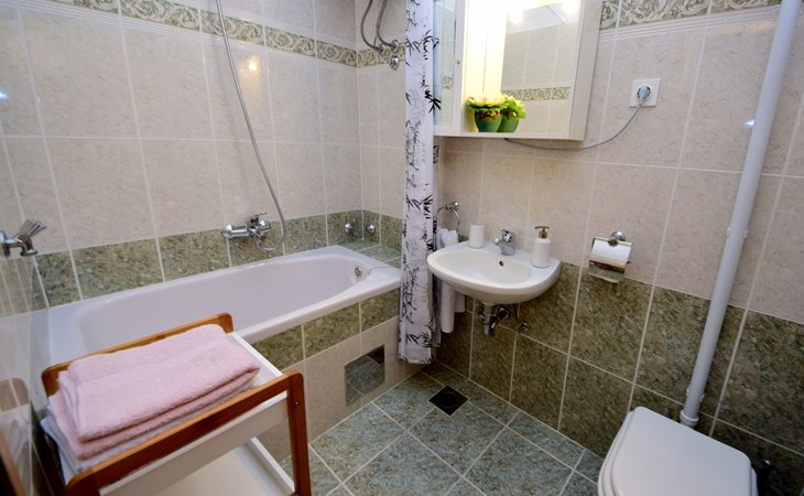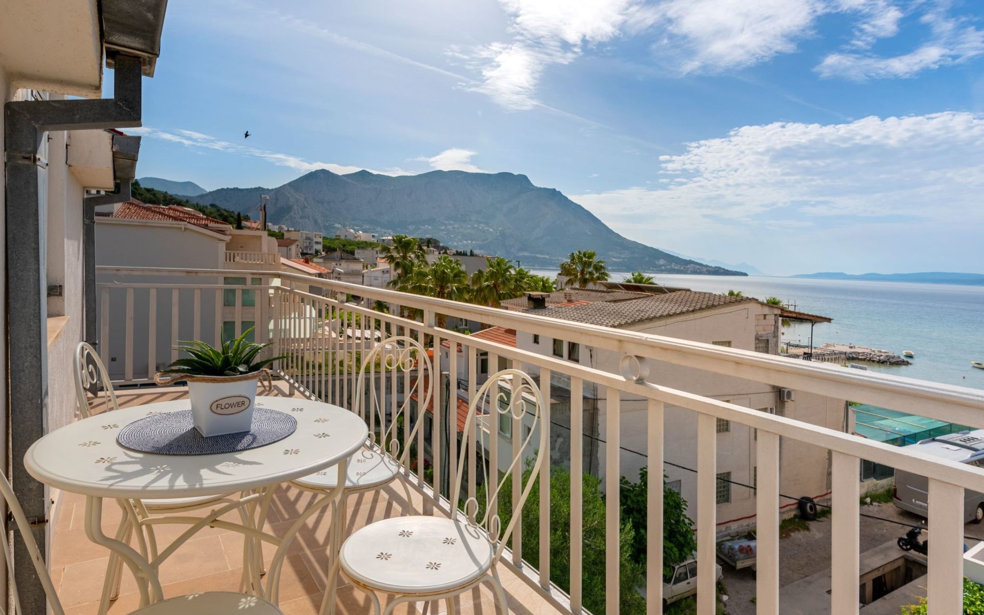 Duće 2 km von Omiš: Mehrfamilienhaus. Ruhige, sonnige Lage, 75 m vom Meer, 75 m vom Strand. Im Hause: Internetzugang. Parkplatz beim Haus auf dem Grundstück. Einkaufsgeschäft, Restaurant 200 m, Bushaltestelle 100 m, Sandstrand 75 m. Tennis 1 km.