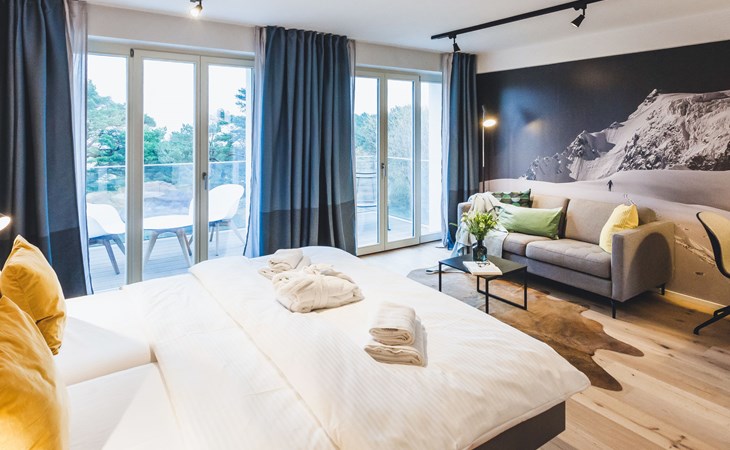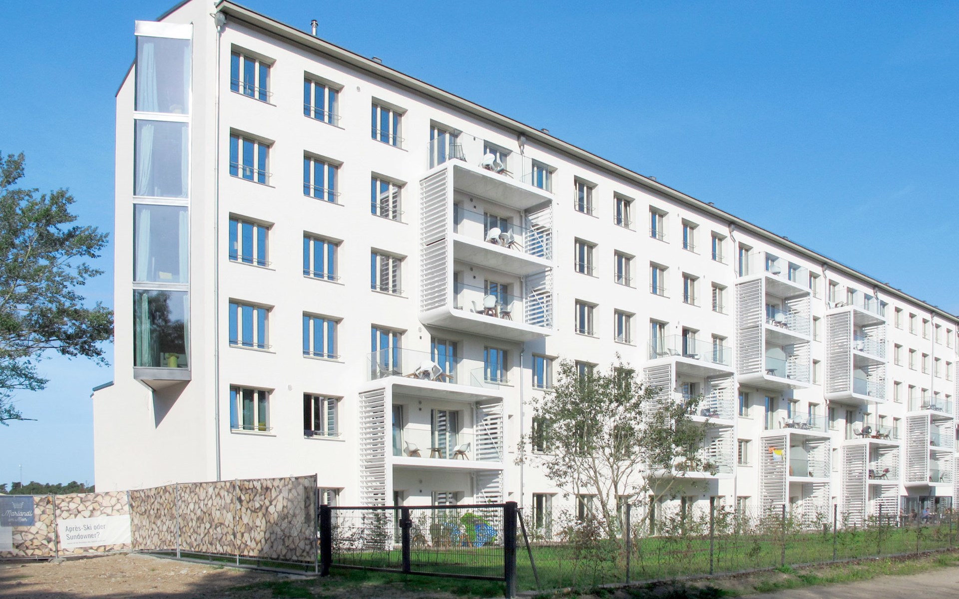 Moderne Ferienanlage "Mariandl am Meer", auf 6 Stockwerken, Baujahr 2019. 128 Wohnungen in der Residenz. Im Ortsteil Prora, 4 km vom Zentrum von Binz, 12 km vom Zentrum von Bergen, 38 km vom Zentrum von Stralsund, 100 m vom Meer, direkter Zugang zum Strand. Zur Mitbenutzung: Schwimmbad, Hallenbad (10 x 6 m, saisonale Verfügbarkeit: 01.Jan. - 31.Dez.). In der Anlage: Empfang, Restaurant, Sauna, Wellnessbereich, Fahrstuhl, Einstellraum für Fahrräder, Zentralheizung. Frühstück möglich (extra). Parkplatz (beschränkte Anzahl, extra) auf dem Grundstück, Gemeinschaftsgarage (extra). Einkaufsgeschäft 1.2 km, Supermarkt 4 km, Bushaltestelle "Prora, Südstrasse" 1.7 km, Sandstrand 100 m. Golfplatz (18 Loch) 6 km. Restaurant mit eingeschränkten Öffnungszeiten.