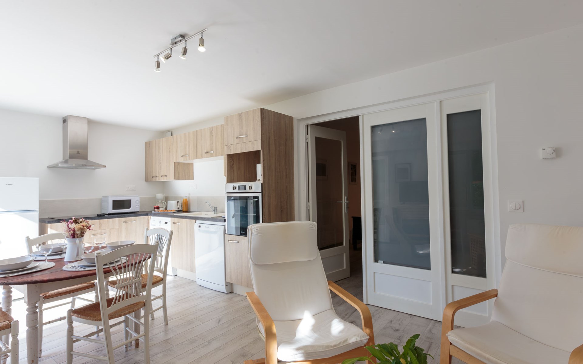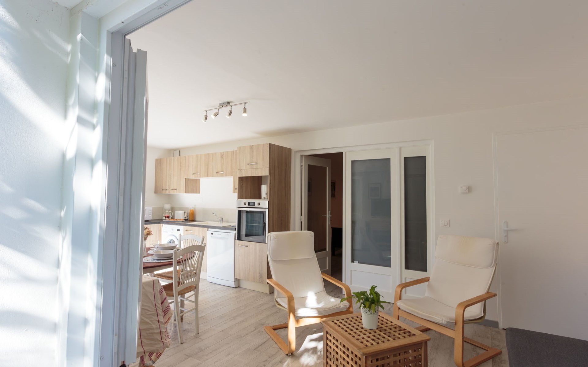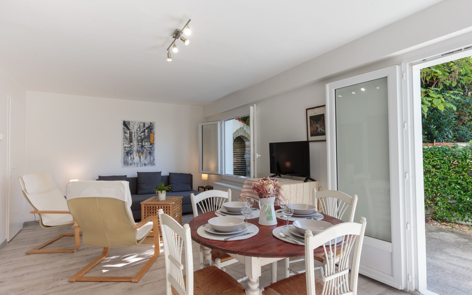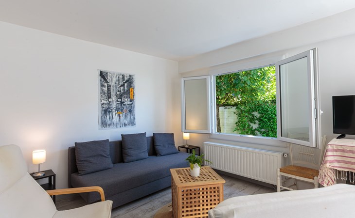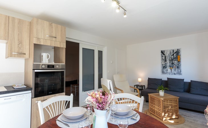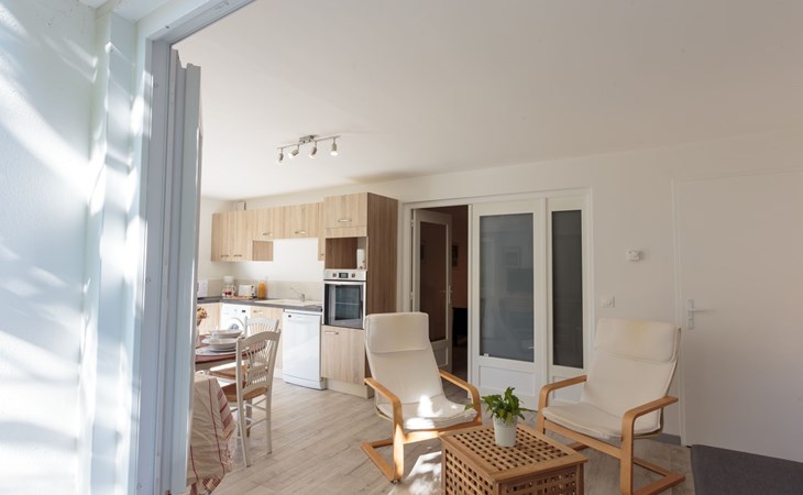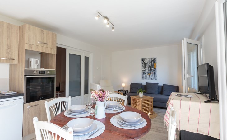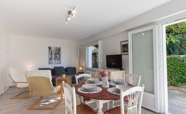 Saint Palais sur Mer 5 km von Royan: Dreifamilienhaus "Les Mâts", renoviert im Jahre 2019. 3 Wohnungen im Ferienhaus. Im Ortszentrum von Saint Palais sur Mer, zentrale, belebte Lage in einem Wohnquartier, 150 m vom Meer, 500 m vom See, 150 m vom Strand. Öffentliche Parkplätze auf der Strasse. Einkaufsgeschäft 100 m, Supermarkt 350 m, Restaurant 100 m, Bar 200 m, Bäckerei 250 m, Café, Fahrradverleih 200 m, Bushaltestelle "du Rha" 170 m, Bahnstation "Royan" 6 km, Sandstrand "Bureau - Saint Palais sur Mer" 150 m, Hallenbad 6 km, Thermalbad "Thalassothérapie Thalazur Royan" 5 km, See Saint Palais sur Mer 500 m. Sporthafen 6 km, Golfplatz (18 Loch) 2 km, Surfschule 300 m, Segelschule 900 m, Tennis 1.5 km, Tennishalle 1.5 km, Minigolf 4 km, Reitstall 3 km, Radweg 100 m, Kinderspielplatz 500 m. Nahe gelegene Sehenswürdigkeiten: Embarcadère Royan - Le Verdon 6 km, Zoo de La Palmyre 9 km, Hippodrome - La Palmyre 10 km, Luna Park (Juillet - Août) 13 km, Centre aquatique Iléo - Ile d'Oléron 40 km, Fort Boyard - Fouras 50 km. Bitte beachten: Die Schlüsselübergabe findet bei der Agentur Interhome in Vaux sur mer statt, 3 km. Weitere Unterkünfte sind buchbar.