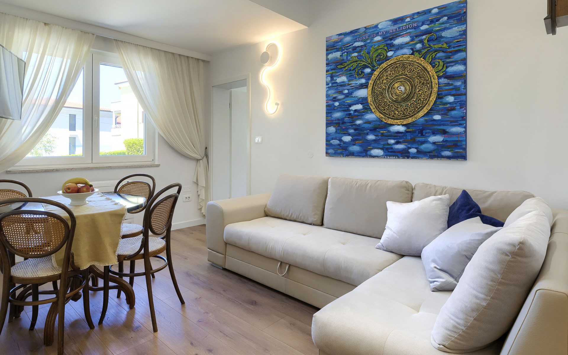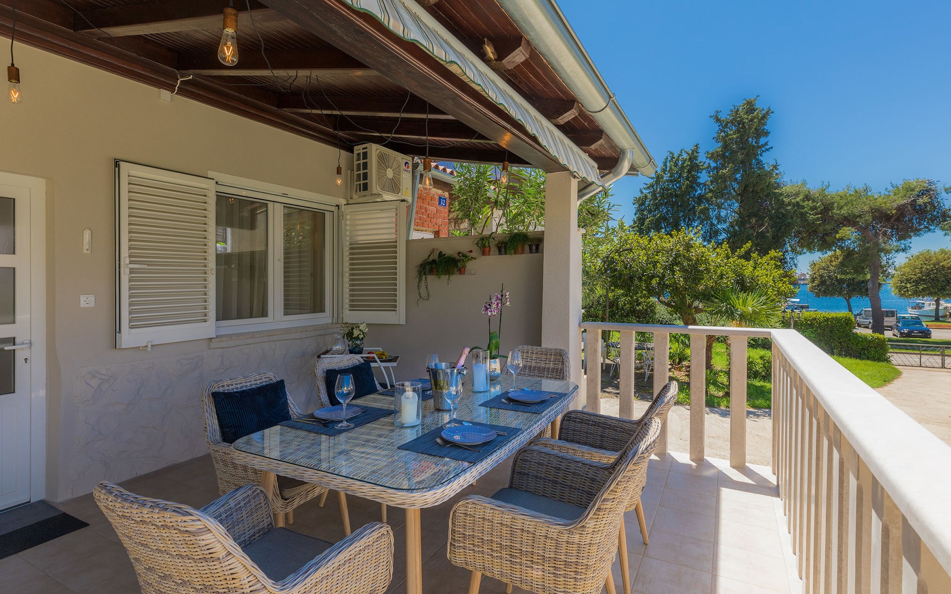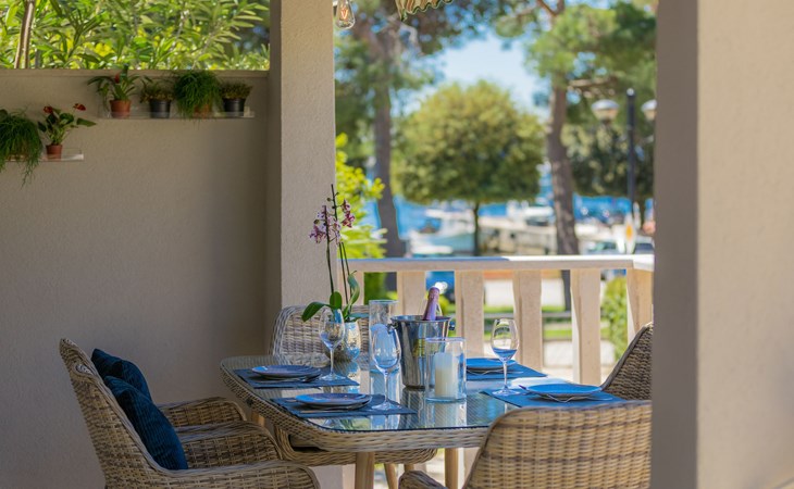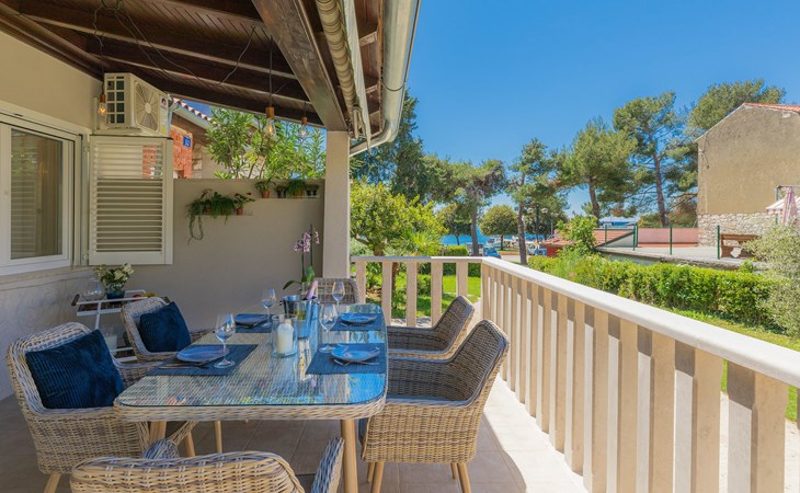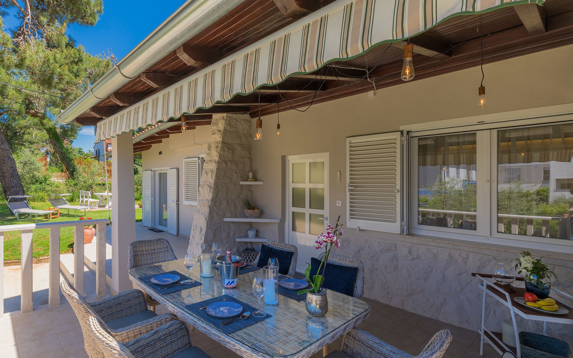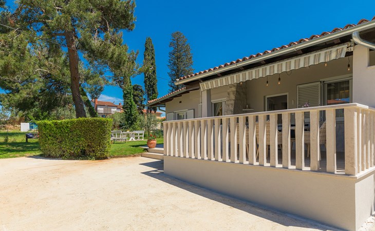 Schönes Doppelhaus "Punta 2", renoviert im Jahre 2021. Im Ortsteil Punta, 600 m vom Zentrum von Umag, ruhige, sonnige Lage, 70 m vom Meer, 300 m vom Strand, in einer Sackgasse. Zur Alleinbenutzung: Grundstück 350 m2 (eingezäunt), Garten mit Rasen. Aussendusche, Gartenmöbel, Grill. Im Hause: Internetzugang, Einstellraum für Fahrräder, Waschmaschine. Parkplatz beim Haus auf dem Grundstück. Einkaufsgeschäft 200 m, Restaurant 50 m, Bushaltestelle 2 km, Bahnstation 33 km, Kieselstrand, Felsstrand, Strandbad 300 m. Golfplatz (18 Loch) 9 km, Tennis 500 m, Sportzentrum 800 m. Jugendgruppen nur auf Anfrage.