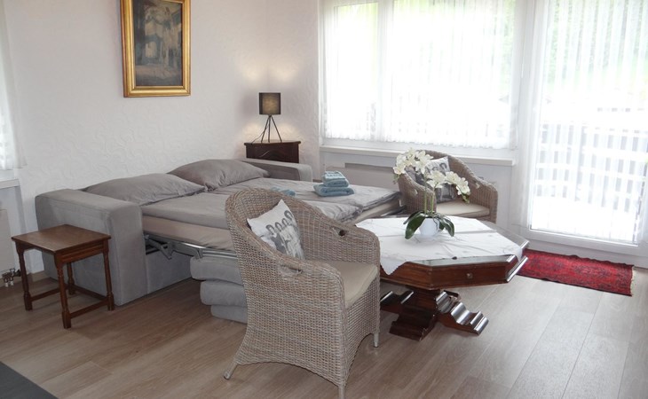 2-Zimmerwohnung, 3. Stock: Wohn-/Esszimmer mit Schlafsofa, Küche, 1 Doppelzimmer, Badezimmer