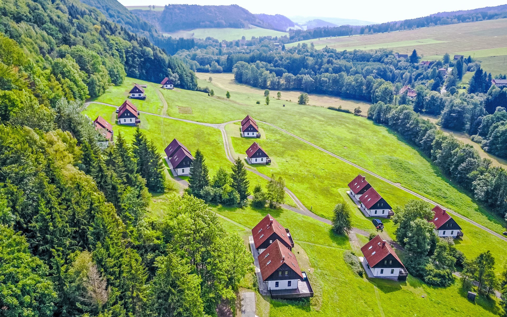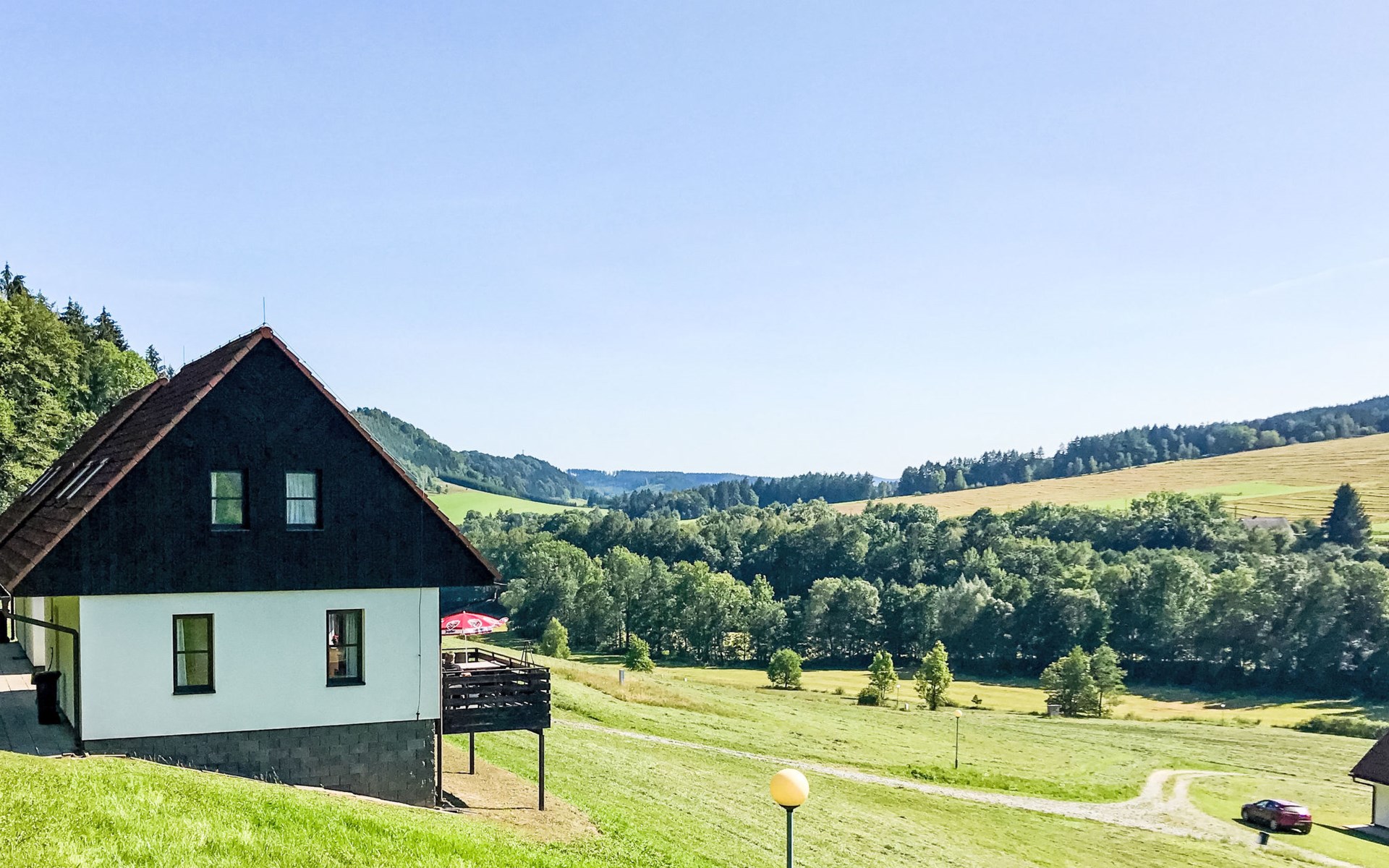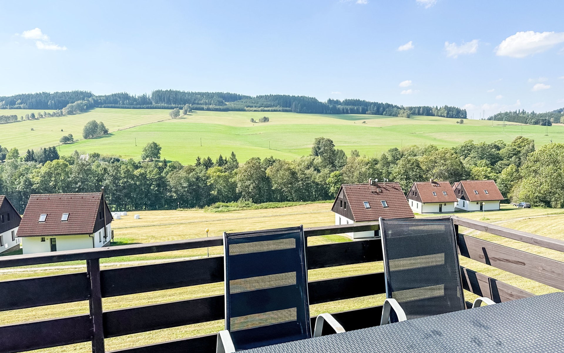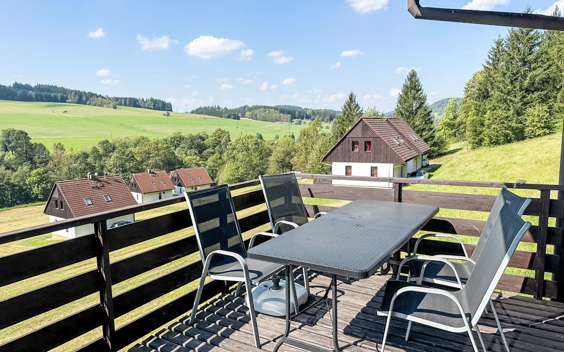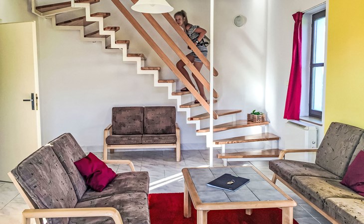 Stárkov 18 km von Náchod: Ferienanlage "Stárkov", 450 m.ü.M., einseitig angebaut, Baujahr 1997, umgeben von Wiesen. 22 Häuser im Ferienresort. Am Ortsrand, sonnige, erhöhte Lage am Hang, direkt am Waldrand, 24 km vom See, 10 km vom Skigebiet, im Grünen. Zur Mitbenutzung: Grundstück 10 ha, Wiese, Teich, Schwimmbad (8 x 4 m, 150 cm tief, saisonale Verfügbarkeit: 15.Jun. - 16.Sep.). Tischtennis, Volleyball, Badminton, Volleyballfeld, Beachvolleyball, Sitzplatz, Grill, Feuerstelle, Kinderspielplatz (Rutschbahn, Schaukel, Sandkasten). In der Anlage: Empfang, Aufenthaltsraum, Bistro, Massage (extra). Billard, Spielzimmer, Tischfussball, Trampolin, Kiosk, Einstellraum für Fahrräder, Wäscherei (extra), Fahrradverleih. Wäschewechsel (zusätzlich extra). Handtuchwechsel (zusätzlich extra). Wohnungsreinigung möglich (extra). Brötchenservice möglich auf Anfrage. Einkaufsservice vor Anreise möglich. Zufahrt bis 200 m zum Haus. Parkplatz beim Haus. Lebensmittelgeschäft 1 km, Supermarkt 8 km, Restaurant 1 km, Café 10 m, Bushaltestelle "Stárkov,mlékárna" 280 m, Bahnstation "Žďár nad Metují" 4.6 km, Hallenbad 18 km. Golfplatz (9 Loch) 26 km, Segelschule 26 km, Tennis 500 m, Minigolf 10 m, Reitstall 10 m, Wanderwege ab Haus, Radweg, Skilift 6 km, Skischule 17 km, Langlaufloipe 100 m, Eisfeld 8 km, Kinderspielplatz 10 m. Nahe gelegene Sehenswürdigkeiten: Adršpašsko-teplické skály 15 km, Náchod 17 km, Broumovské stěny 17 km, Ratibořice a Babiččino údolí 22 km, Broumov 24 km, Relaxpark Pec pod Sněžkou 50 km. Bekannte Skigebiete sind gut erreichbar: Radvanice 10 km, Petříkovice 17 km, Mladé Buky 36 km. Bekannte Seen in der Umgebung sind gut erreichbar: vodní nádrž Rozkoš 26 km. Bitte beachten: geeignet für Familien, geeignet für Senioren Babyausstattung auf Anfrage (inkl.). Das Foto ist nur ein Hausbeispiel. Alle Häuser/Wohnungen sind individuell eingerichtet.