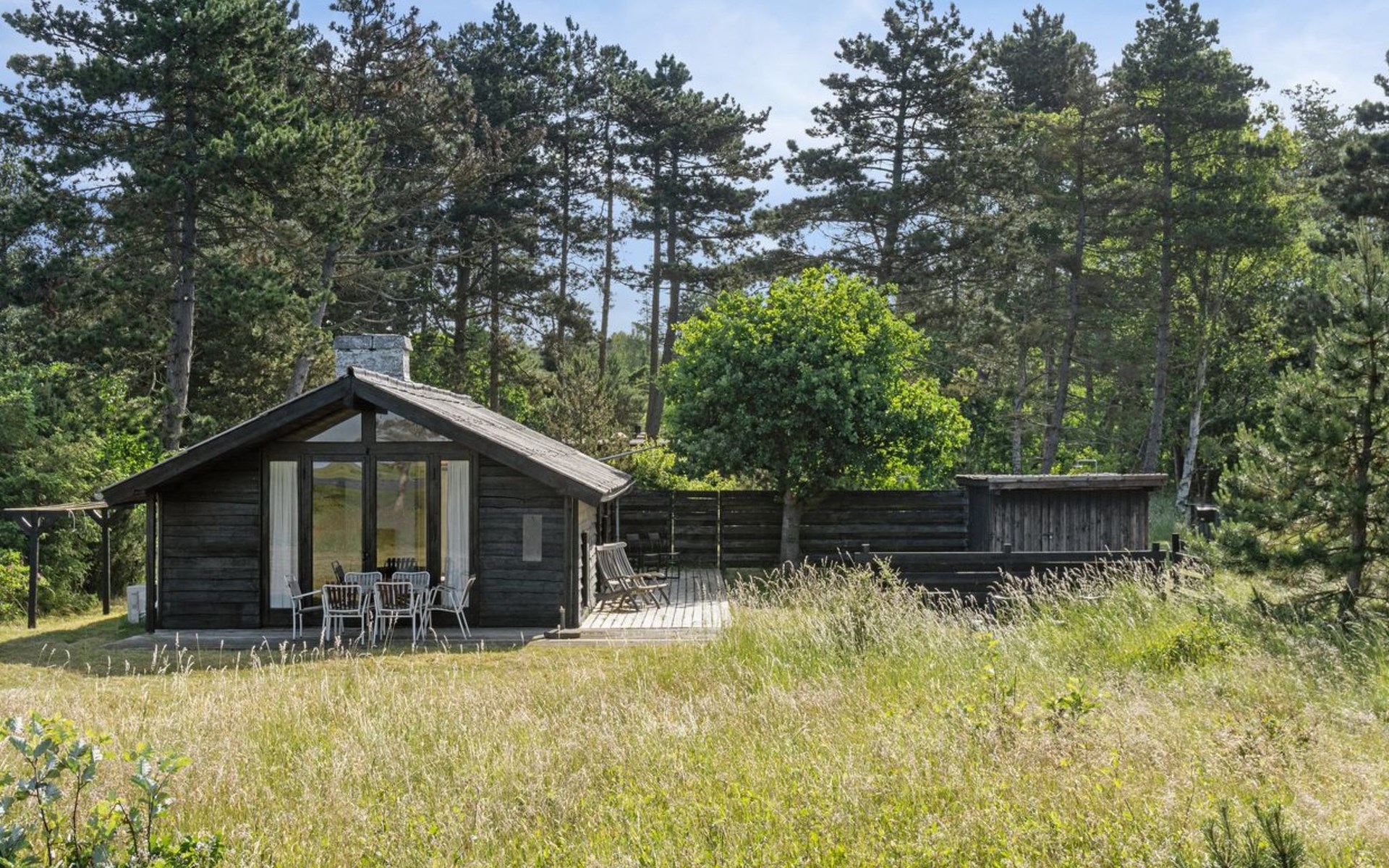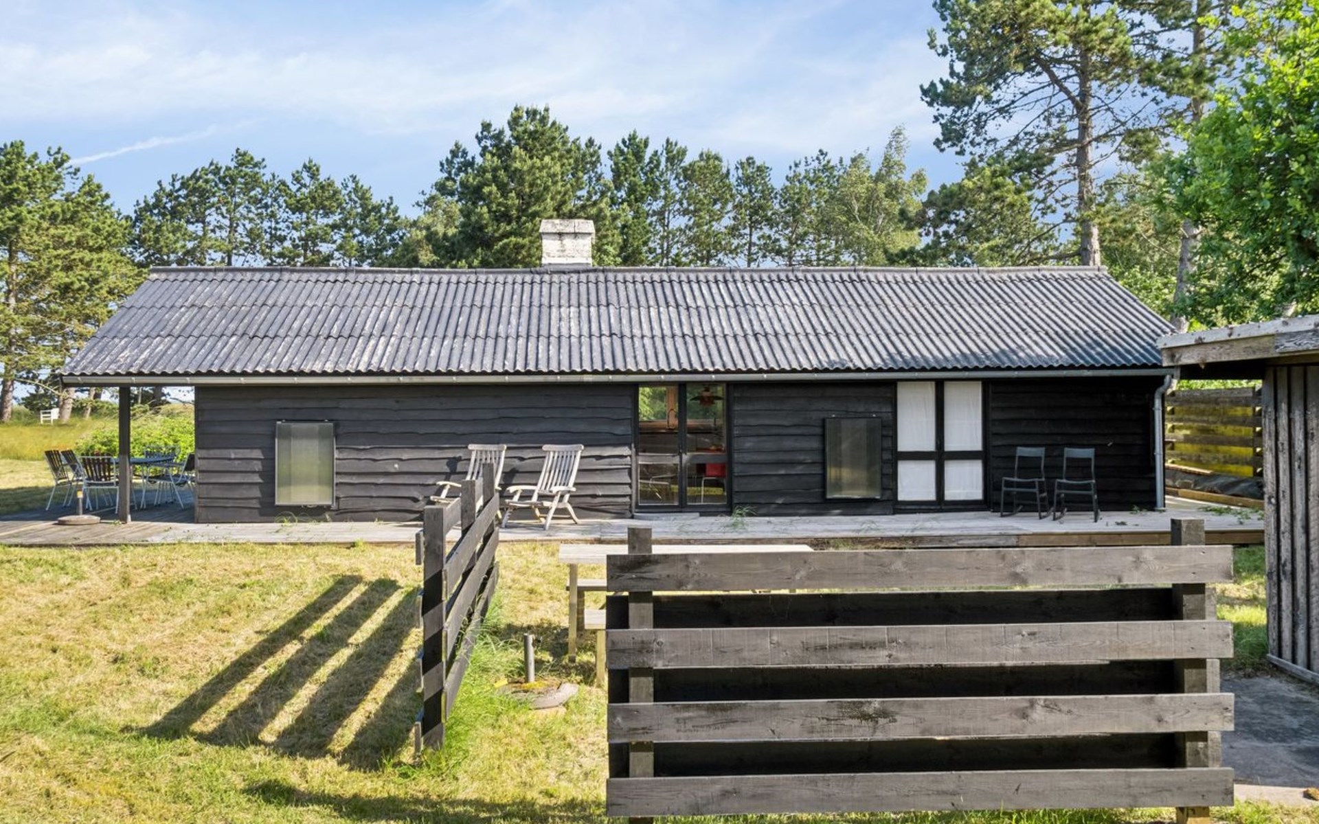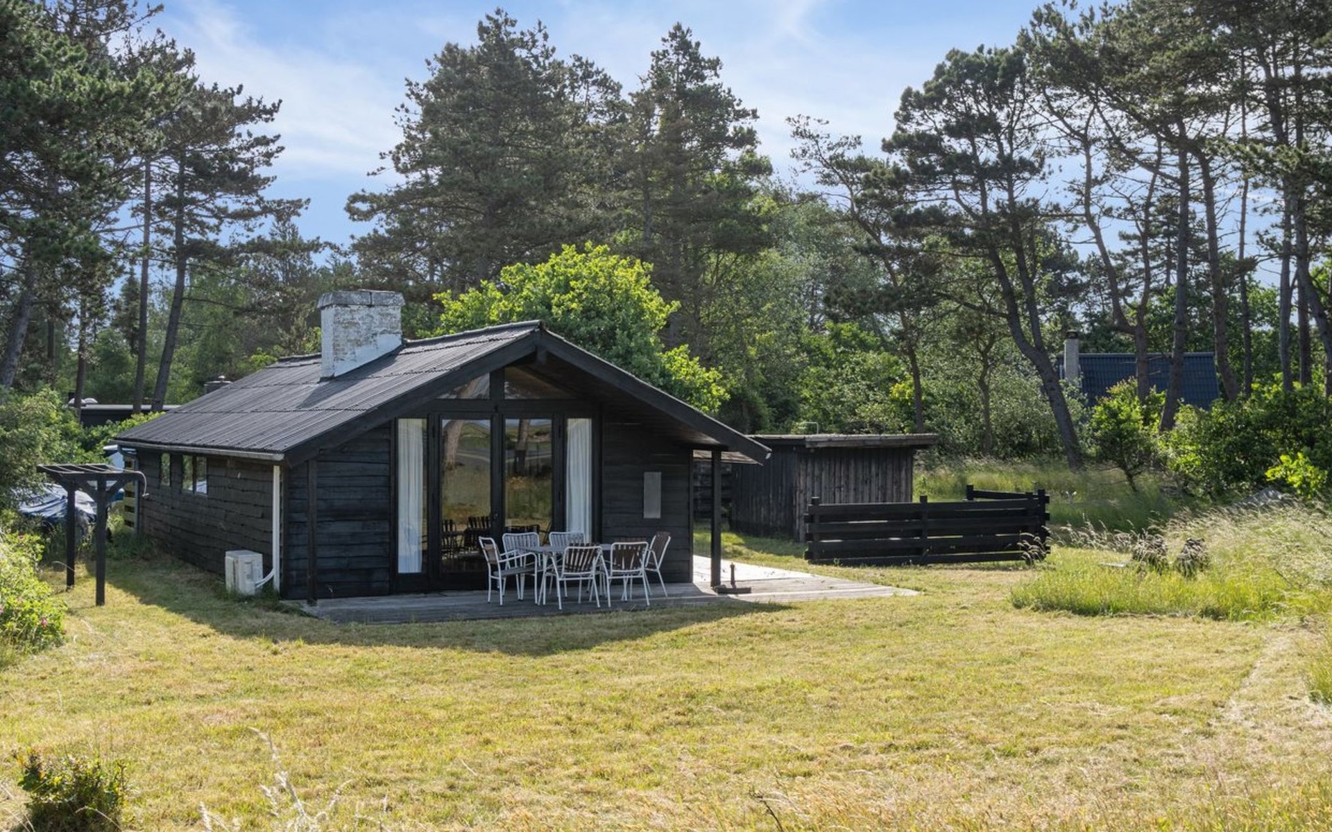 Einfamilienhaus, Baujahr 1967. 575 m vom Meer. Zur Alleinbenutzung: naturbelassenes Grundstück 1'525 m2. Terrasse (40 m2), Grill, Parkplatz beim Haus. Lebensmittelgeschäft 4.4 km. Golfplatz 2.9 km. Der Besitzer akzeptiert keine Jugendgruppen.