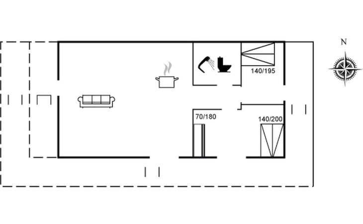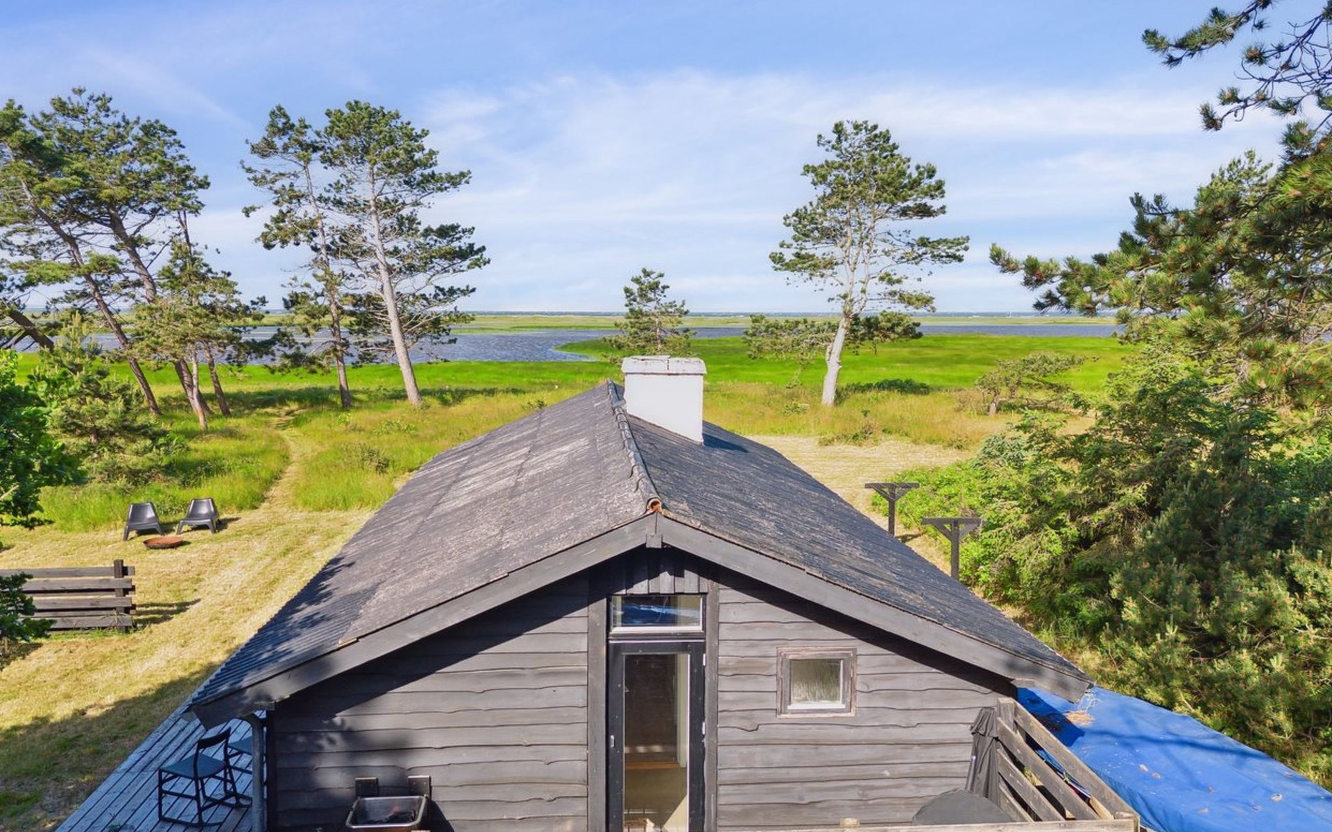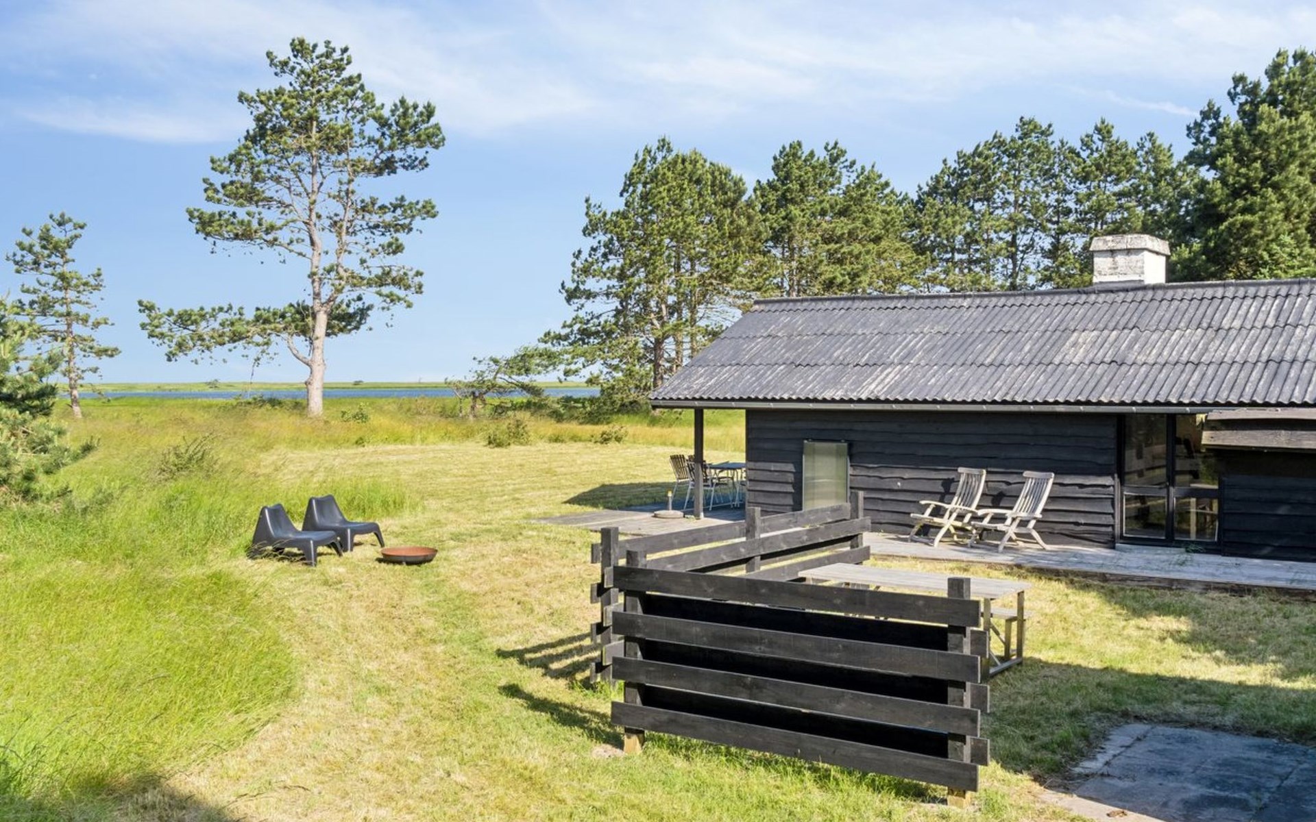 Einfamilienhaus, Baujahr 1967. 575 m vom Meer. Zur Alleinbenutzung: naturbelassenes Grundstück 1'525 m2. Terrasse (40 m2), Grill, Parkplatz beim Haus. Lebensmittelgeschäft 4.4 km. Golfplatz 2.9 km. Der Besitzer akzeptiert keine Jugendgruppen.
