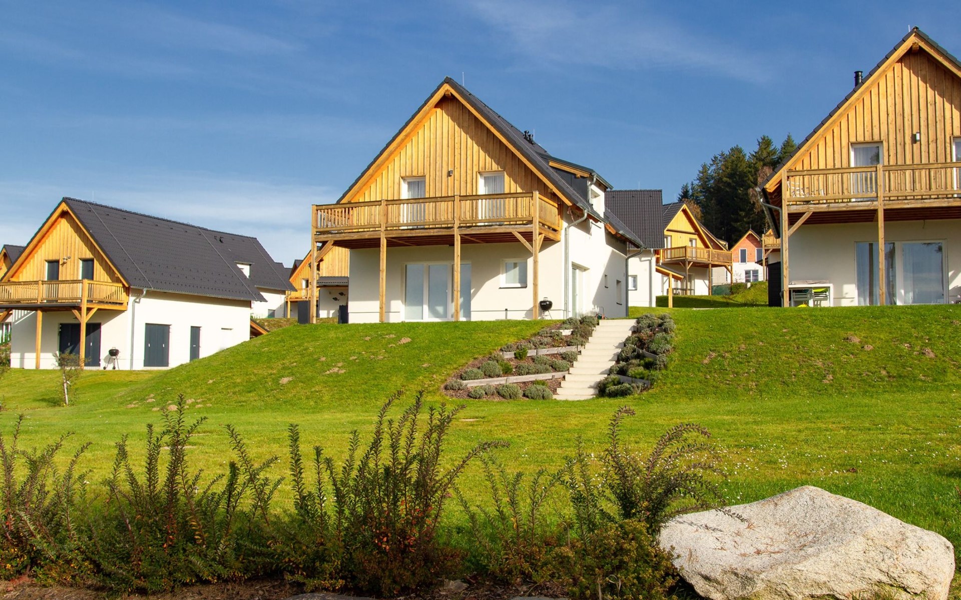 Kinderfreundliche, moderne Ferienanlage "Lakeside Village". 45 Häuser im Ferienresort. 10 Wohnungen in der Residenz. Ausserhalb des Ortes, ruhige, sonnige Lage, direkt am See. Zur Mitbenutzung: Grundstück. Privatstrand, Beachvolleyball, Feuerstelle, Kinderspielplatz. Zur Alleinbenutzung: Gartenmöbel, Grill. In der Anlage: Empfang, Bar, Bistro, Sauna, Massage, Sprudelbad (alles extra), Kiosk, Fahrradverleih. Zur Verfügung: Boot (extra). Parkplatz beim Haus. E-Ladestation. Bushaltestelle "Frymburk Vřesná, rozcestí" 3.5 km, Badesee "Lipno". Reitstall 500 m, Eisfeld 11 km. Nahe gelegene Sehenswürdigkeiten: Aquaworld, Marina Lipno, Bobová dráha, Lanový park, Bikepark (Lipno) 15 km, Český Krumlov (UNESCO) 35 km. Bekannte Skigebiete sind gut erreichbar: Frymburk 5 km, Kramolin 15 km, Sternstein 25 km, Hochficht, Sterngartl 40 km. Wandergebiete: Stezka korunami stromů (Lipno) 15 km. Bitte beachten: Babyausstattung auf Anfrage (extra). Angeln (mit Bewilligung), private Bootsanlegestelle. Alle Häuser/Wohnungen sind individuell eingerichtet.
