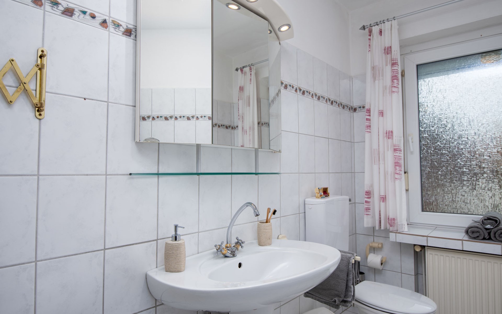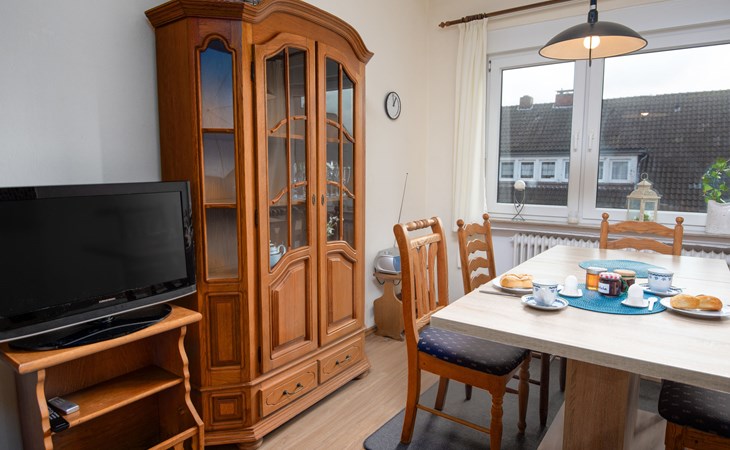 Mehrfamilienhaus. Im Ortszentrum von Norddeich, 500 m vom Meer, 650 m vom Strand, in einer Sackgasse. Im Hause: Einstellraum für Fahrräder, Zentralheizung. Parkplatz beim Haus. Lebensmittelgeschäft 700 m, Supermarkt 800 m, Restaurant 50 m, Bäckerei 10 m, Bushaltestelle 150 m, Bahnstation 900 m, Fähre 950 m, Sandstrand 650 m, Freibad 14 km, Hallenbad. Golfplatz (18 Loch) 8 km, Surfschule 900 m. Postfiliale im Erdgeschoss des Hauses.