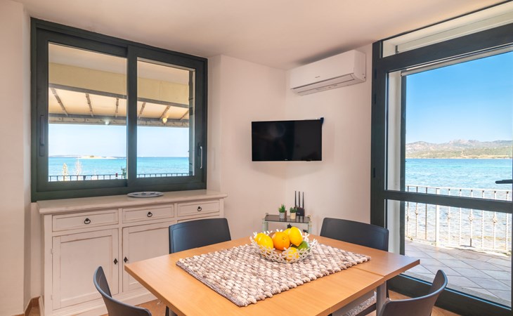 Gemütliches Mehrfamilienhaus. Im Weiler Cannigione, 10 km vom Zentrum von Baja Sardinia, ruhige, sonnige Lage, 10 m vom Meer, direkter Zugang zum Strand. Zur Alleinbenutzung: Aussendusche, öffentliche Parkplätze 50 m auf der Strasse. Supermarkt 1 km, Restaurant, Bar 200 m, Bushaltestelle "Laconia Via Monticorru 33" 350 m, Sandstrand "La Conia" 5 m. Jacht-Hafen 1.5 km. Nahe gelegene Sehenswürdigkeiten: Arzachena 10 km, Porto Cervo 16 km, Palau 13 km, Olbia 25 km. Bitte beachten: Fahrzeug empfohlen.