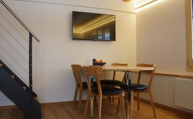 Inklusive Bett-, Küchen- und Badezimmerwäsche, Elektrizität, reservierter Parkplatz, Skiraum, Velounterstand, WiFi und Endreinigung.
