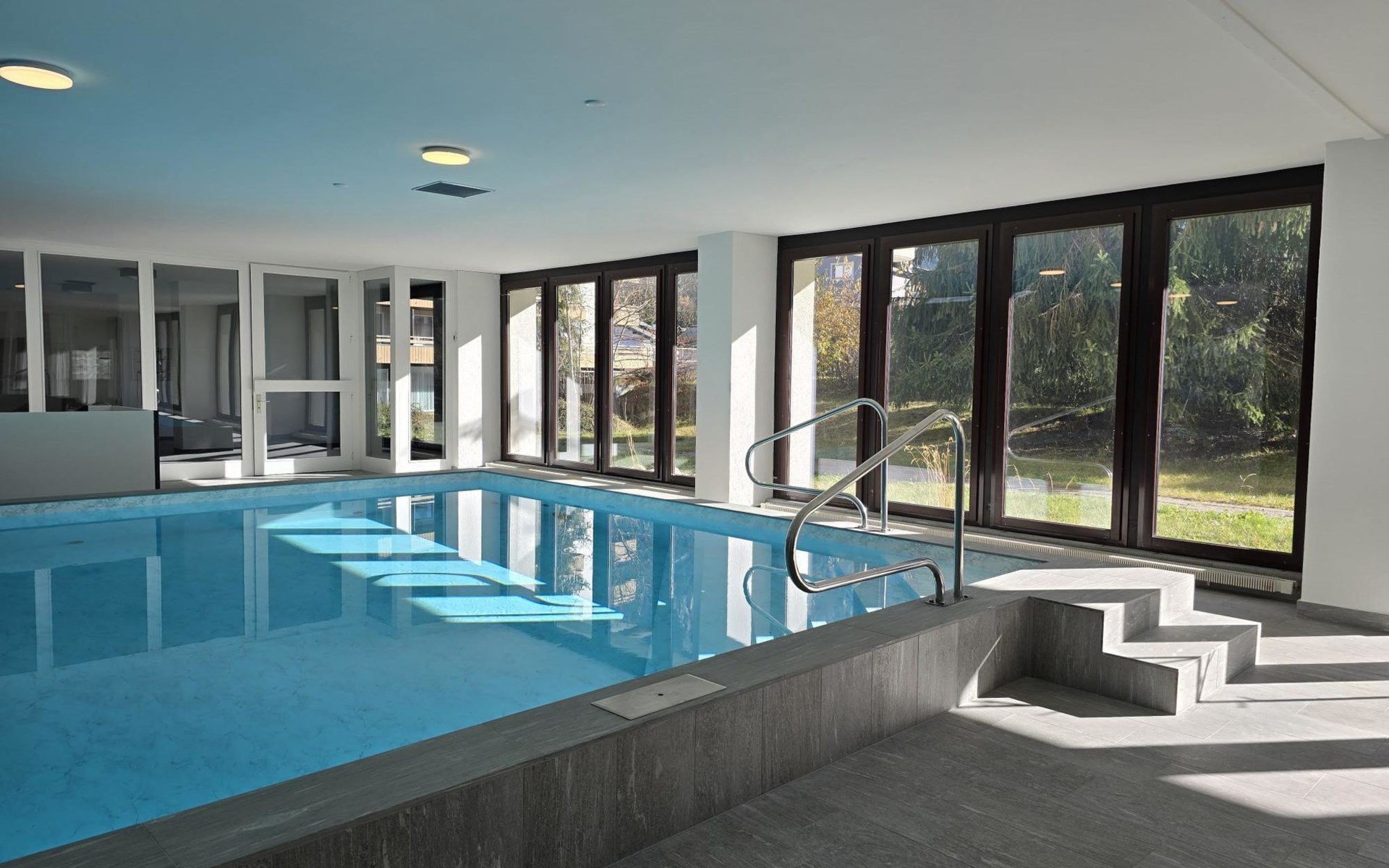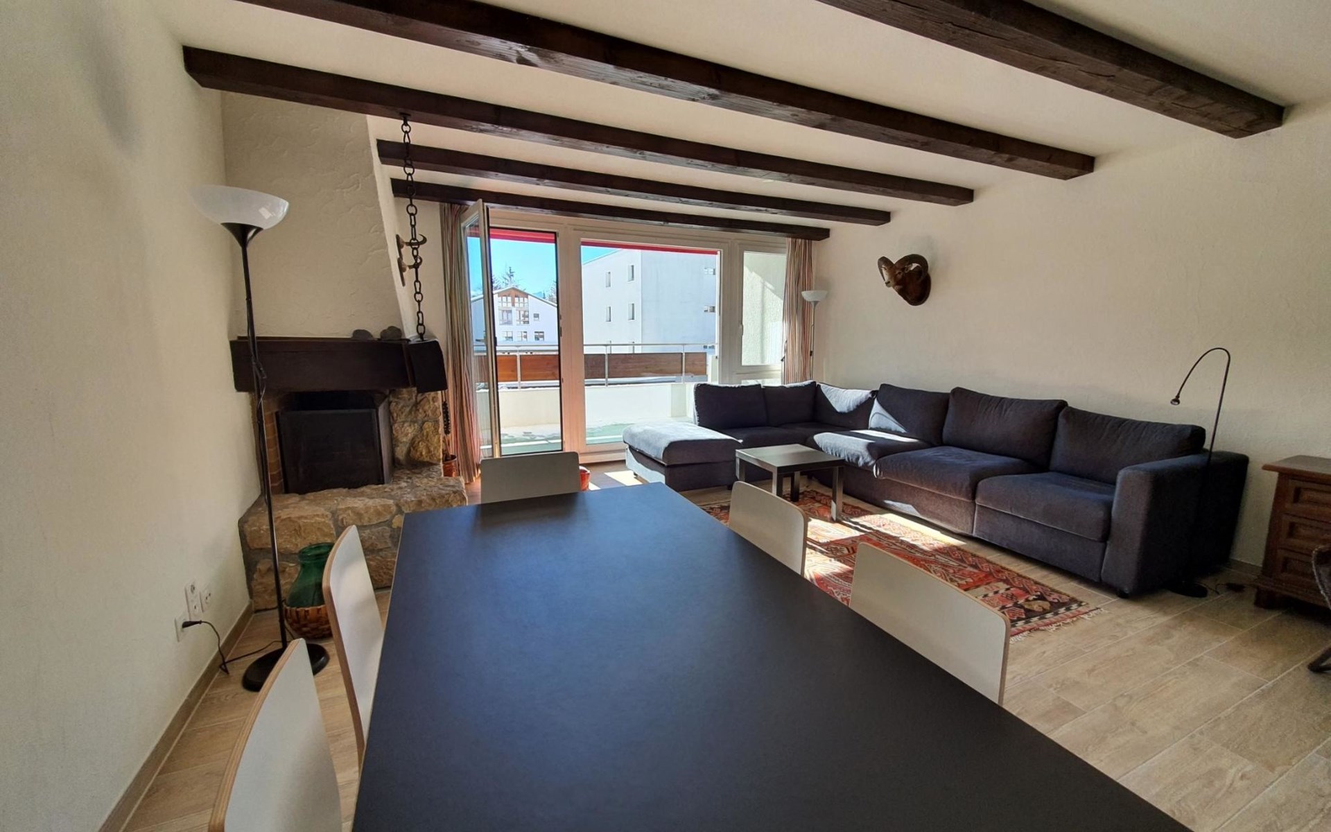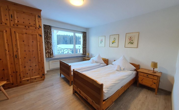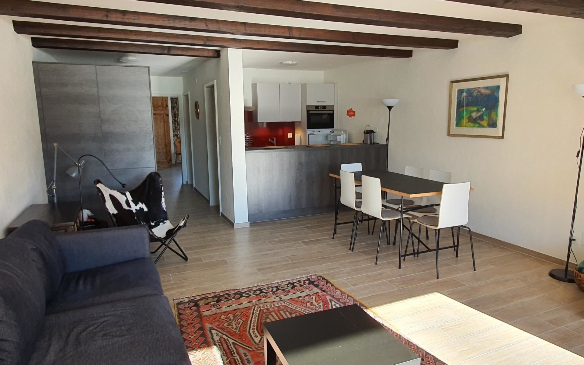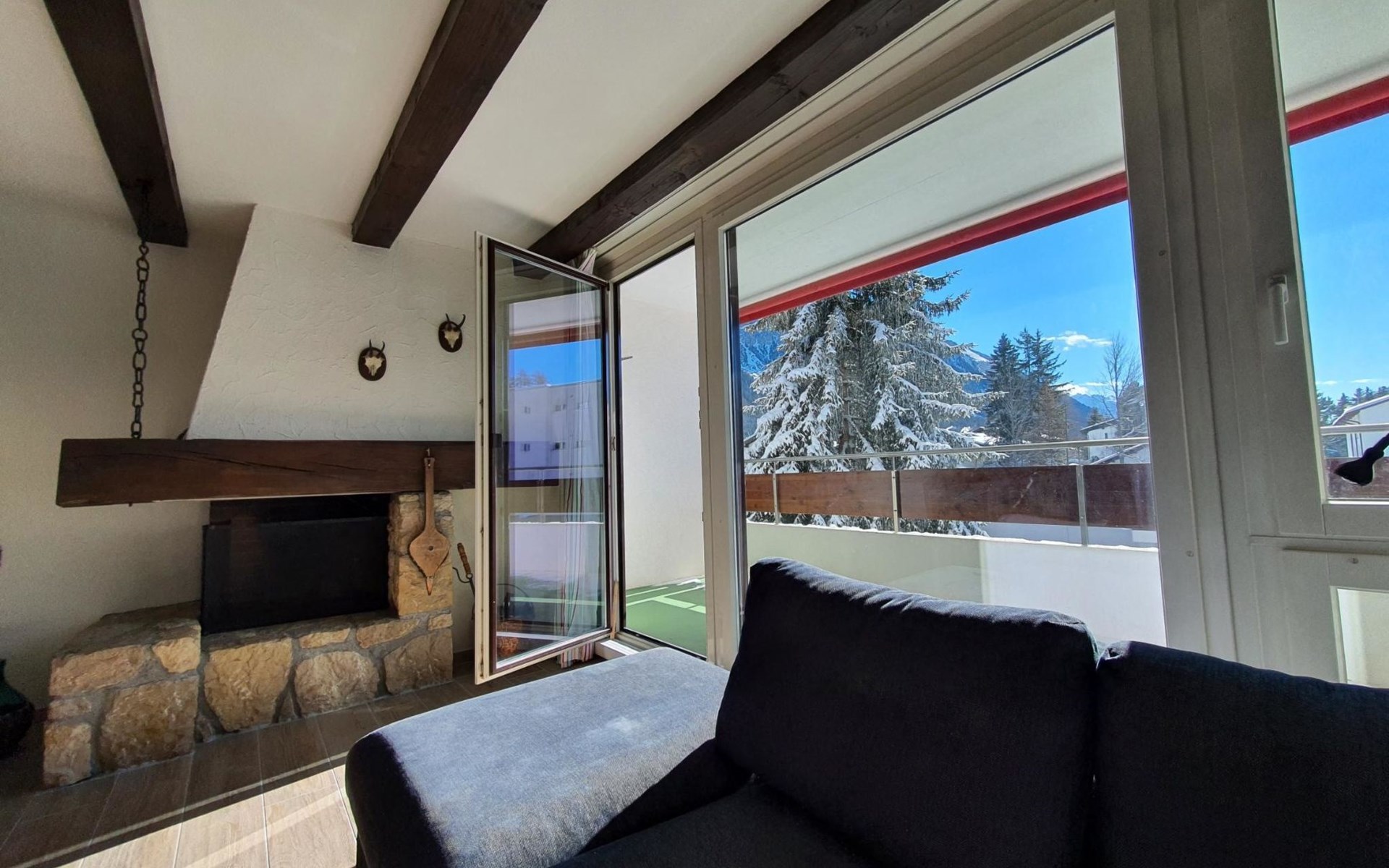 Im modernisierten Apartment werden Sie sich wohl fühlen: Die Südausrichtung und die bodentiefen Fenster gestalten das grosszügige Wohnzimmer hell und freundlich. Zum Verweilen lädt die gemütliche Sofaecke (einfach in ein Doppelbett mit Liegefläche 140x200 cm zu verwandeln) vor dem Cheminée ein. Die moderne Küche ist mit allem Komfort ausgestattet. Neben den beiden Arvenholzbetten hat es im separaten Schlafzimmer ausreichend Platz z.B. für ein Kinderbett.