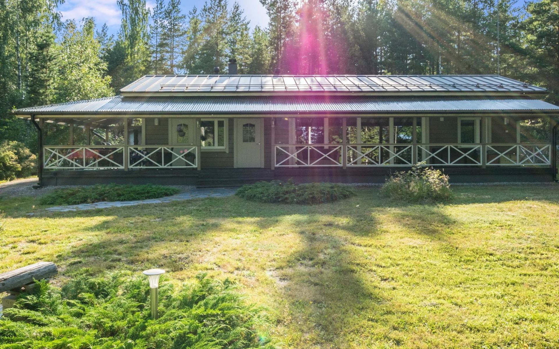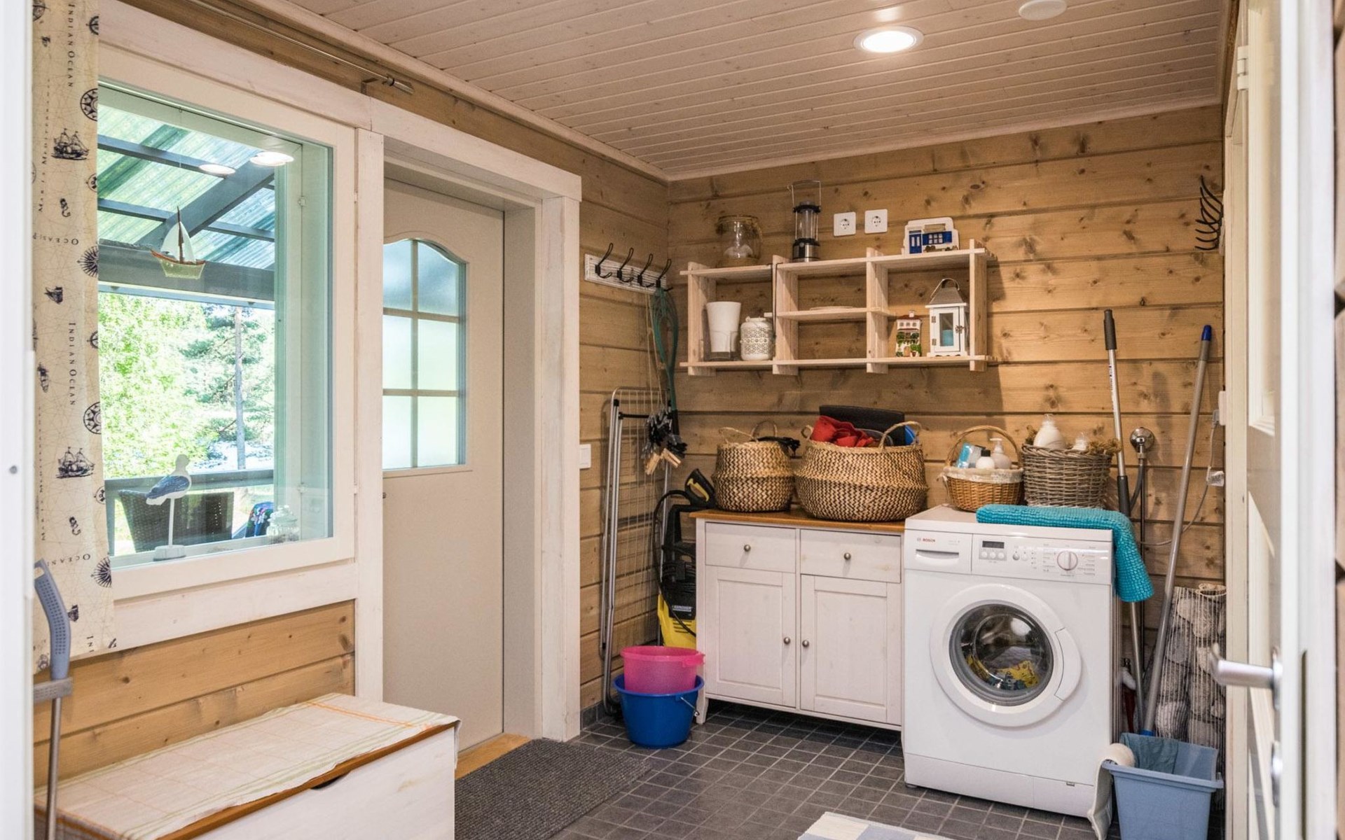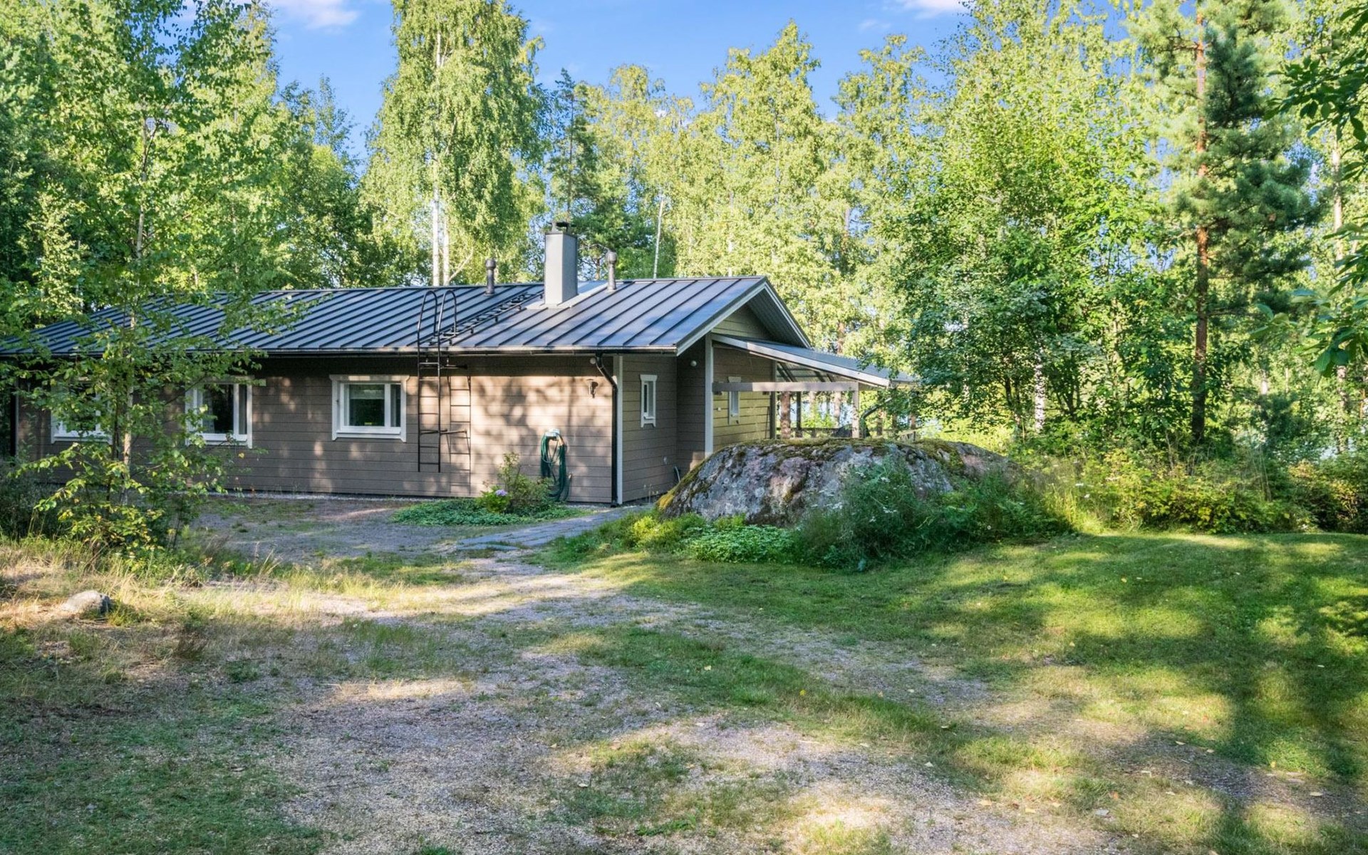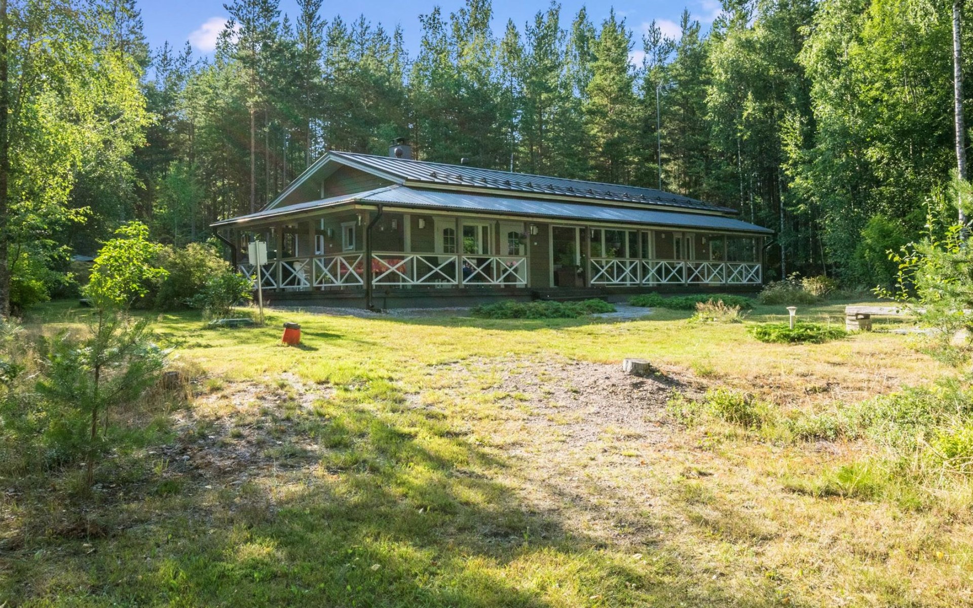 Wood-built villa, completely renovated in 2014, living room/kitchen with spreadable bed for two, double bed and cot in the bedroom (12 m²), double bed in the another bedroom (9 m²), separate WC, dressing room, washroom and wood-burning sauna stove in the sauna.