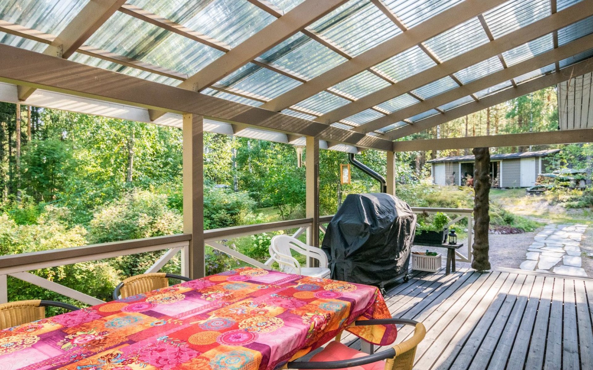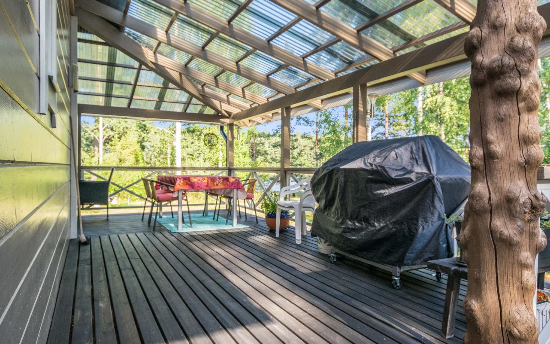 Large (50 m²) covered terrace with gas grill (note: grill is available from May to September). Campfire site in the yard.