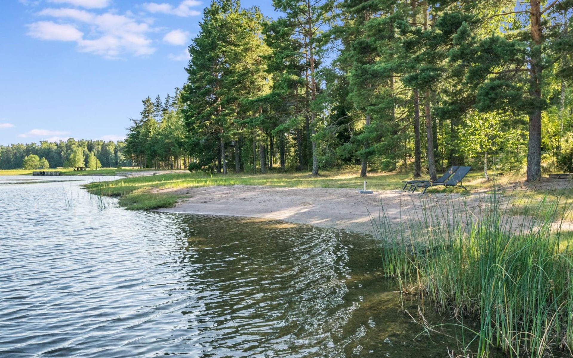 86 km to the east from Helsinki, Gulf of Finland 40 m, shallow, sheltered sand beach, pier and rowing boat.
