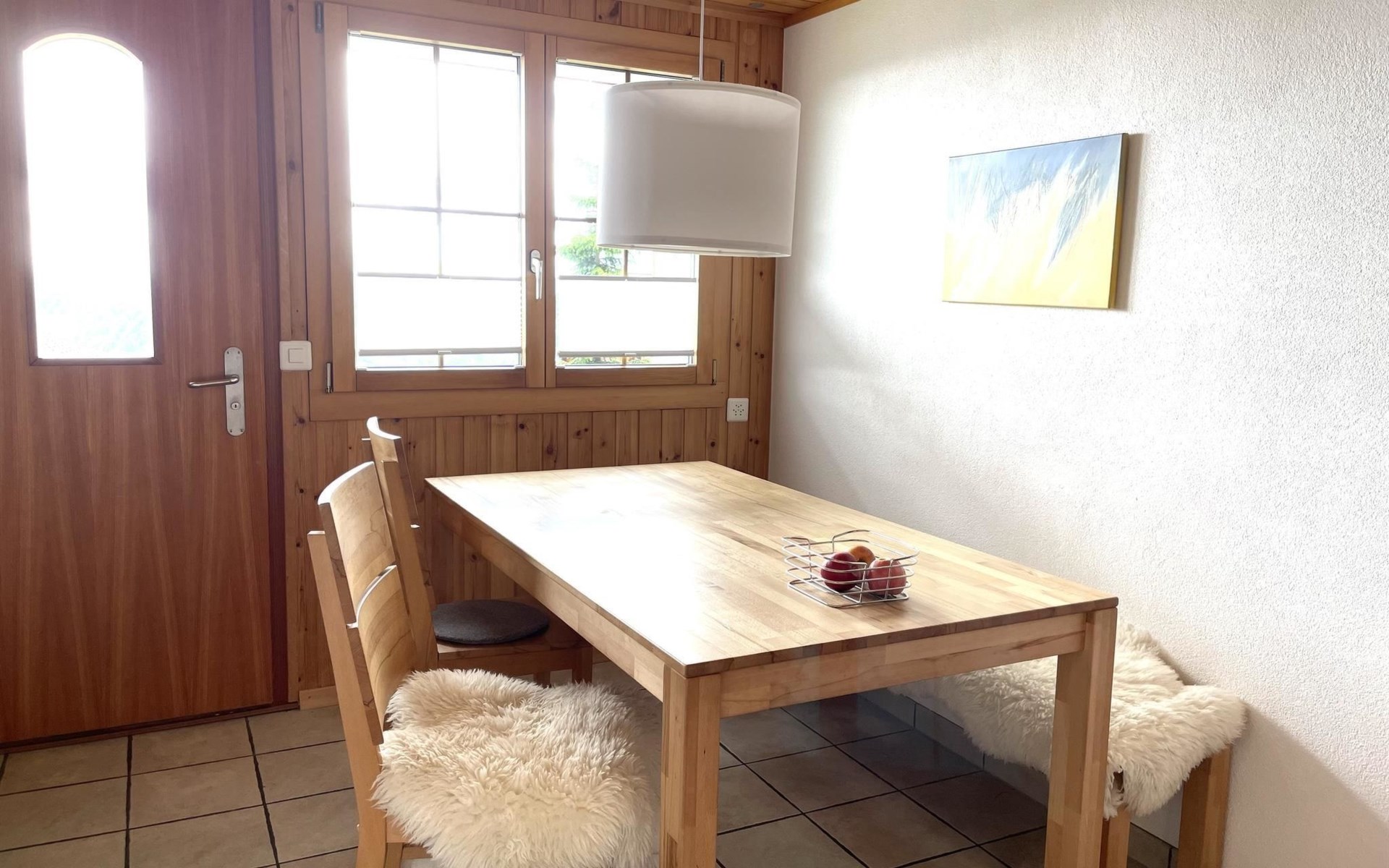 Die Wohnung verfügt über drei gut ausgestattete Räume: ein Esszimmer mit integrierter Küche, ausgestattet mit Geschirrspüler und Bodenheizung, ein separates Wohnzimmer mit Schlafsofa für zwei Personen und TV, sowie ein Schlafzimmer mit Doppelbett und zusätzlichem Ausziehbett. Das Badezimmer bietet eine Dusche und ein WC und ist ebenfalls mit Bodenheizung ausgestattet. WLAN steht in der gesamten Unterkunft zur Verfügung.