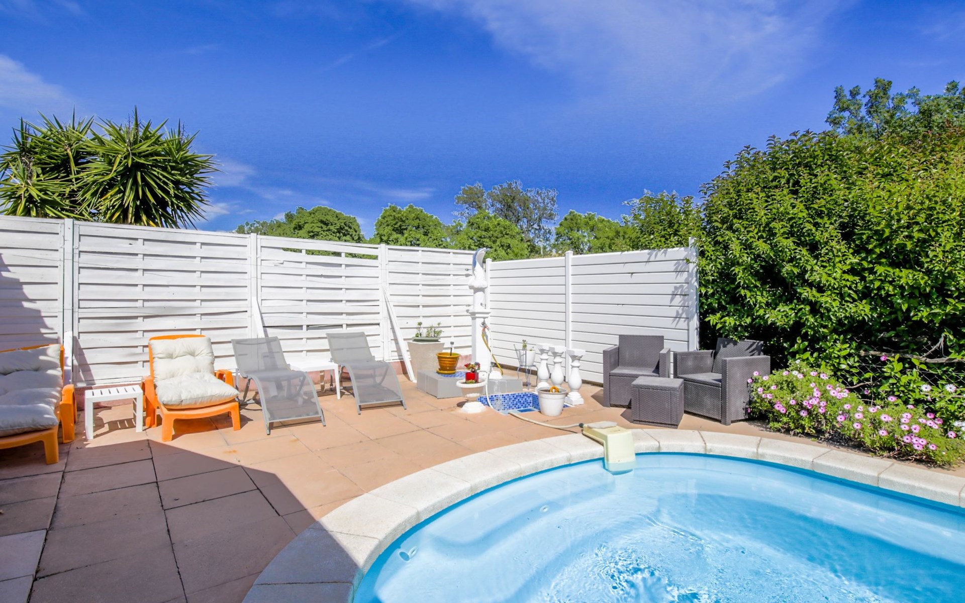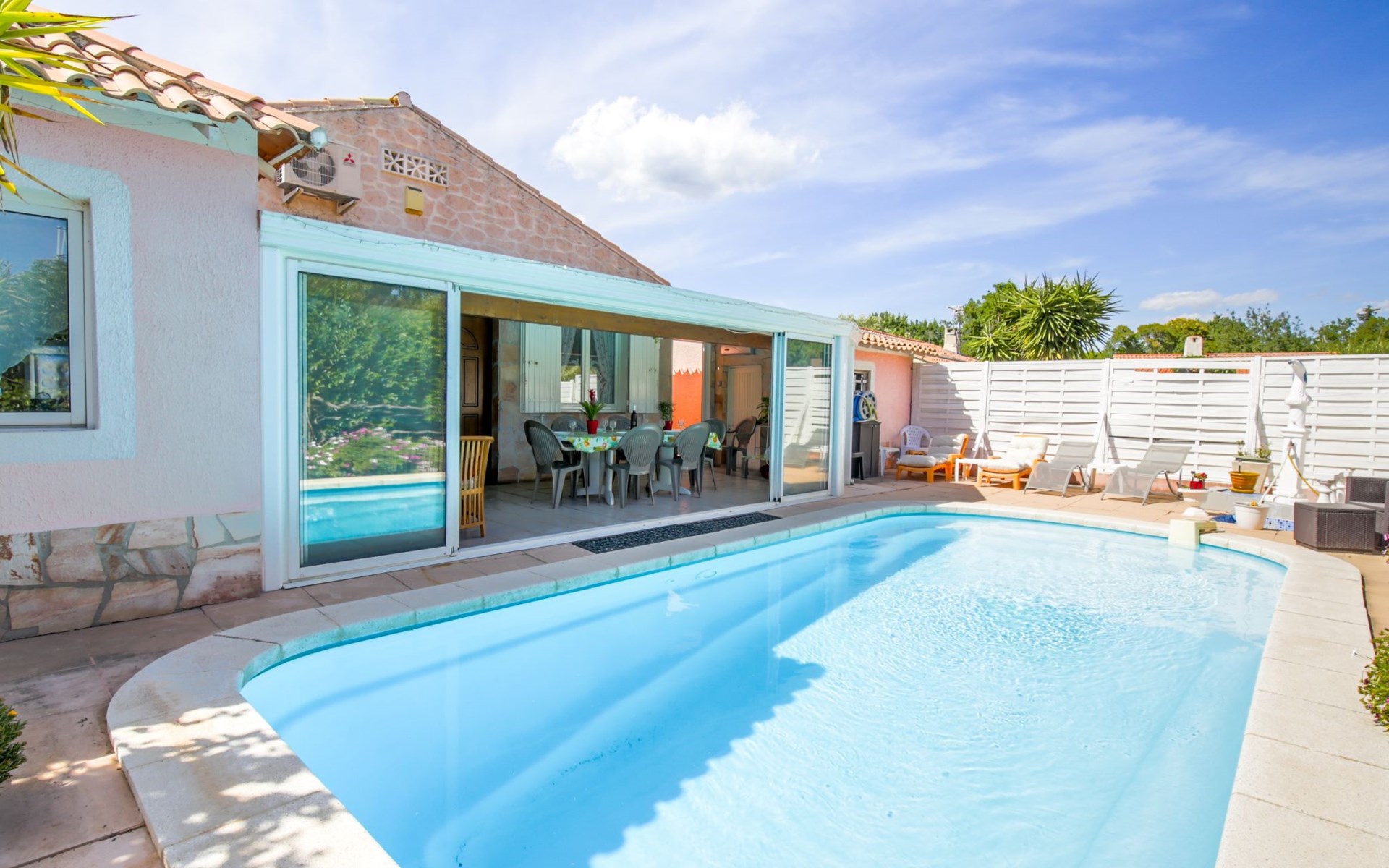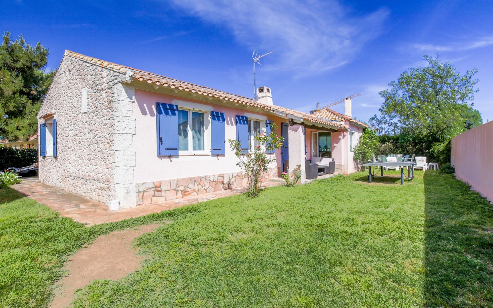 Solliès Pont: Gemütliches Einfamilienhaus "Ste Claire", Baujahr 1980, umgeben von Bäumen. Im Ortsteil Solliès Pont, in einem Wohnquartier, 15 km vom Meer, im Grünen. Zur Alleinbenutzung: Grundstück 550 m2, Schwimmbad nicht einsehbar (7 x 4 m, 90 - 170 cm tief, saisonale Verfügbarkeit: 15.Mai. und 30.Okt.) mit Alarmanlage. Zufahrt bis zum Haus. Parkplatz beim Haus. Einkaufsgeschäft 800 m, Lebensmittelgeschäft 500 m, Supermarkt 900 m, Restaurant 800 m, Bar 800 m, Bushaltestelle 600 m, Bahnstation "petite gare desservant Toulon." 600 m, Sandstrand "Plage les Bonnettes - Le Pradet" 15 km. Tennis 800 m, Tennishalle. Nahe gelegene Sehenswürdigkeiten: Parc Marie Astoin 1.8 km, Les Berges Du Gapeau 1.8 km, Le parc du chateau de Solliès Pont 600 m, La Rade de Toulon 17 km, Télépherique du Mont Faron 17 km.