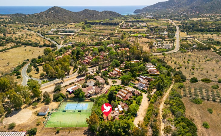 Grosse, schöne Residenz "Cordolino Blu", umgeben von Bäumen. 22 Häuser in der Residenz. Am Ortsrand, 1 km vom Zentrum von Villasimius, ruhige, sonnige Lage, 1.5 km vom Meer, 1.5 km vom Strand, im Grünen. Zur Mitbenutzung: grosser Garten (eingezäunt) mit Pflanzen und Bäumen, Parkplatz beim Haus. Einkaufsgeschäft 800 m, Supermarkt 1 km, Restaurant, Bar 100 m, Bushaltestelle "cordolino blu" 100 m, Sandstrand "Campus" 1.5 km. Sporthafen 2.5 km, Golfplatz (18 Loch) 2 km. Nahe gelegene Sehenswürdigkeiten: Costa Rei 15 km, Cagliari 55 km. Bitte beachten: Fahrzeug empfohlen.