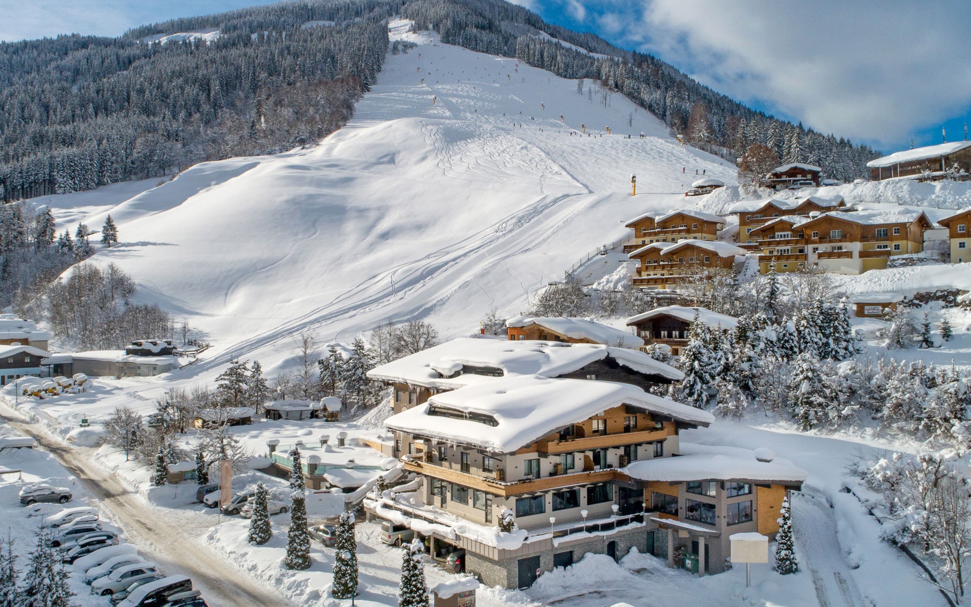 Saalbach: Frühstück Inklusive! Bietet diese moderne, komfortable Ferienanlage "Saalbach Suites by AlpsResorts". 4 km vom Zentrum von Saalbach, direkt am Skigebiet. In der Anlage: Sauna, Fitnessraum, Dampfbad, Ruheraum, Zentralheizung. Frühstück (inkl.). Parkplatz beim Haus. Supermarkt 3 km, Restaurant 4 km, Bahnstation "Maishofen" 10 km, Freibad 4 km. Golfplatz (18 Loch) 19 km, Gondelbahn 500 m, Skisportanlagen, Skischule 500 m. Nahe gelegene Sehenswürdigkeiten: Freibad Käpt’n Hook. Bekannte Skigebiete sind gut erreichbar: Saalbach-Hinterglemm Home of Lässig. Bitte beachten: Gratis Skibus. Der gratis Skibus fährt zum Skigebiet Saalbach. Bei guter Schneelage Zufahrt mit den Skiern bis zum Haus. Das Foto ist nur ein Wohnungsbeispiel. Die Mietobjekte können sich in Wohnfläche, Raumaufteilung, Ausstattung und Einrichtung unterscheiden. Dank der inkludierten JOKER CARD genießen Sie von Mai bis Oktober zahlreiche Gratisleistungen in der Region Saalbach Hinterglemm.