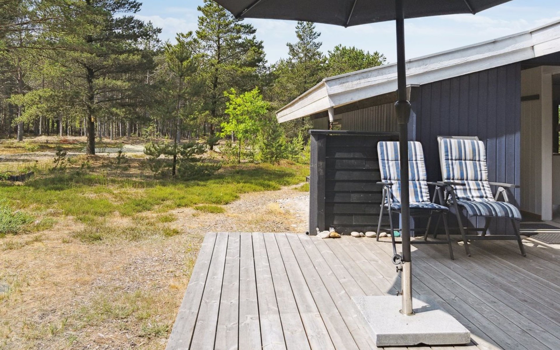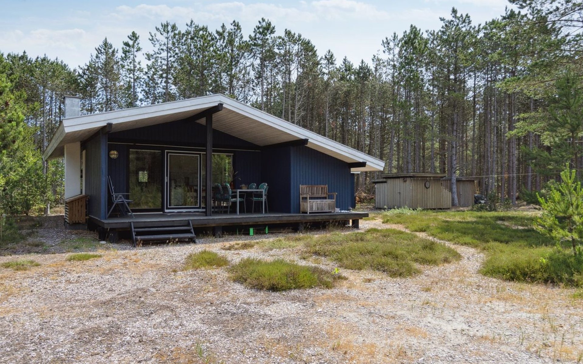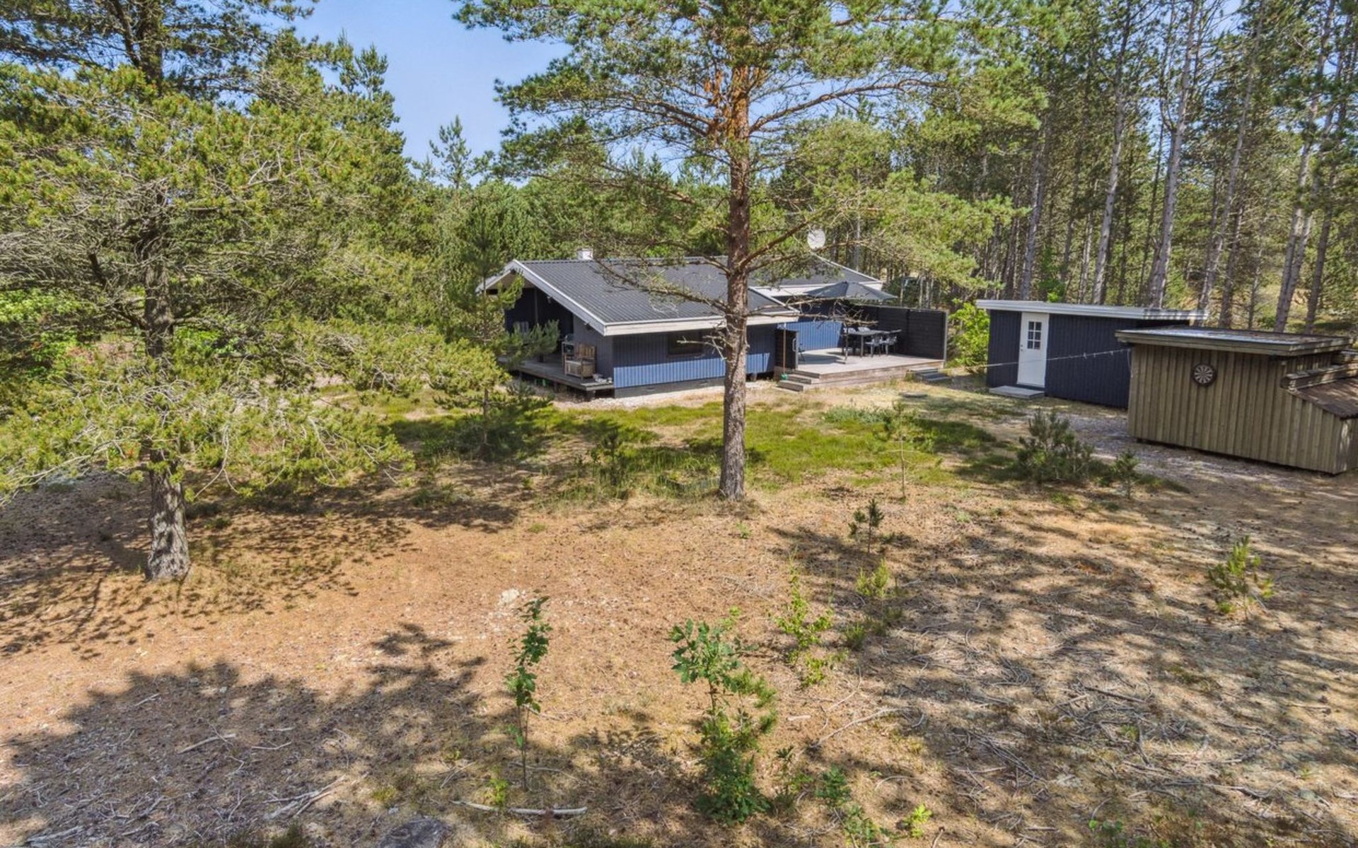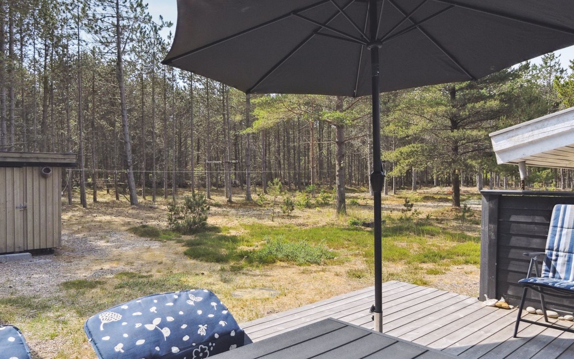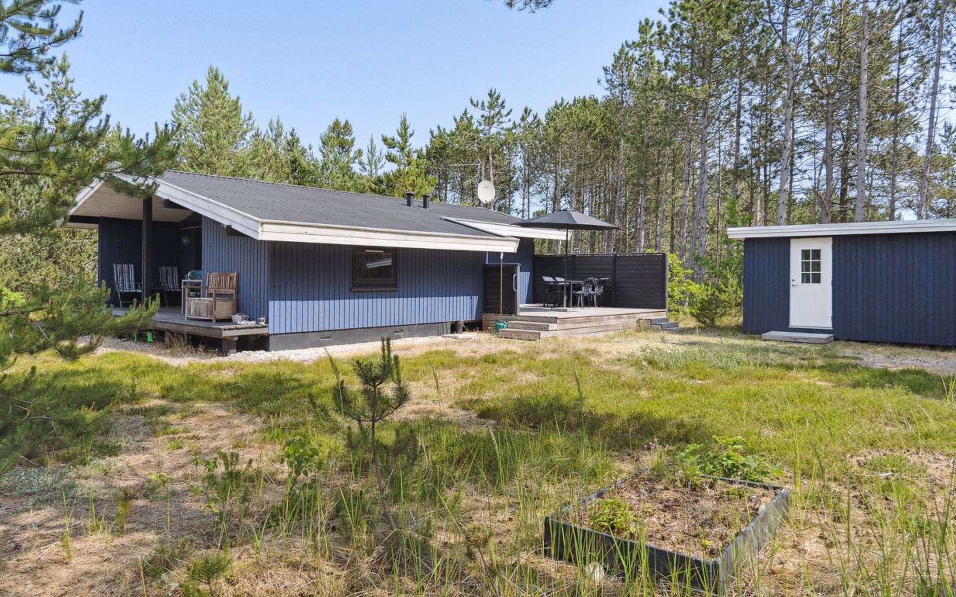 Einfamilienhaus, Baujahr 1985. 600 m vom Meer. Zur Alleinbenutzung: naturbelassenes Grundstück 5'280 m2. Grill, Kinderspielplatz (Schaukel). Im Hause: Waschmaschine. Parkplatz beim Haus. Lebensmittelgeschäft 2 km. Golfplatz 5.6 km. Der Besitzer akzeptiert keine Jugendgruppen.