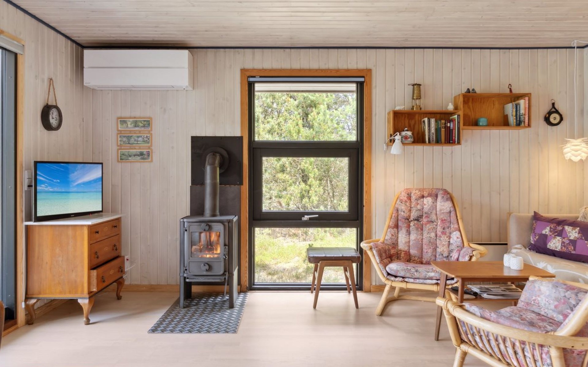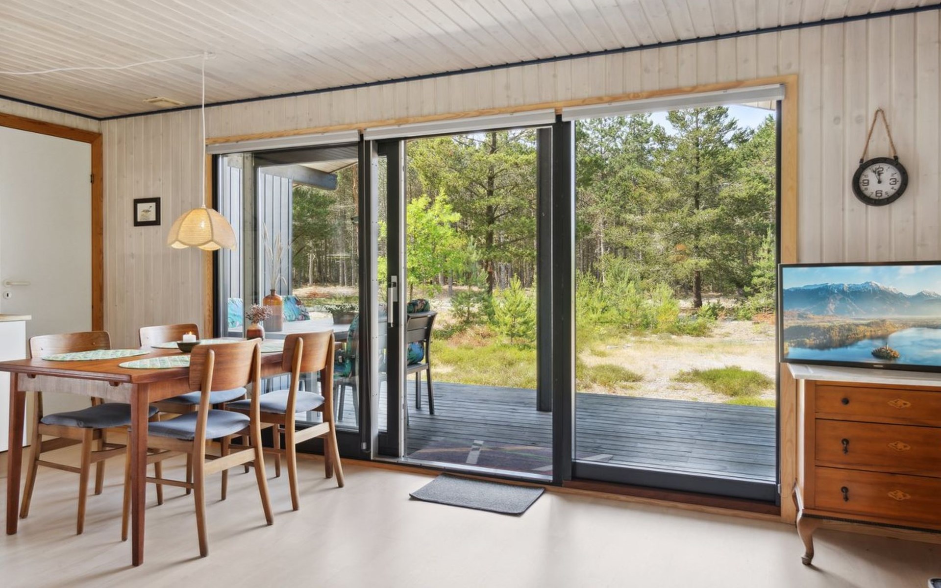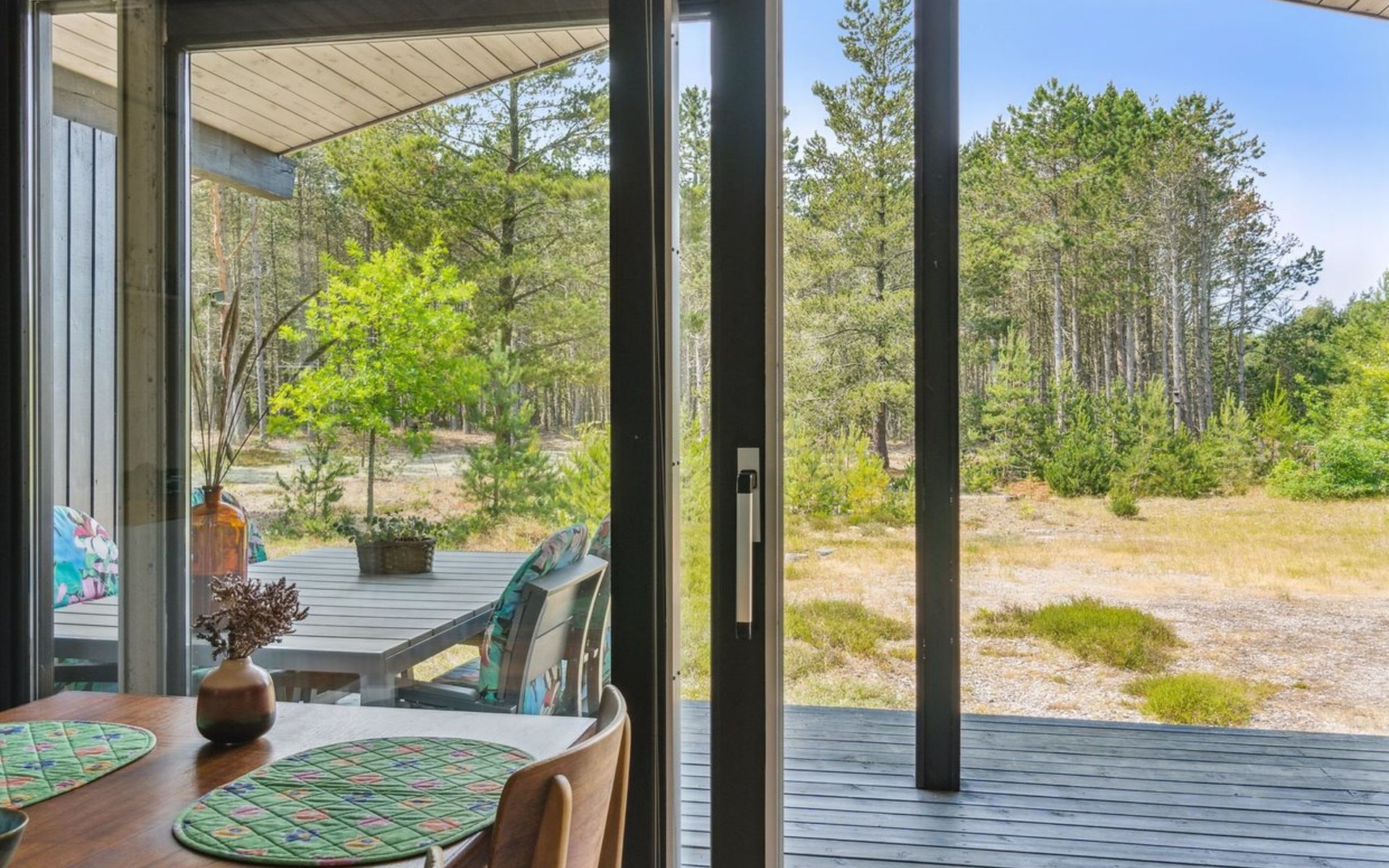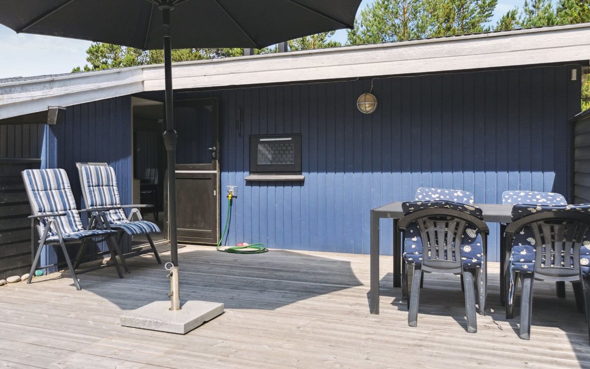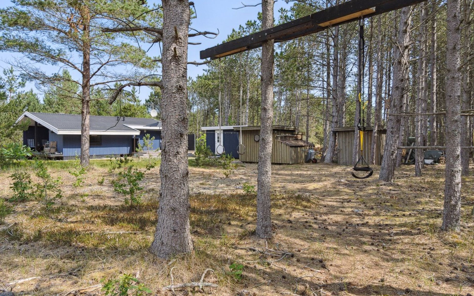 Einfamilienhaus, Baujahr 1985. 600 m vom Meer. Zur Alleinbenutzung: naturbelassenes Grundstück 5'280 m2. Grill, Kinderspielplatz (Schaukel). Im Hause: Waschmaschine. Parkplatz beim Haus. Lebensmittelgeschäft 2 km. Golfplatz 5.6 km. Der Besitzer akzeptiert keine Jugendgruppen.