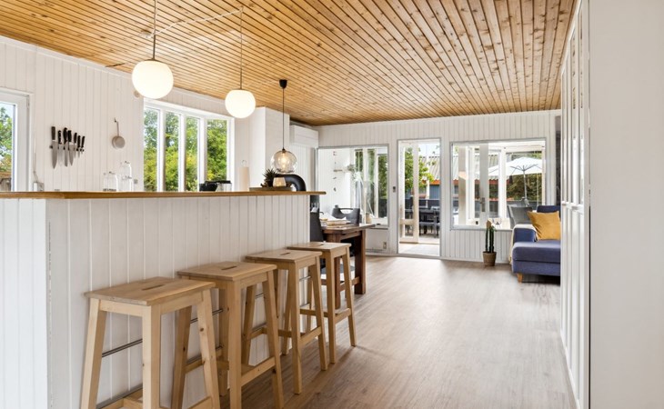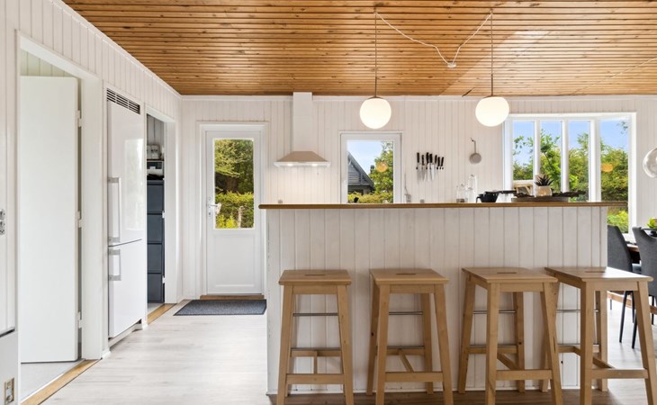 Einfamilienhaus, Baujahr 1969. 280 m vom Meer. Zur Alleinbenutzung: Grundstück 829 m2, gepflegter Garten. Grill, Kinderspielplatz. Im Hause: Trampolin, Waschmaschine. Parkplatz beim Haus. Lebensmittelgeschäft 2 km. Der Besitzer akzeptiert keine Jugendgruppen.