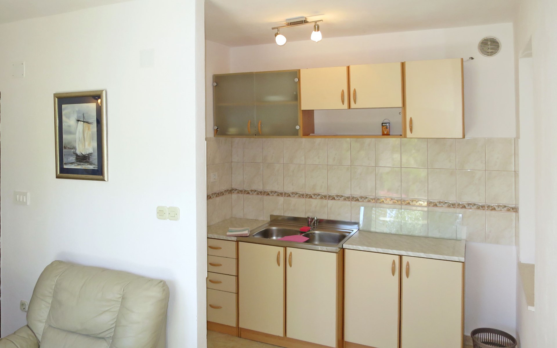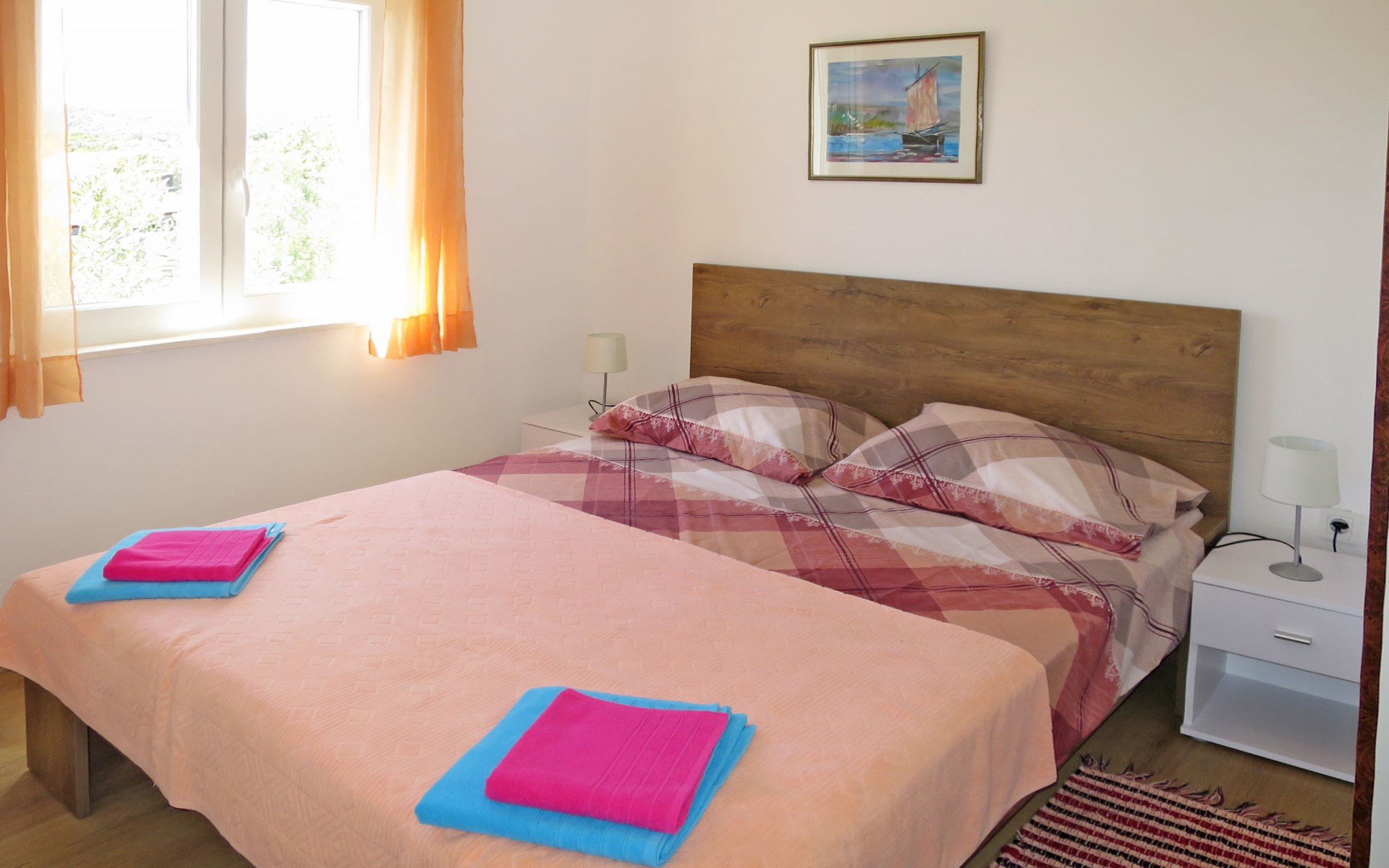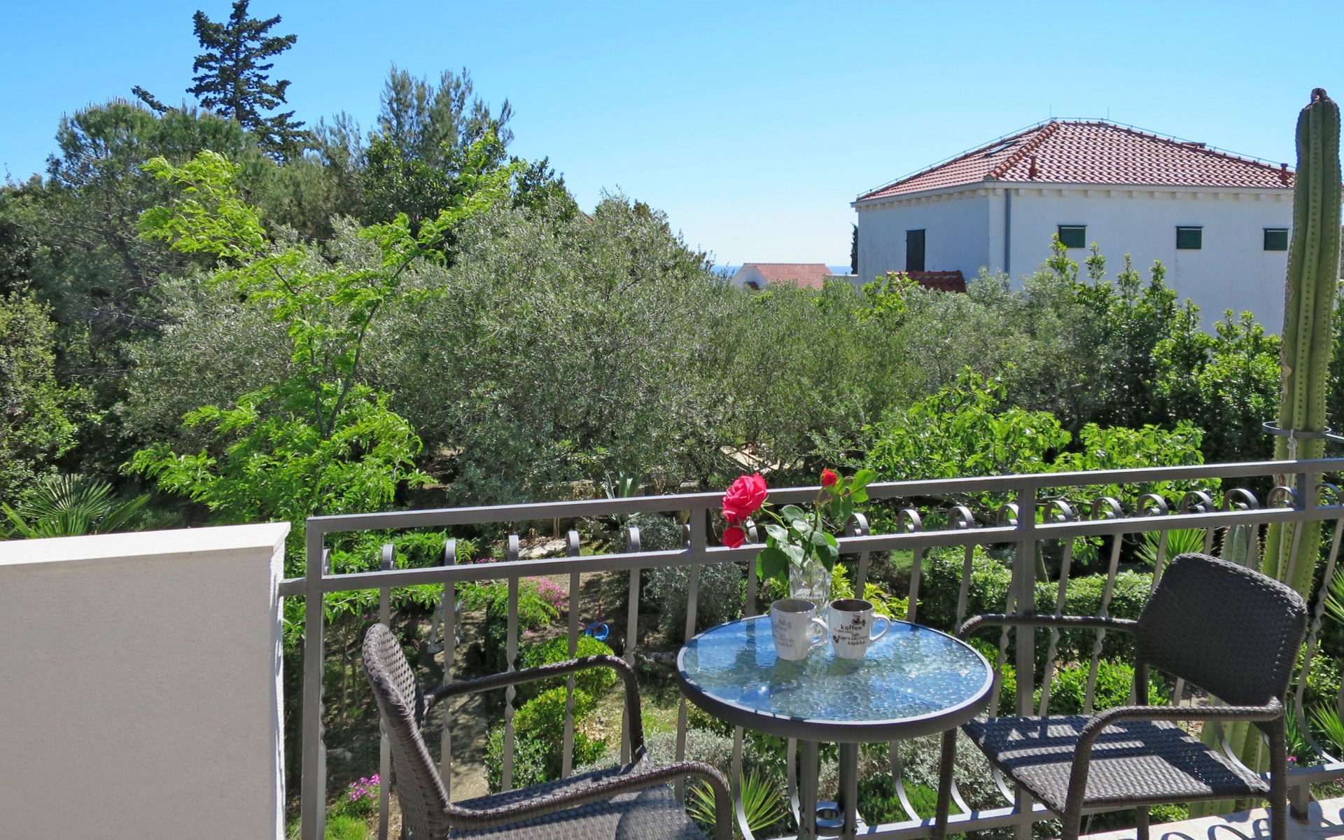 Einfamilienhaus "Maslina", auf 2 Stockwerken. Im Weiler Ljubljeva, 5 km vom Zentrum von Vinišće, 7 km vom Zentrum von Marina, 20 km vom Zentrum von Trogir, 250 m vom Meer, 450 m vom Strand. Zur Alleinbenutzung: Grundstück 550 m2 (eingezäunt), Garten mit Pflanzen und Bäumen. Terrasse, Gartenmöbel, Grill. Im Hause: Internetzugang. Parkplatz (für 2 Autos) auf dem Grundstück. Einkaufsgeschäft 5 km, Supermarkt 7 km, Bushaltestelle "Dubrave 1" 2.2 km, Kieselstrand 450 m. Bitte beachten: private Bootsanlegestelle (extra) auf Anfrage. Flugplatz 27 km vom Haus.