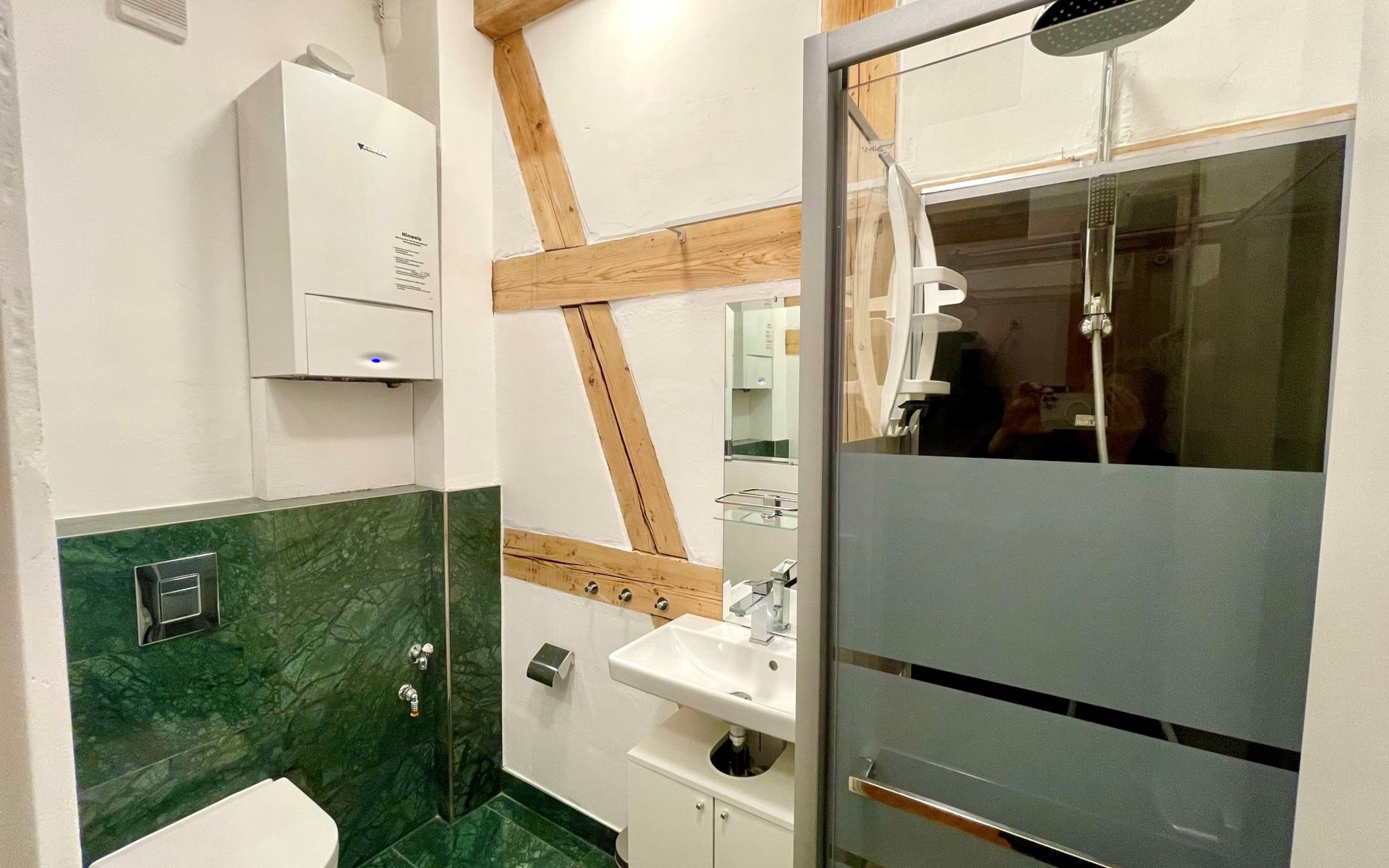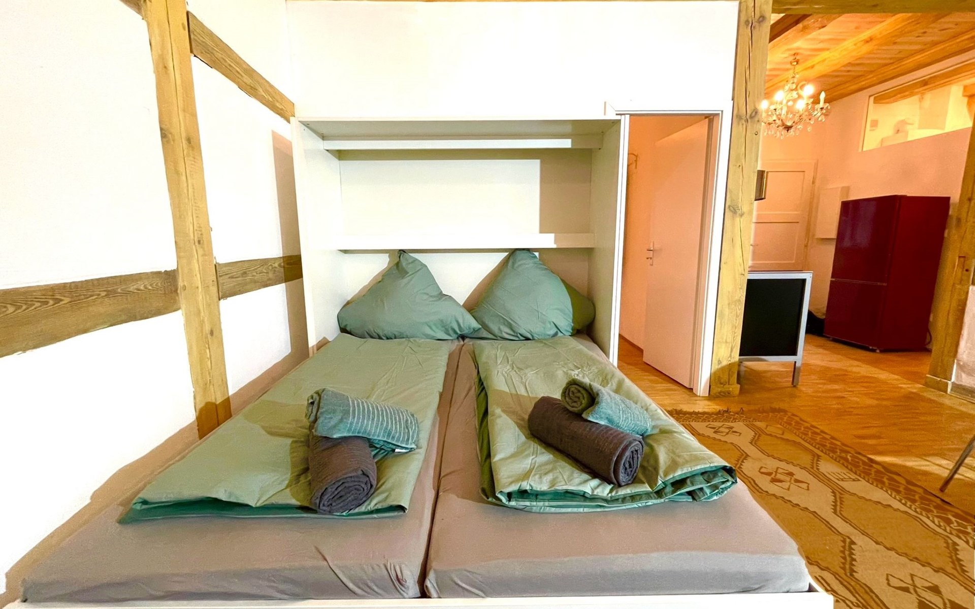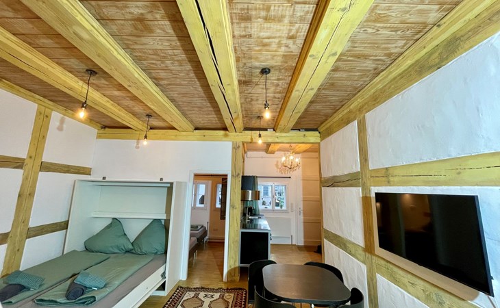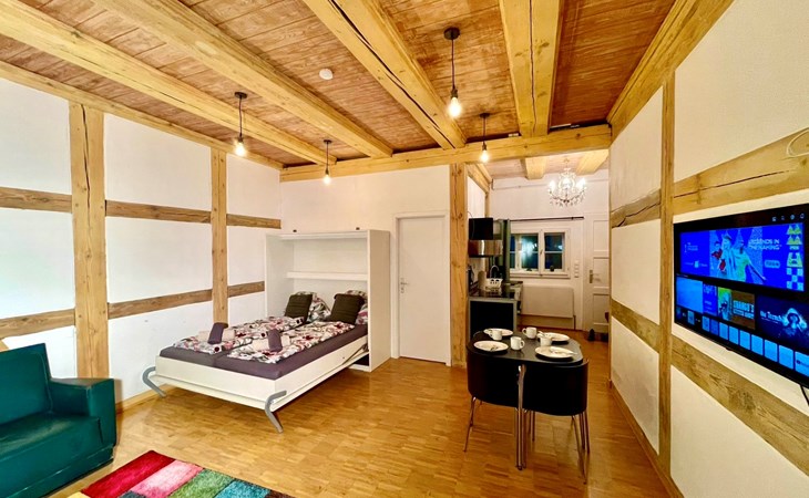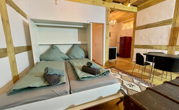 Berlin-Spandau 12 km von Berlin-Mitte: Historisches Haus. Zentrale Lage, im Herzen der Stadt, verkehrsberuhigte Zone, 500 m vom Fluss. Öffentliches Parkhaus in 50 m. Supermarkt 50 m, Einkaufszentrum 20 m, Restaurant 30 m, Bäckerei 20 m, Café 30 m, Fußgängerzone 5 m, Bushaltestelle "Breite Strasse / Markt" 120 m, Bahnstation "Bahnhof Spandau" 400 m, U-Bahnstation "Rathaus Spandau" 400 m, Hallenbad 2.7 km. Sporthafen, Jacht-Hafen 800 m, Golfplatz (18 Loch) 12 km, Minigolf 3 km. Nahe gelegene Sehenswürdigkeiten: Zitadelle Spandau 1 km, Berliner Fernsehturm 12 km, Potsdamer Platz 11 km, Museumsinsel Berlin 12 km. Bekannte Seen in der Umgebung sind gut erreichbar: Spandauer See 900 m, Tegeler see 1.2 km, Wannsee 13 km. Wandergebiete: Grunewald 12 km, Spandauer Forst 3 km. Der Besitzer akzeptiert keine Jugendgruppen.