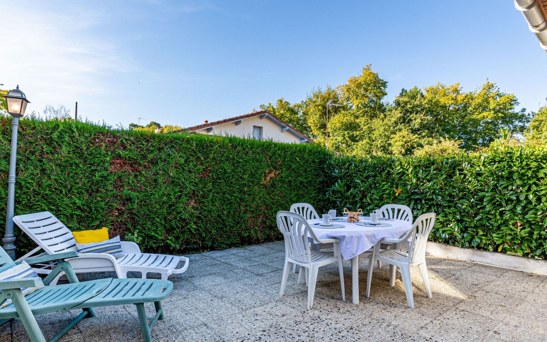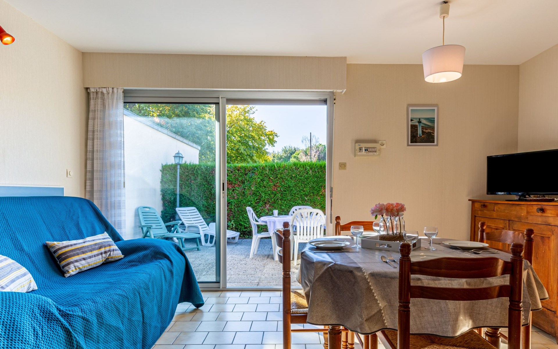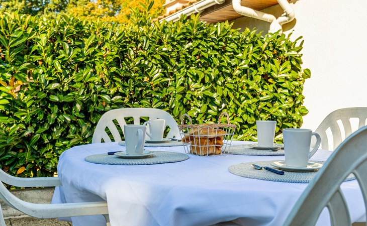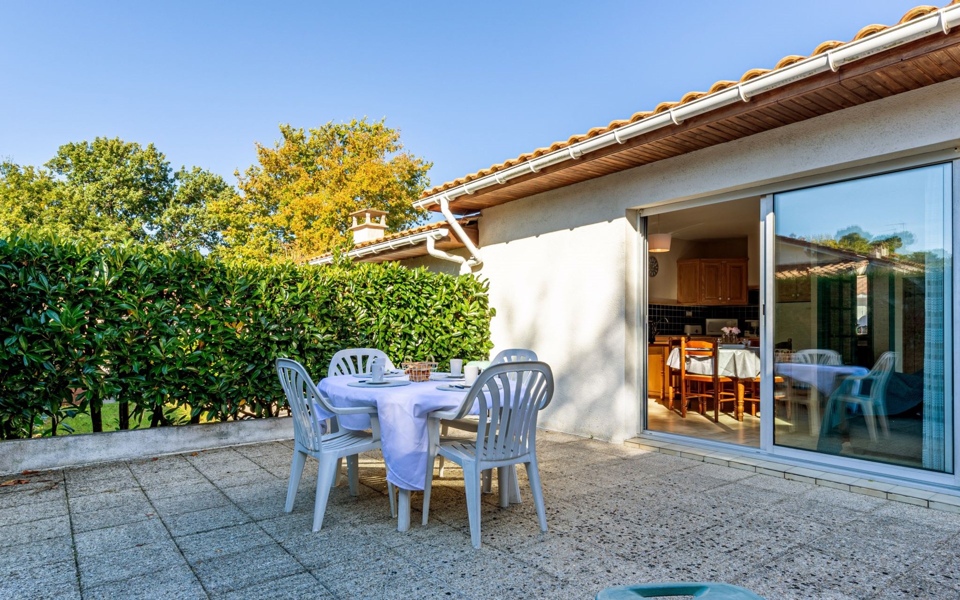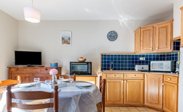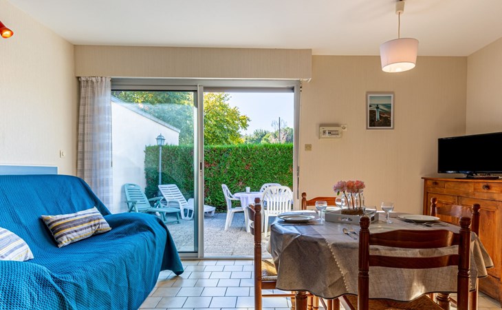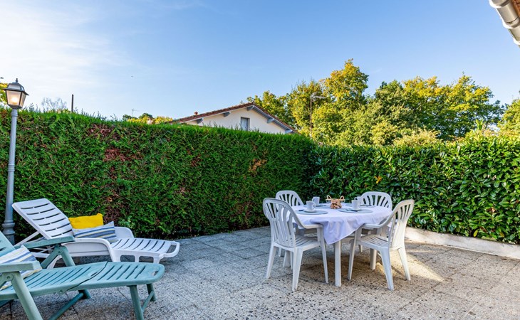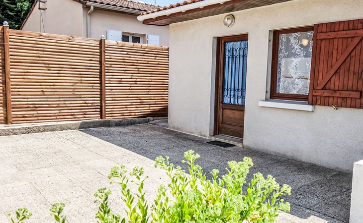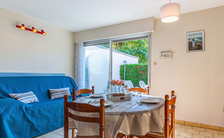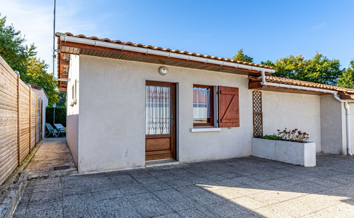 Kleines Reihenhaus "L'Orée des Bois". Ausserhalb des Ortes, 1 km vom Zentrum von Saint Georges de Didonne, 900 m vom Meer, 900 m vom Strand, in einer Sackgasse, Richtung Südwesten. Parkplatz auf dem Grundstück. Lebensmittelgeschäft 100 m, Supermarkt 650 m, Restaurant 1 km, Bushaltestelle "Maréchal Juin" 800 m, Bahnstation "Royan" 2.5 km, Sandstrand "Grande Conche" 900 m, Park "Luna Park (Juillet-Août)" 20 km, Hallenbad 2.5 km, Thermalbad "Thalassothérapie Thalazur Royan" 5 km, See Enlias - St Georges de didonne 650 m. Sporthafen 4 km, Golfplatz (18 Loch) 13 km, Segelschule 1.8 km, Tennis 1 km, Minigolf 3.5 km. Nahe gelegene Sehenswürdigkeiten: Parc de l'Estuaire 4 km, Embarcadere Royan - Le Verdon 4 km, Zoo de La Palmyre 20 km, Hippodrome - La Palmyre 21 km, Centre aquatique Iléo - Ile d'Oléron 50 km, Fort Boyard - Fouras 60 km. Objekt geeignet für 2 Erwachsene + 2 Kinder. Bitte beachten: Die Schlüsselübergabe findet bei der Agentur Interhome in Vaux sur Mer statt, 6 km. Der Besitzer wohnt auf dem gleichen Grundstück.