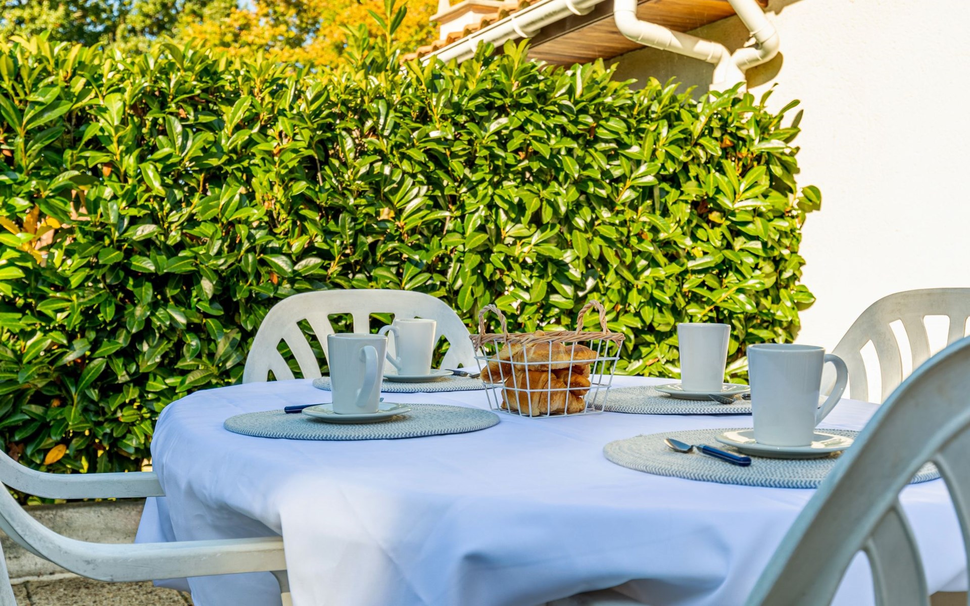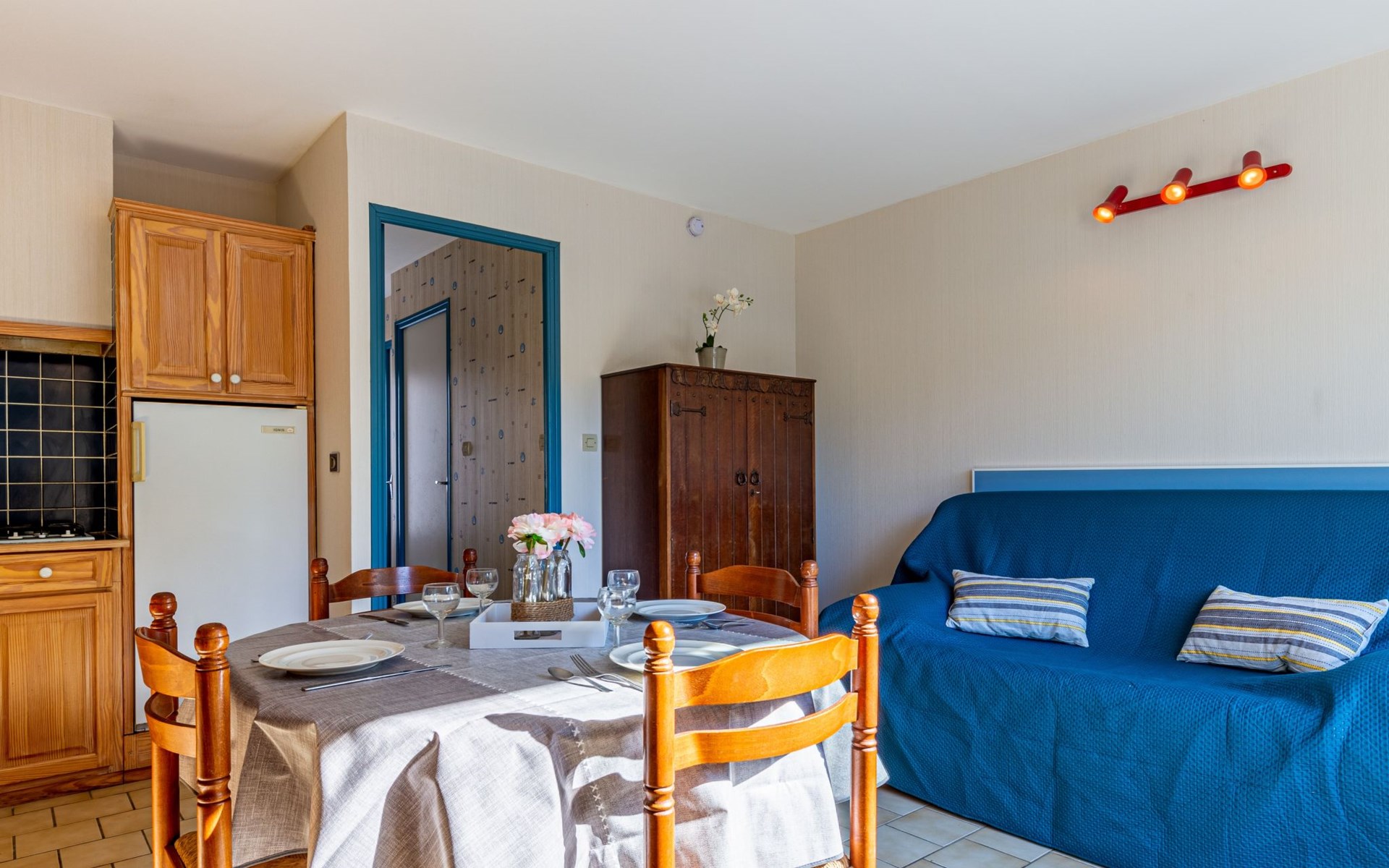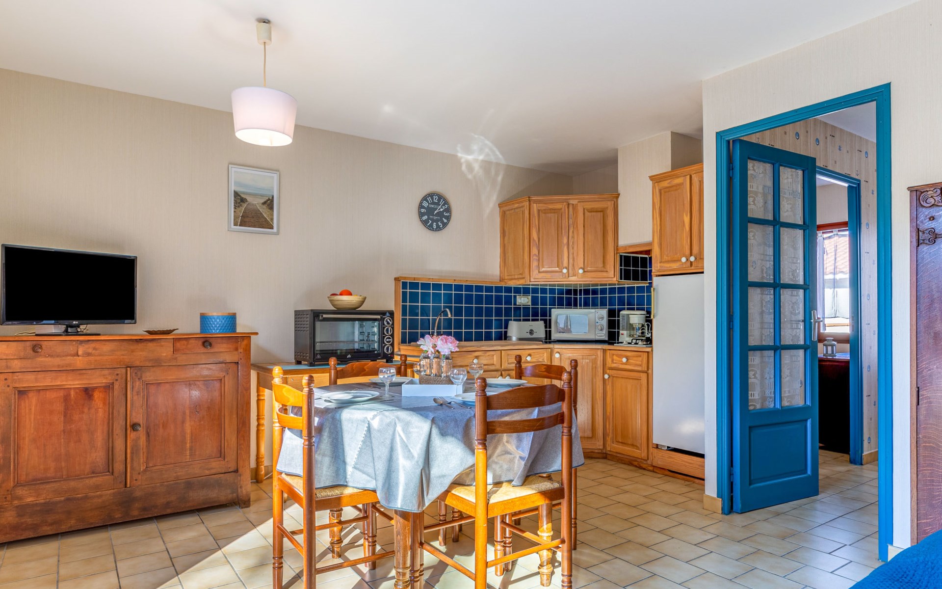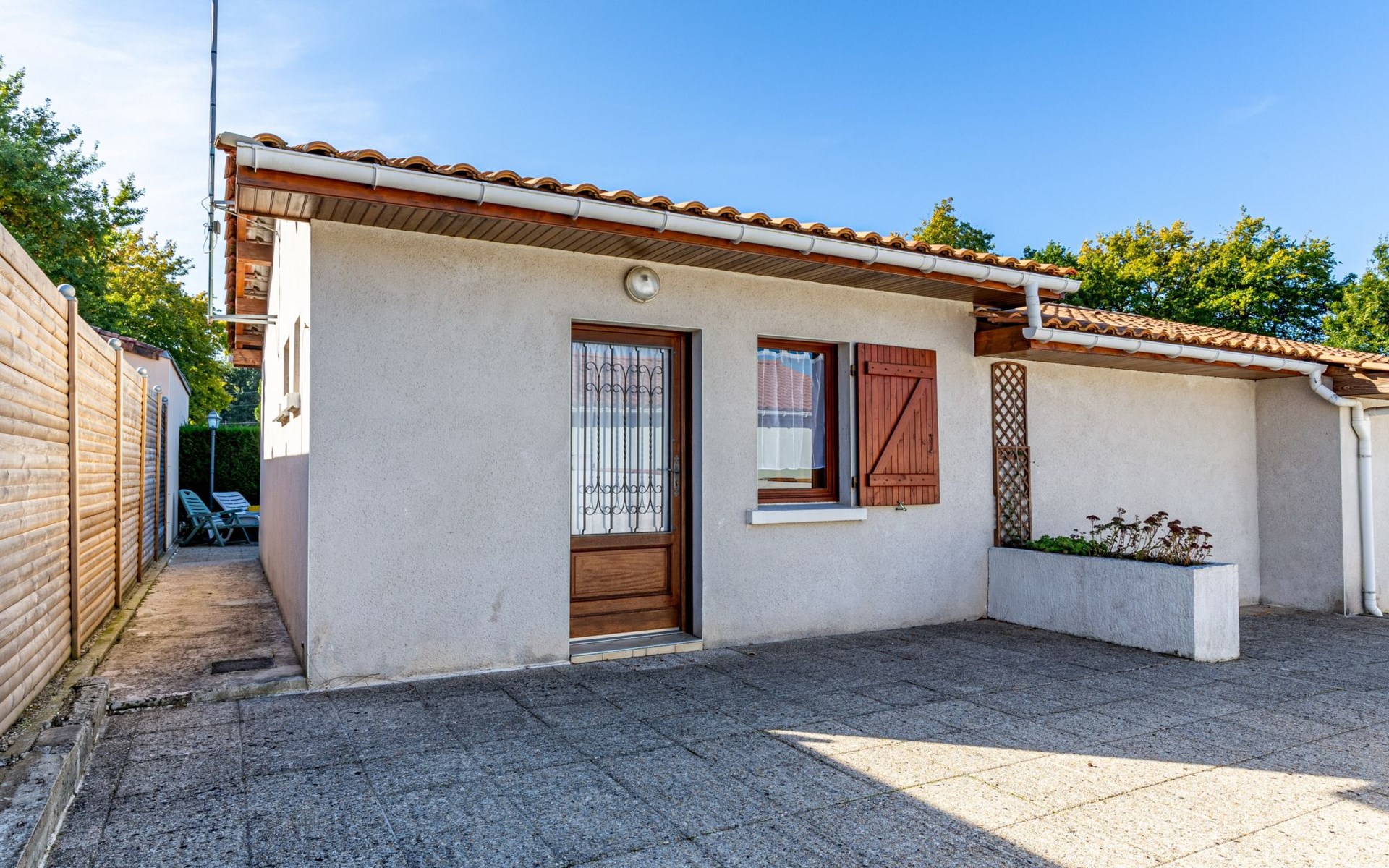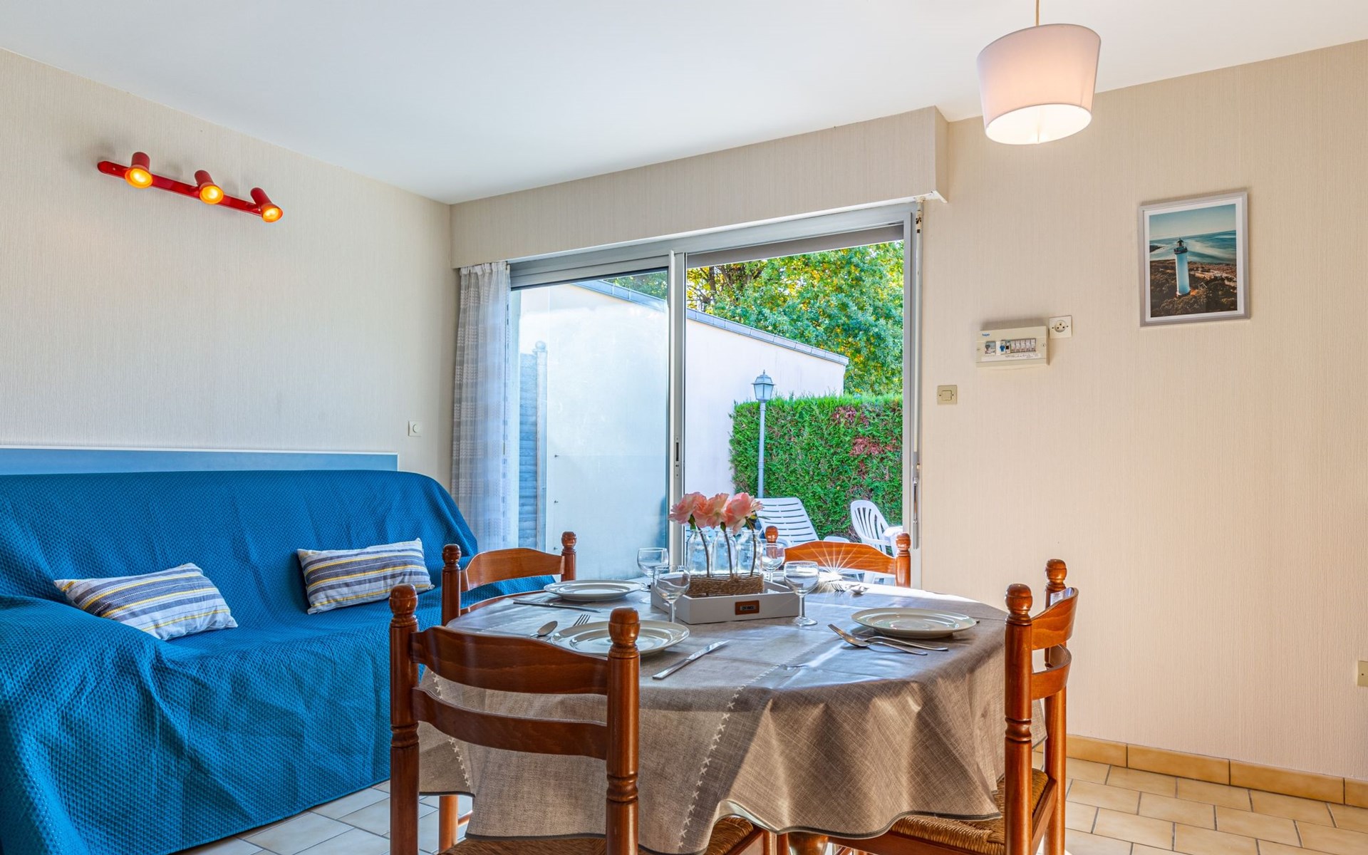 Kleines Reihenhaus "L'Orée des Bois". Ausserhalb des Ortes, 1 km vom Zentrum von Saint Georges de Didonne, 900 m vom Meer, 900 m vom Strand, in einer Sackgasse, Richtung Südwesten. Parkplatz auf dem Grundstück. Lebensmittelgeschäft 100 m, Supermarkt 650 m, Restaurant 1 km, Bushaltestelle "Maréchal Juin" 800 m, Bahnstation "Royan" 2.5 km, Sandstrand "Grande Conche" 900 m, Park "Luna Park (Juillet-Août)" 20 km, Hallenbad 2.5 km, Thermalbad "Thalassothérapie Thalazur Royan" 5 km, See Enlias - St Georges de didonne 650 m. Sporthafen 4 km, Golfplatz (18 Loch) 13 km, Segelschule 1.8 km, Tennis 1 km, Minigolf 3.5 km. Nahe gelegene Sehenswürdigkeiten: Parc de l'Estuaire 4 km, Embarcadere Royan - Le Verdon 4 km, Zoo de La Palmyre 20 km, Hippodrome - La Palmyre 21 km, Centre aquatique Iléo - Ile d'Oléron 50 km, Fort Boyard - Fouras 60 km. Objekt geeignet für 2 Erwachsene + 2 Kinder. Bitte beachten: Die Schlüsselübergabe findet bei der Agentur Interhome in Vaux sur Mer statt, 6 km. Der Besitzer wohnt auf dem gleichen Grundstück.