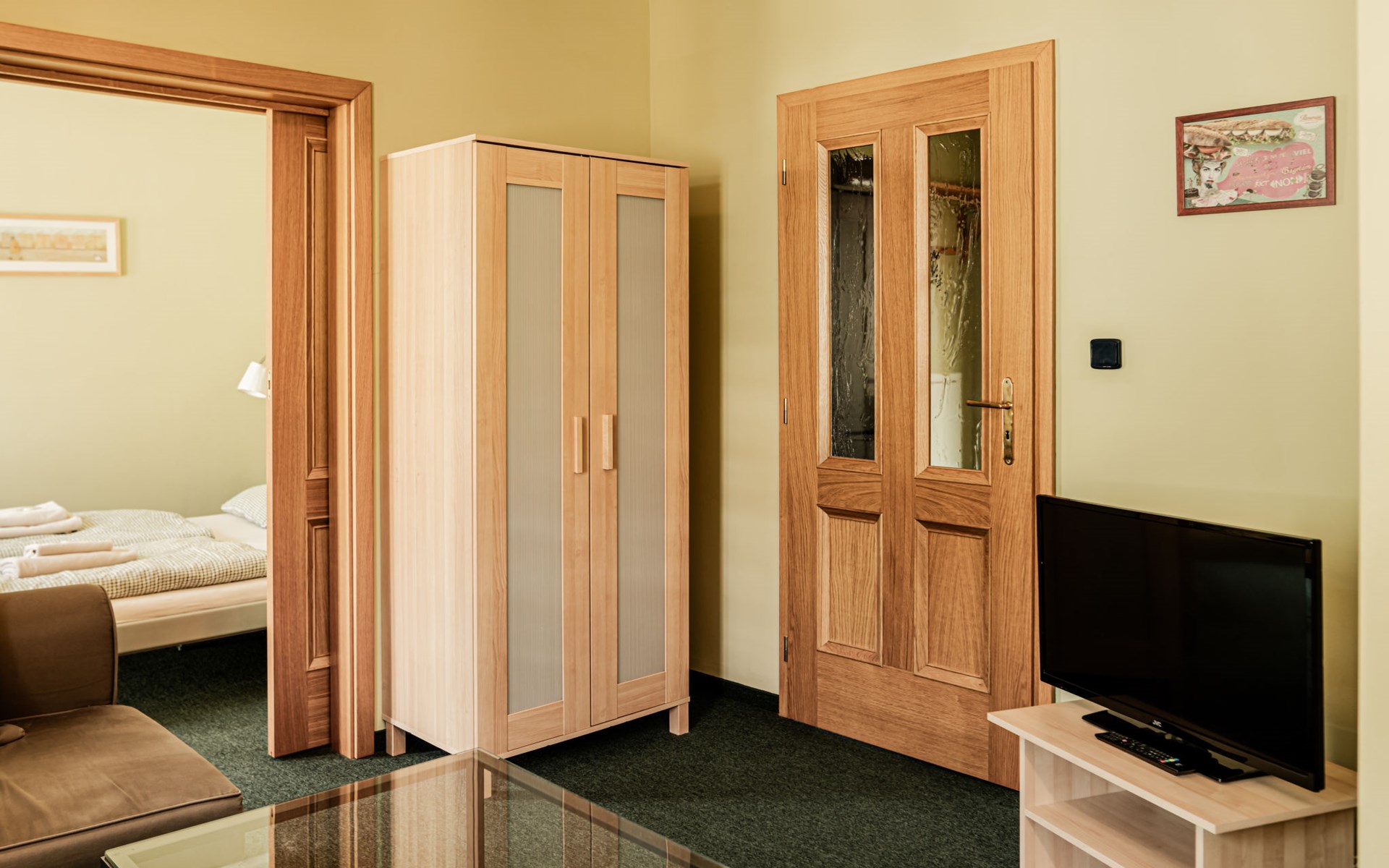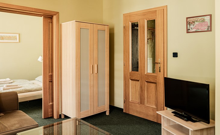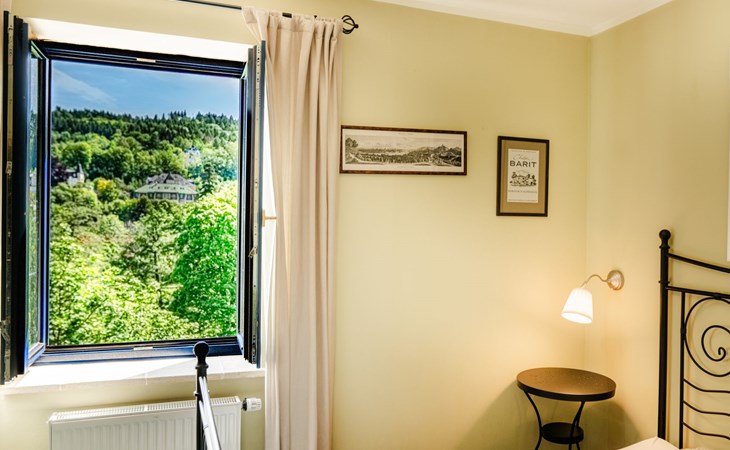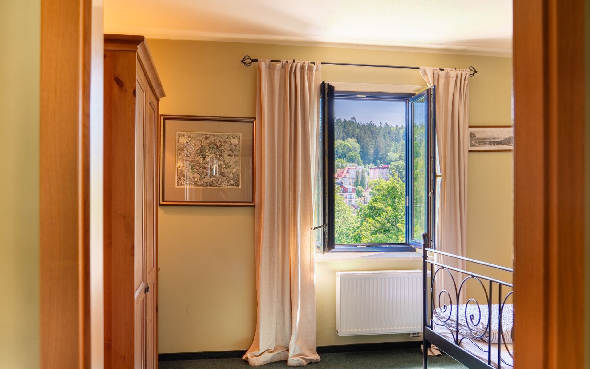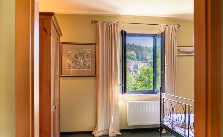 Das Haus "Villa Merlin" wurde im alten englischen Stil erbaut, in einem Wohnquartier am Rande der Altstadt von Marianske Lazne. Haus auf 3 Stockwerken, Baujahr 2006. Im Ort, 100 m vom Zentrum, zentrale, ruhige Lage, an einer Strasse, im Grünen. Im Hause: Skiraum, Zentralheizung. Parkplatz auf dem Grundstück. Einkaufsgeschäft, Restaurant 100 m, Bushaltestelle "Mariánské lázně, tržnice" 400 m, Freibad 1 km, Hallenbad 1 km. Golfplatz (18 Loch) 3 km, Tennis 500 m, Skipisten 3 km. Bitte beachten: Das Foto ist nur ein Wohnungsbeispiel. Weitere Unterkünfte sind buchbar. Die Südost-Seite des Hauses verfügt über eine Terrasse, welche in hübsche Ecken des historischen Spa-Parkes führt.