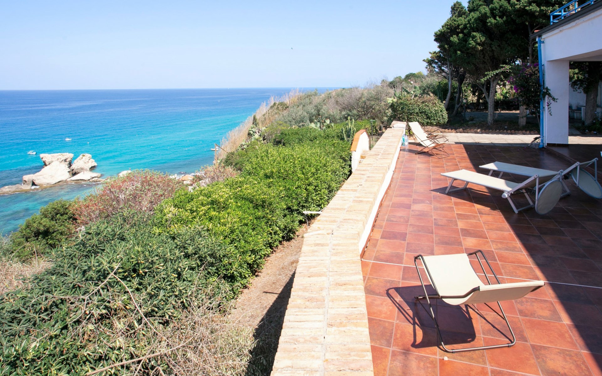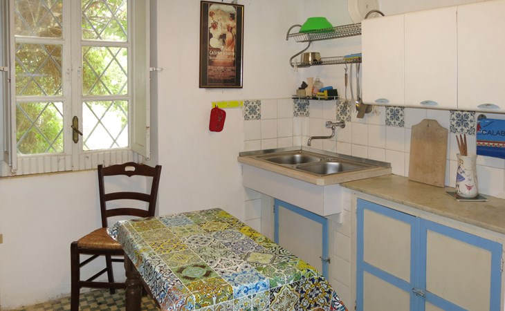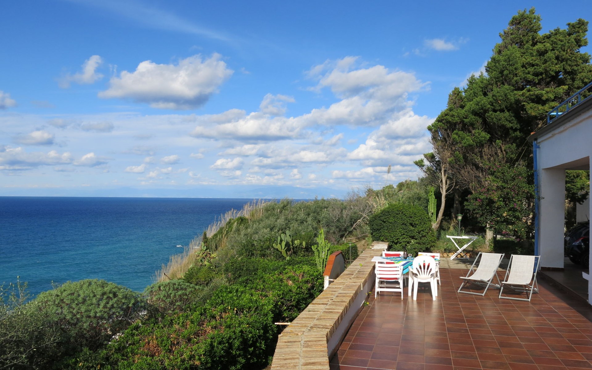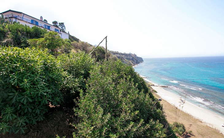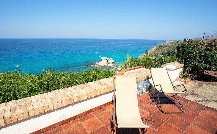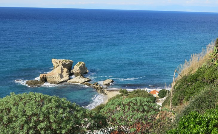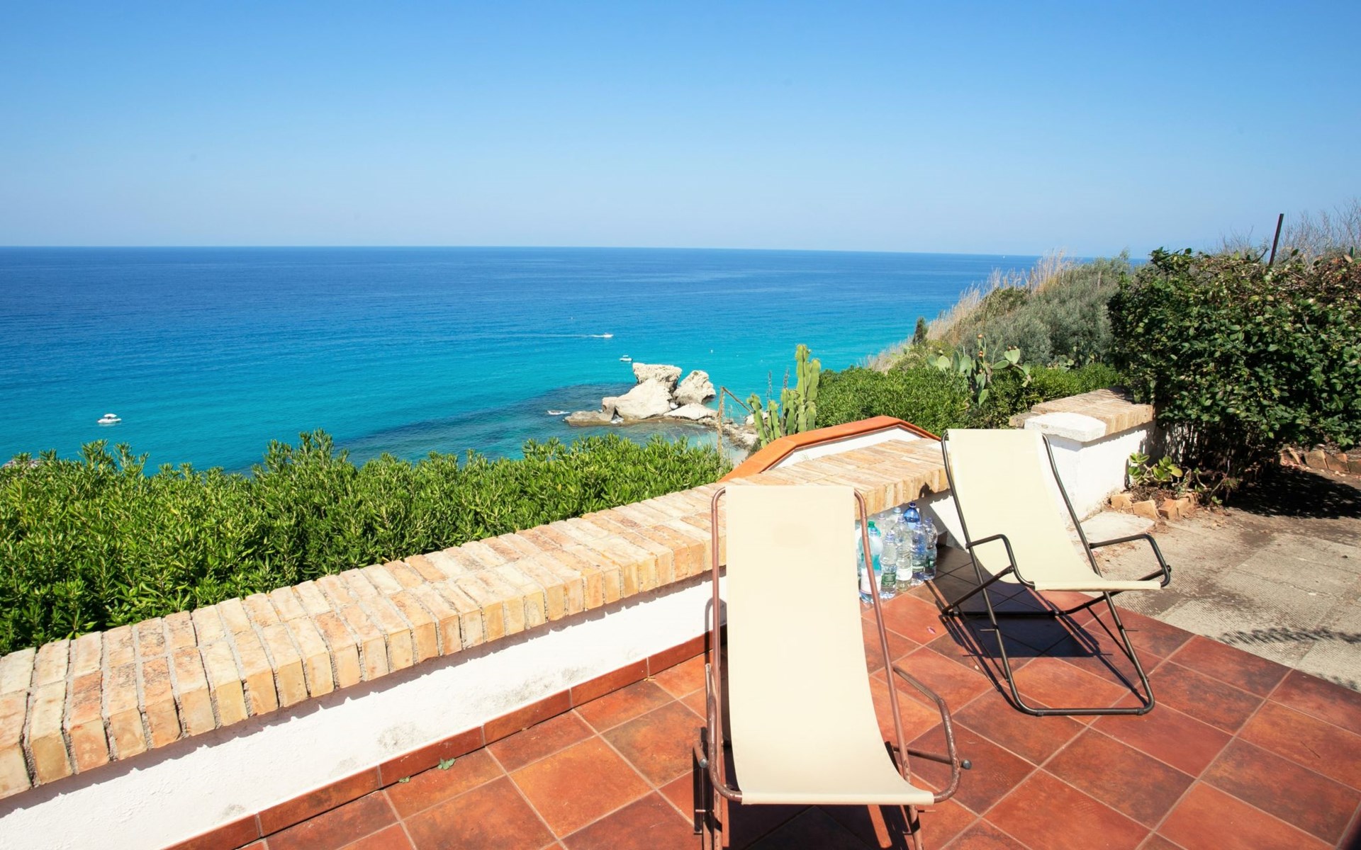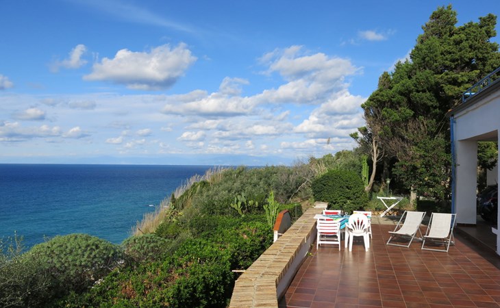 Zweifamilienhaus "Sulla Scogliera", 40 m.ü.M., umgeben von Bäumen und Feldern. Im Ortsteil Riaci, 2.5 km vom Zentrum von Tropea, 10 km vom Zentrum von Capo Vaticano, 30 km vom Zentrum von Vibo Valenzia, erhöhte Lage am Hang, 700 m vom Meer, direkter Zugang zum Strand. Zur Mitbenutzung: terrassierter Garten, 3 ha mit Bäumen, Naturgarten, Obstgarten. 100 m lange Zufahrt (Naturweg). Supermarkt 2.5 km, Restaurant, Bar 700 m, Bushaltestelle 1 km, Bahnstation "Ricadi" 1 km, Fähre "Tropea - Isole Eoliche" 2.5 km, Sandstrand 700 m. Bitte beachten: Der Besitzer wohnt auf dem gleichen Grundstück. Der Besitzer wohnt im selben Haus. Eisenbahnlinie 50 m vom Haus.