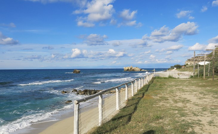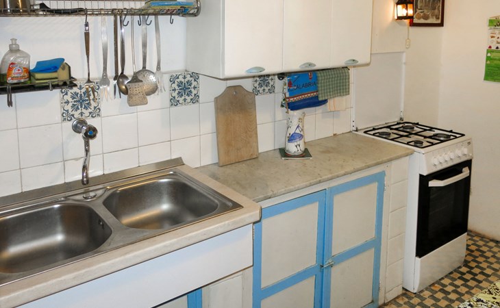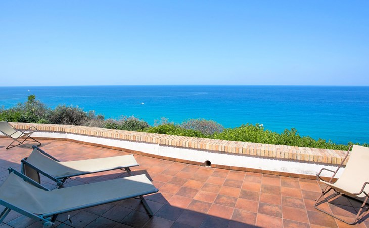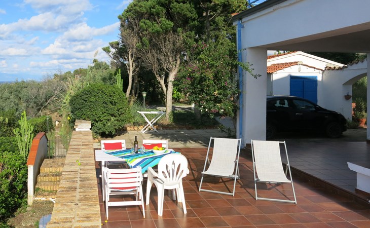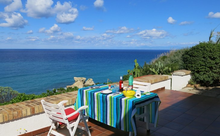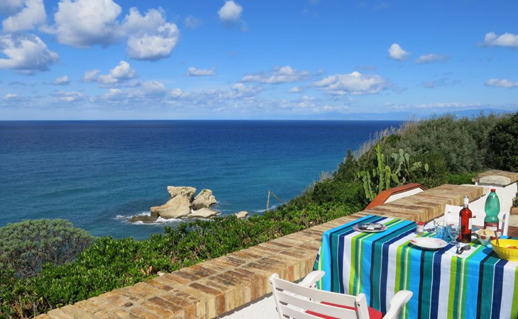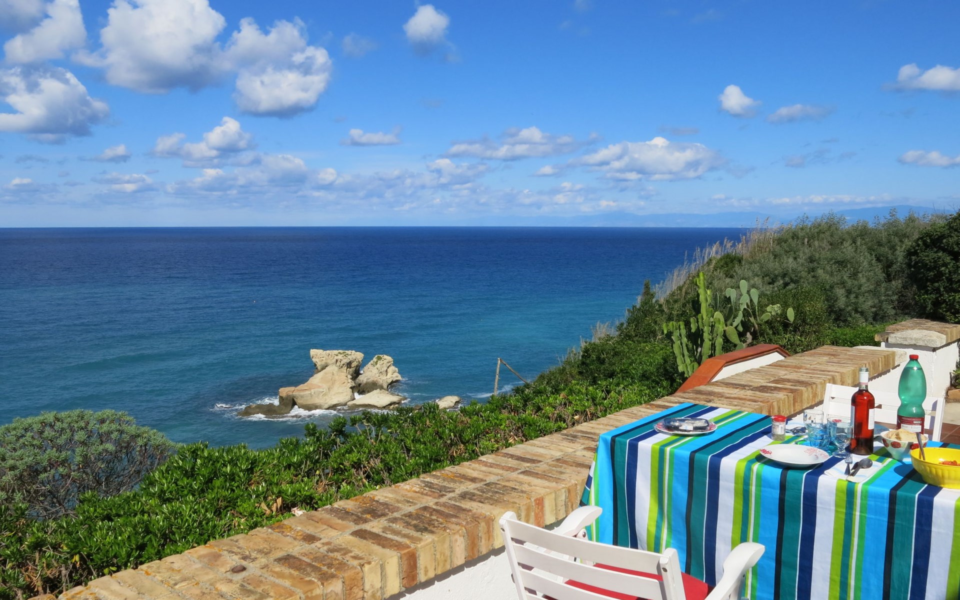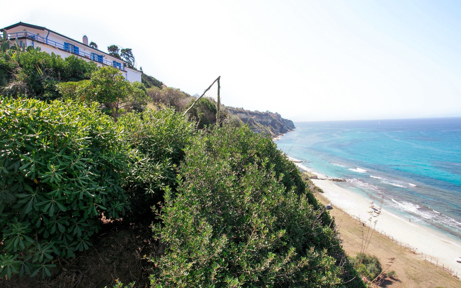 Zweifamilienhaus "Sulla Scogliera", 40 m.ü.M., umgeben von Bäumen und Feldern. Im Ortsteil Riaci, 2.5 km vom Zentrum von Tropea, 10 km vom Zentrum von Capo Vaticano, 30 km vom Zentrum von Vibo Valenzia, erhöhte Lage am Hang, 700 m vom Meer, direkter Zugang zum Strand. Zur Mitbenutzung: terrassierter Garten, 3 ha mit Bäumen, Naturgarten, Obstgarten. 100 m lange Zufahrt (Naturweg). Supermarkt 2.5 km, Restaurant, Bar 700 m, Bushaltestelle 1 km, Bahnstation "Ricadi" 1 km, Fähre "Tropea - Isole Eoliche" 2.5 km, Sandstrand 700 m. Bitte beachten: Der Besitzer wohnt auf dem gleichen Grundstück. Der Besitzer wohnt im selben Haus. Eisenbahnlinie 50 m vom Haus.